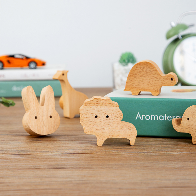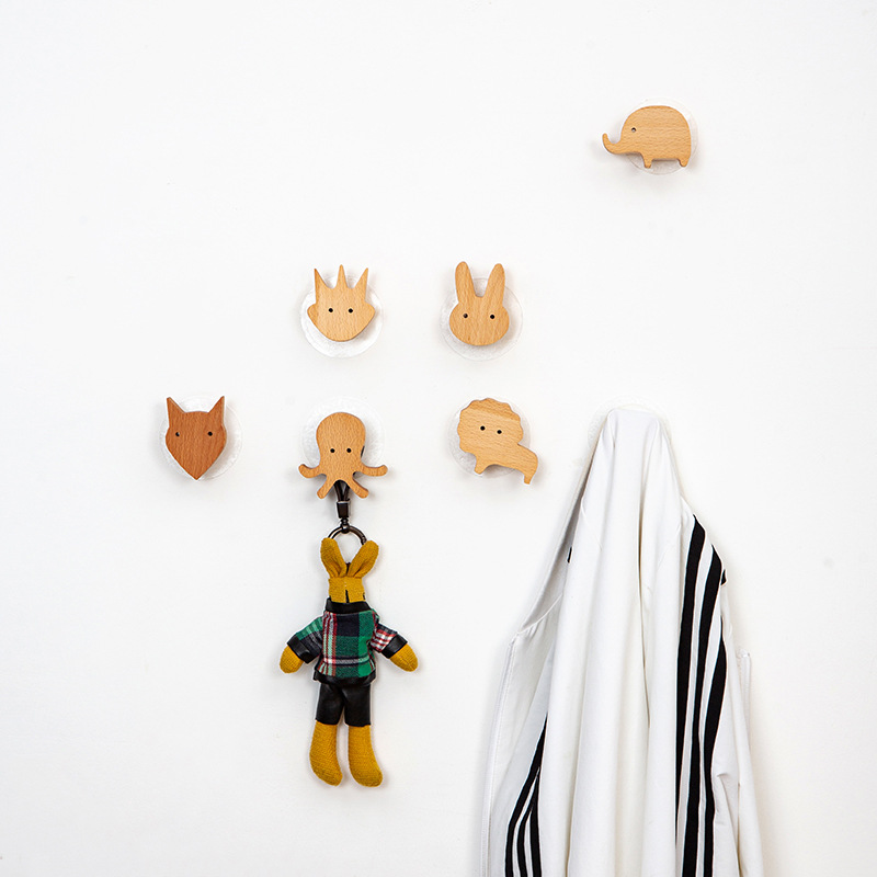 北欧木质挂钩家用卡通免打孔壁挂式衣帽钩门后墙上粘钩可爱挂衣钩