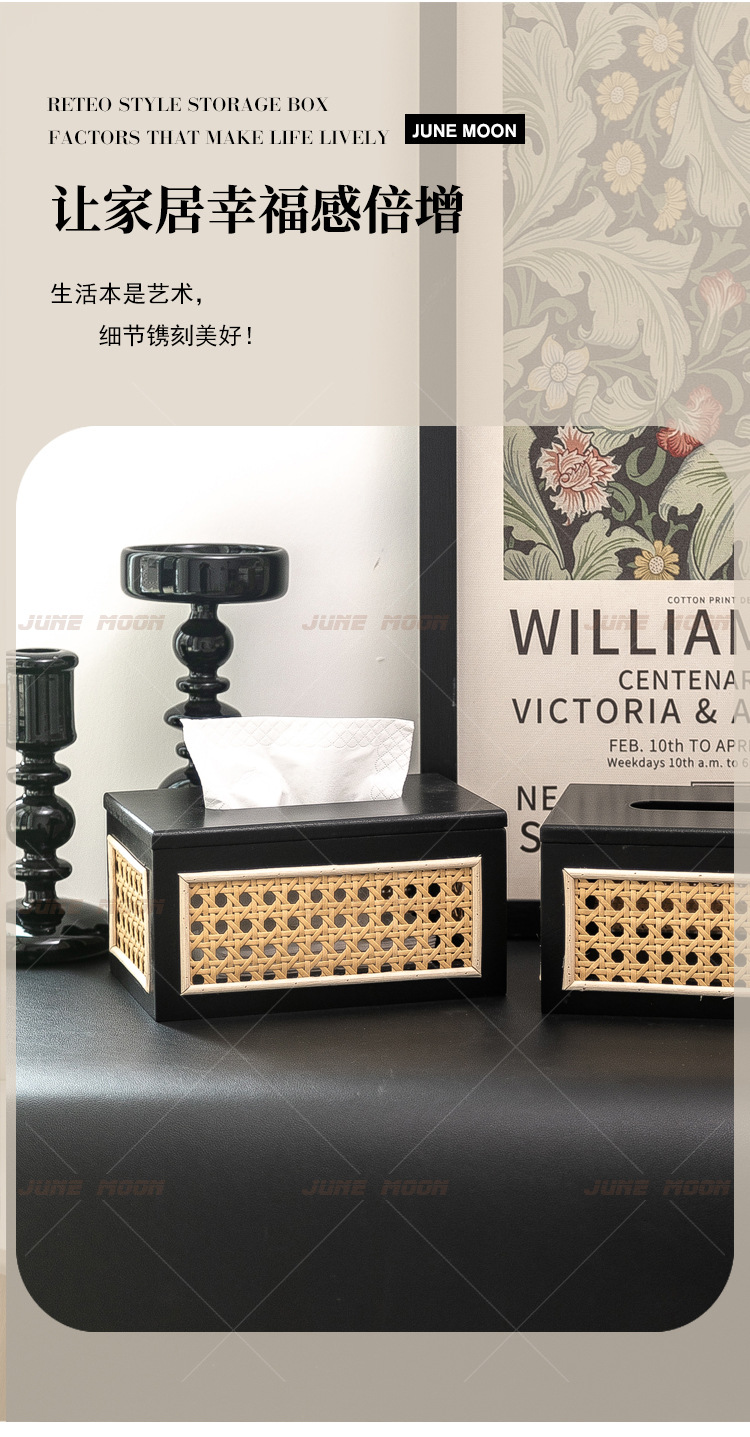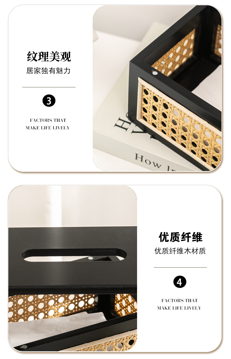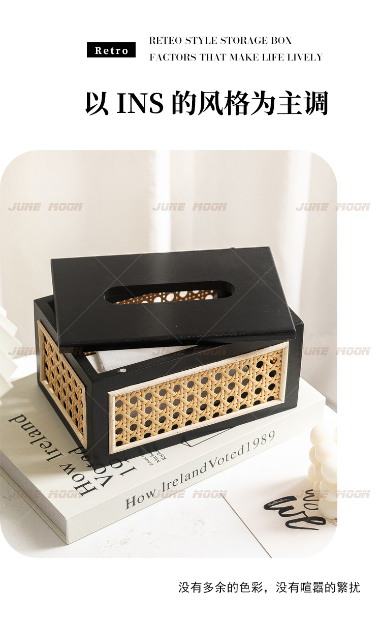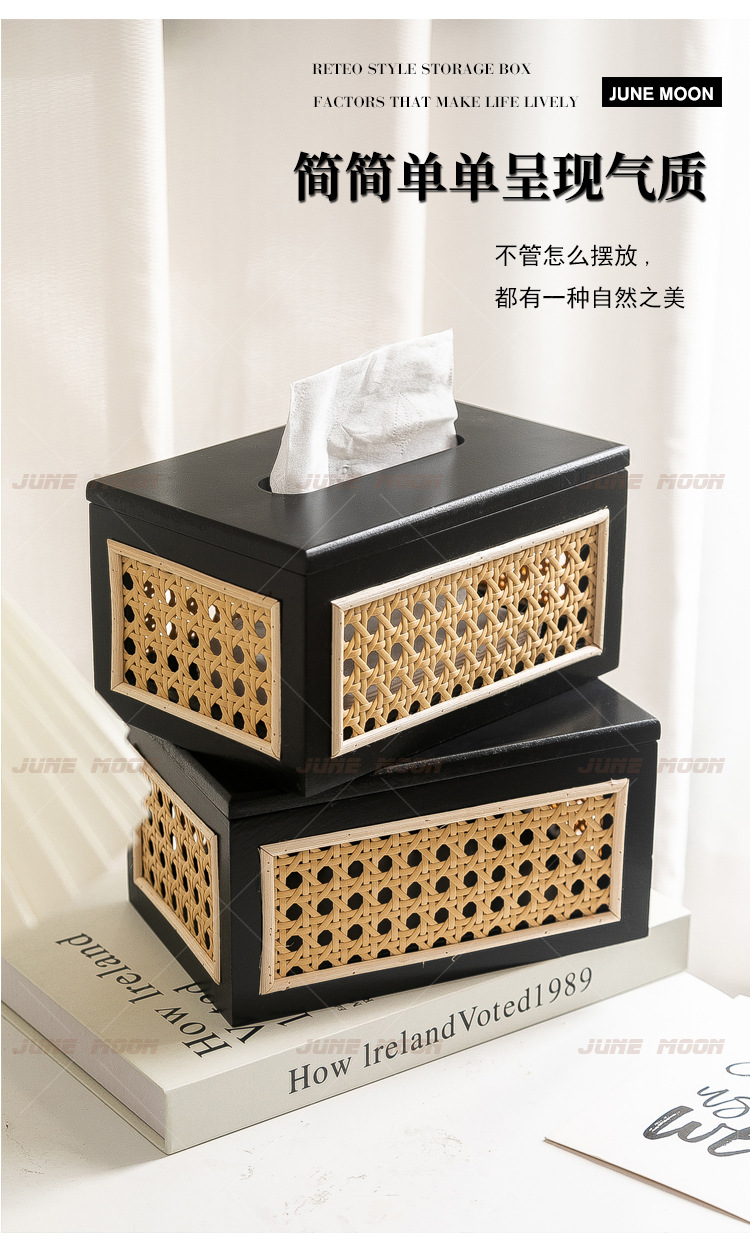 日式木质纸巾盒高颜值简约藤编织抽纸盒家居卧室客厅茶几餐巾纸盒