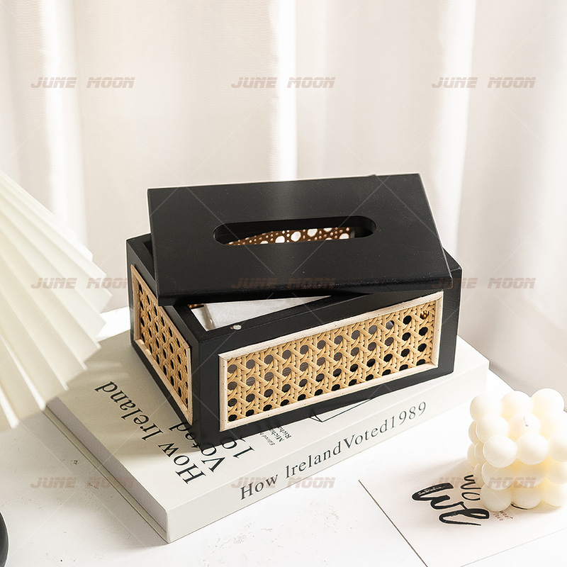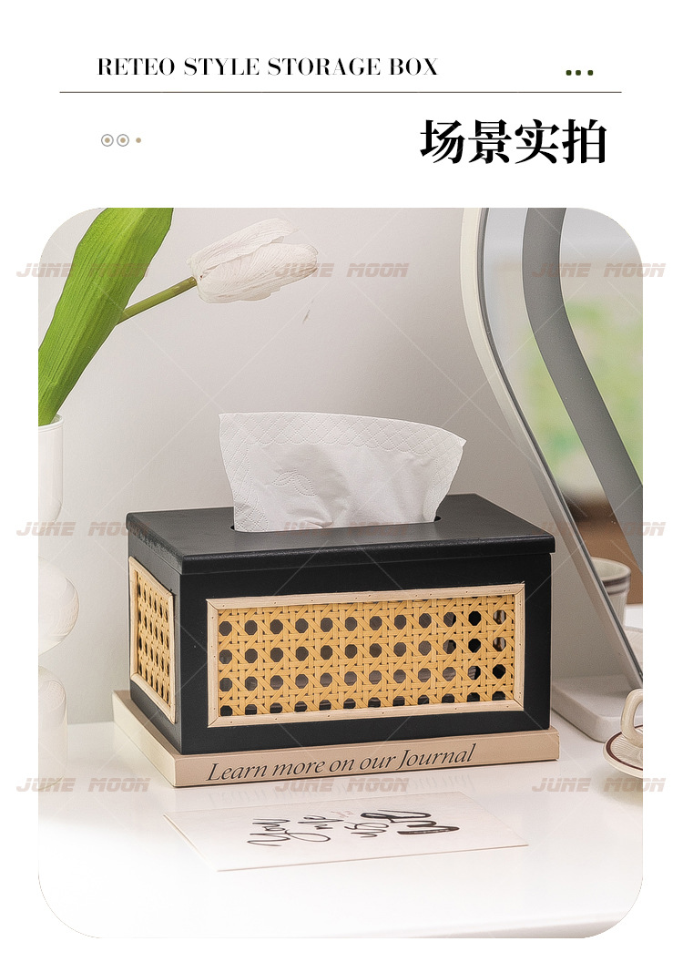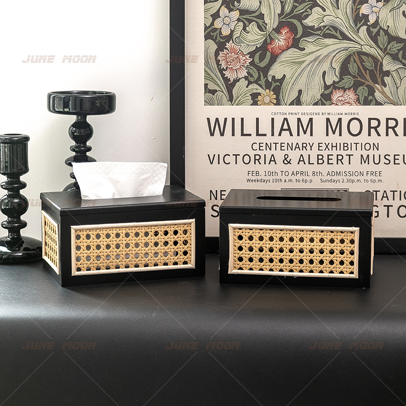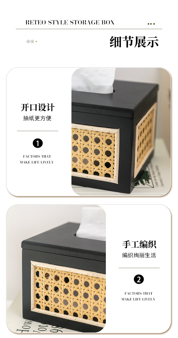 日式木质纸巾盒高颜值简约藤编织抽纸盒家居卧室客厅茶几餐巾纸盒