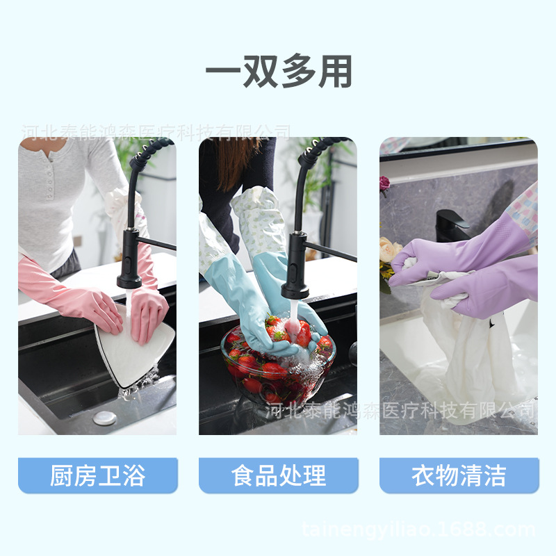 添赞Titanfine一体洗碗家务手套 家用厨房洗衣服防水耐用加厚手套