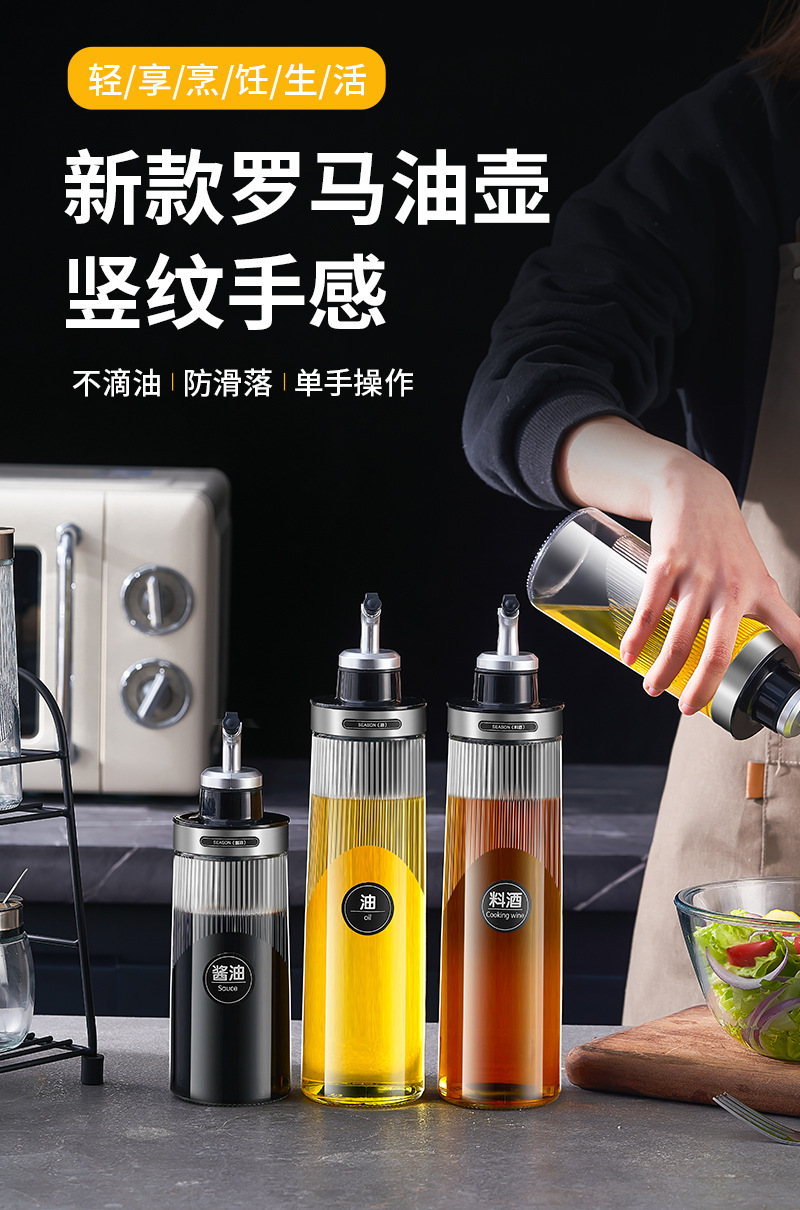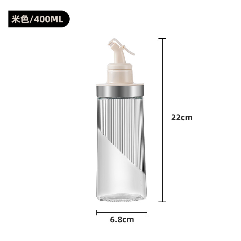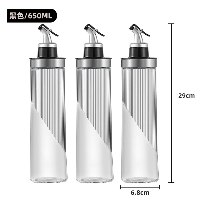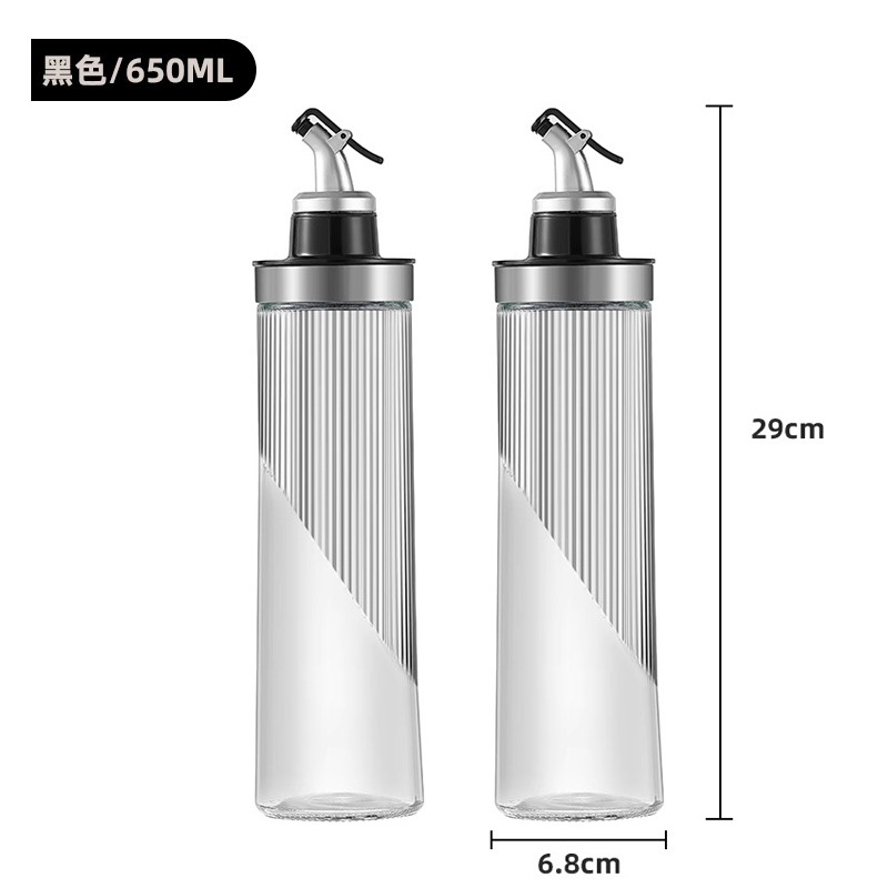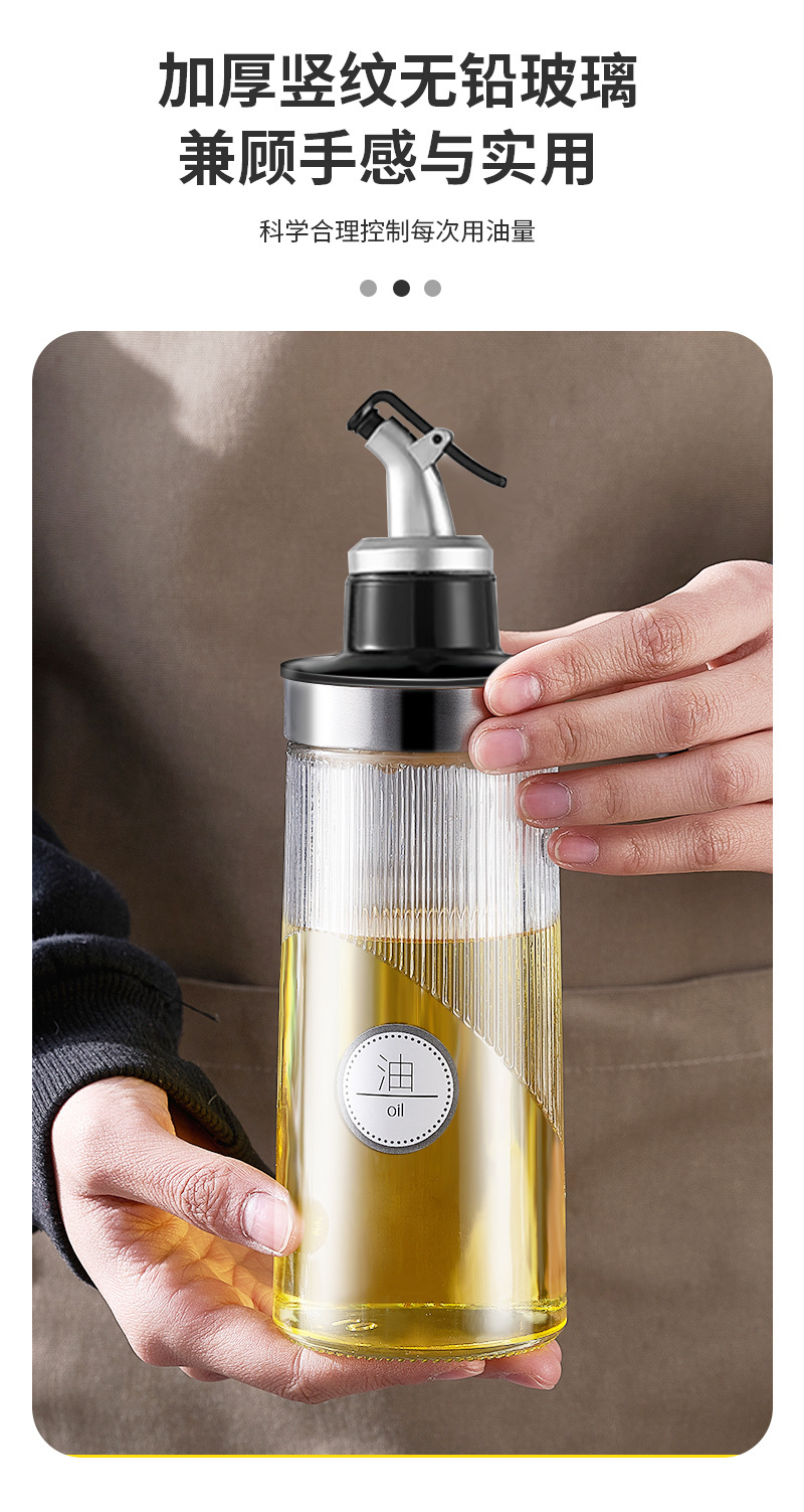 竖纹玻璃油壶不挂油瓶厨房不锈钢酱油醋调料瓶液体防漏密封塞油罐