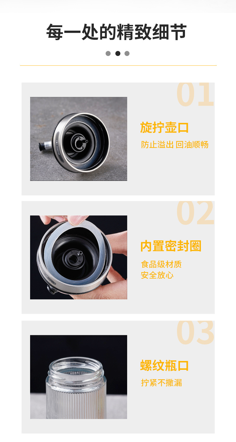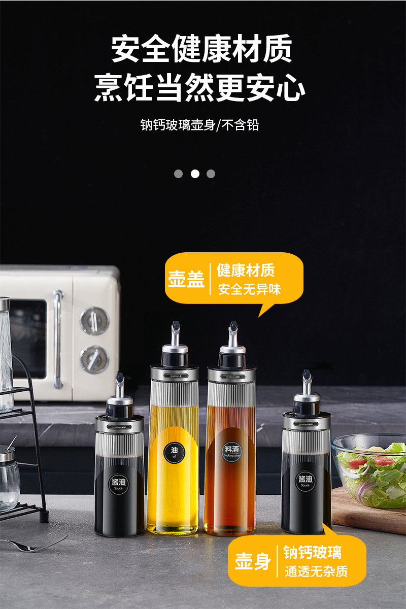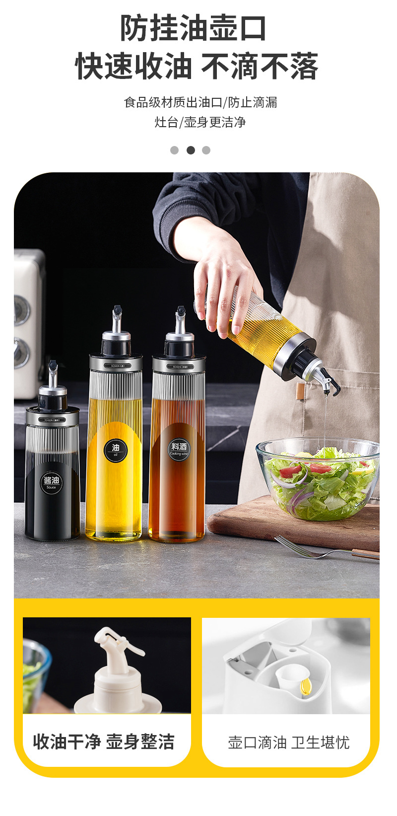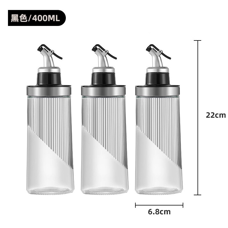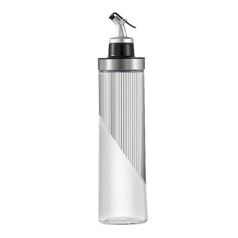 竖纹玻璃油壶不挂油瓶厨房不锈钢酱油醋调料瓶液体防漏密封塞油罐