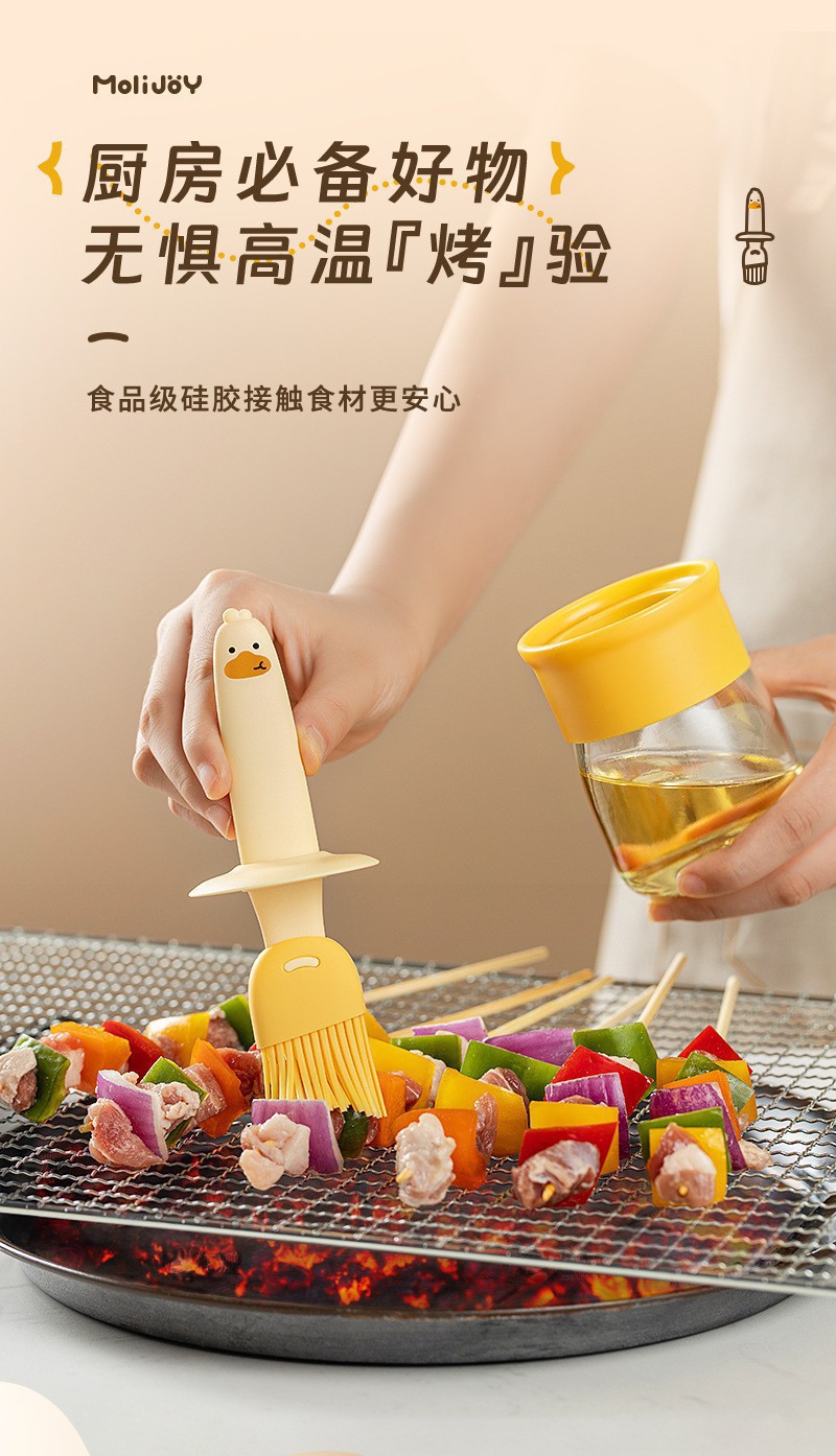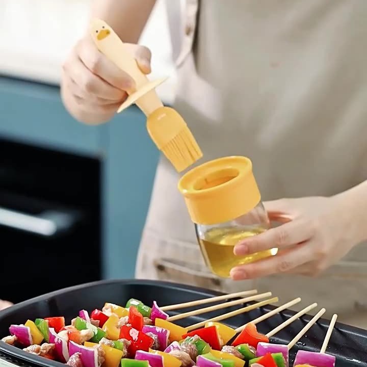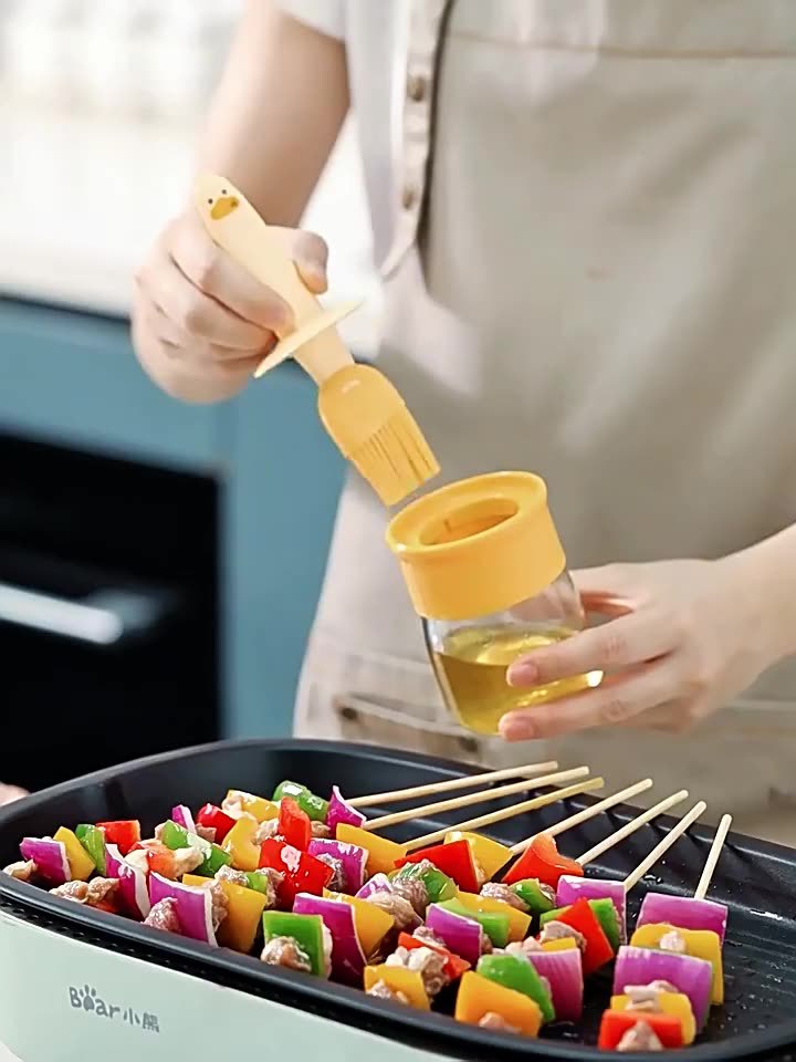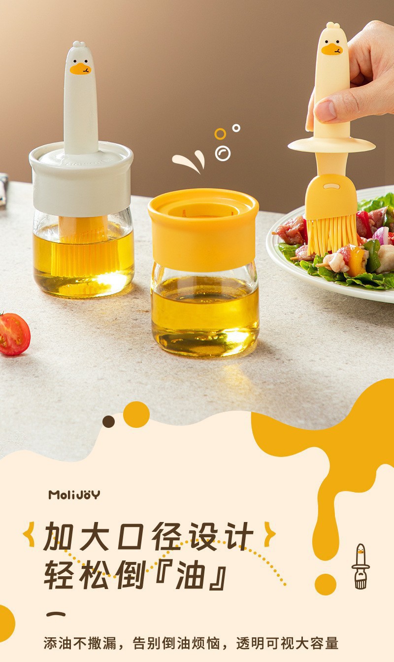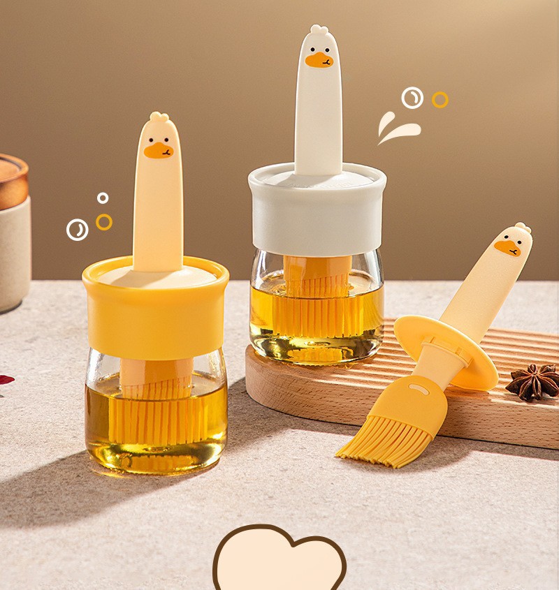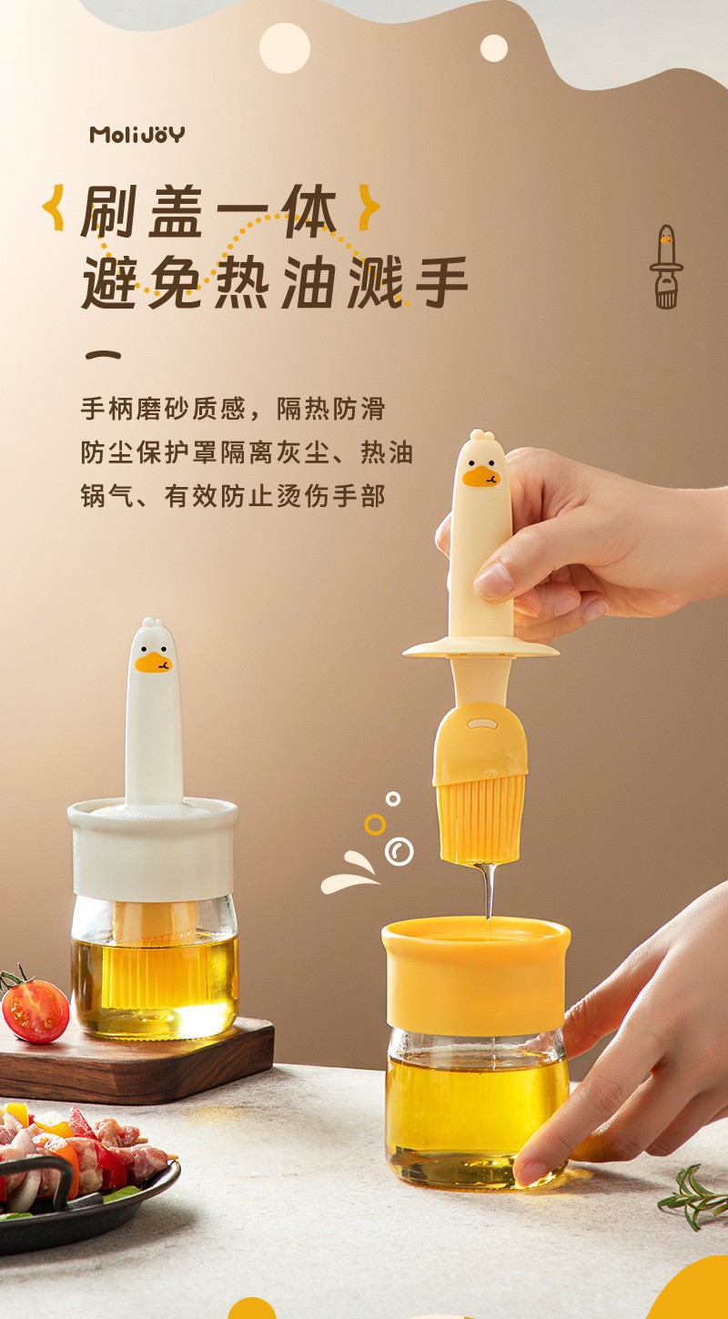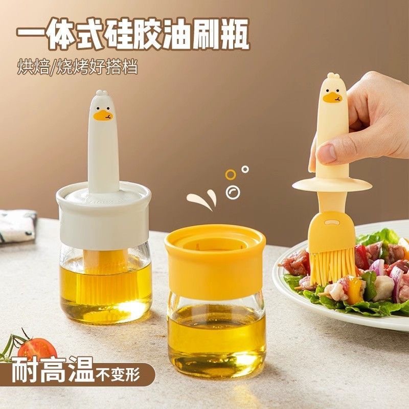 小黄鸭油刷油壶硅胶玻璃户外烧烤露营家用厨房油壶刷子一体式油壶