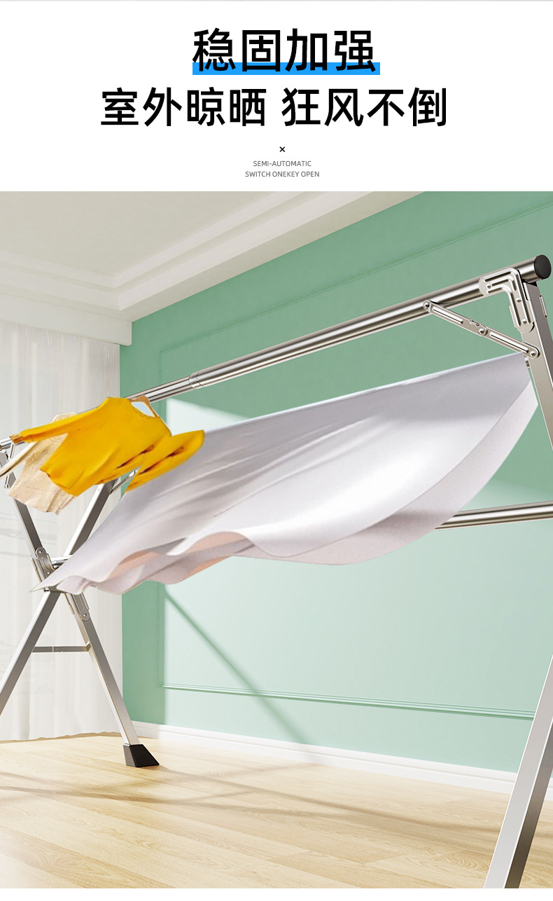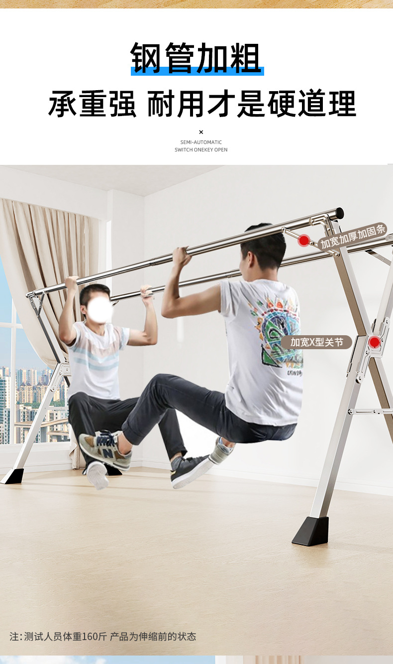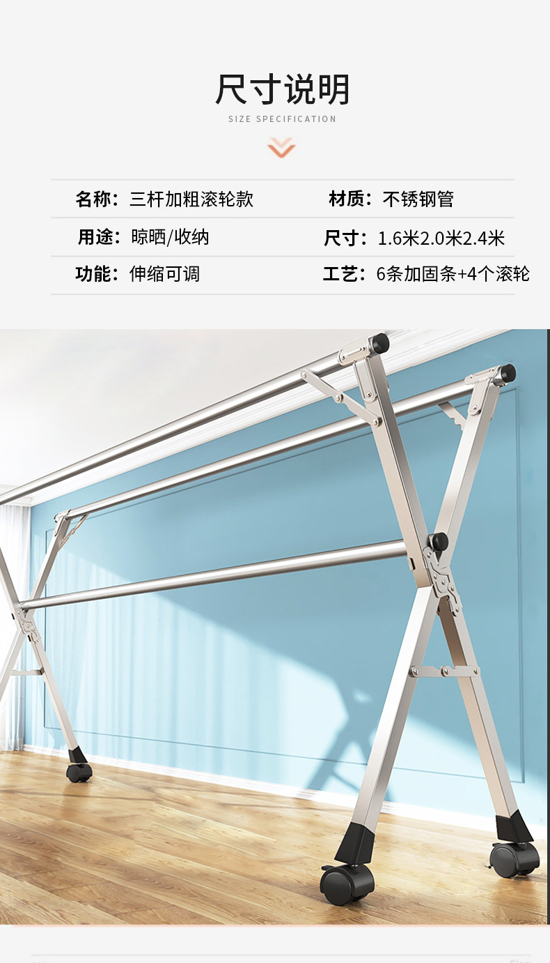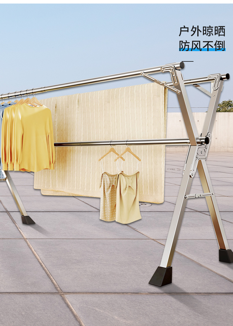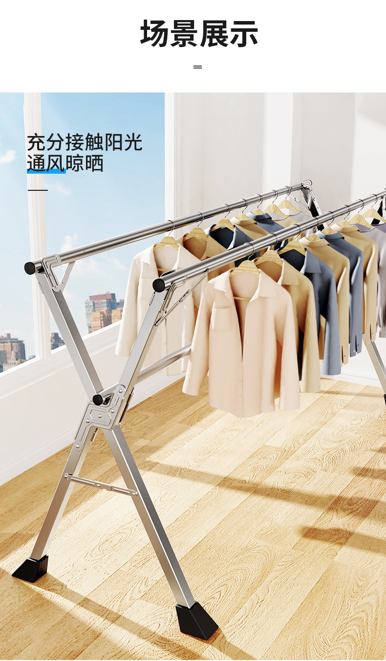 201不锈钢x型伸缩折叠衣架室内晾衣架加粗款落地家用阳台晾被衣架