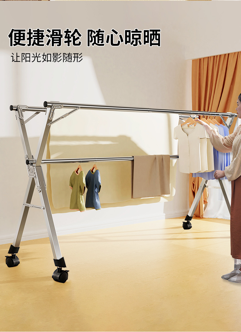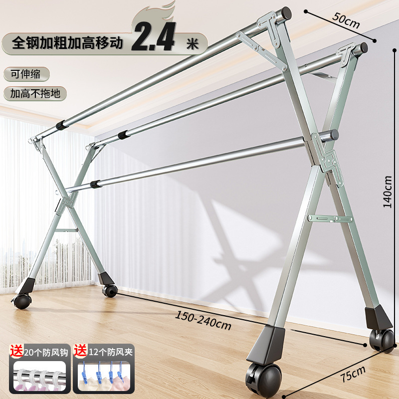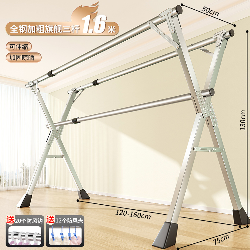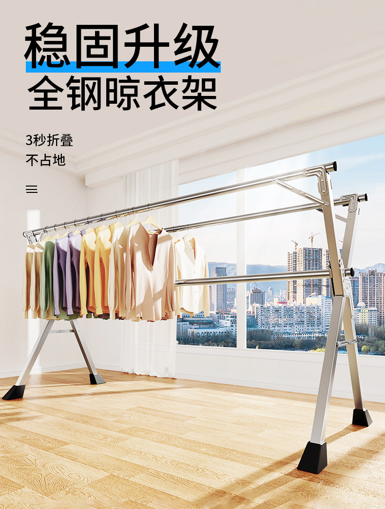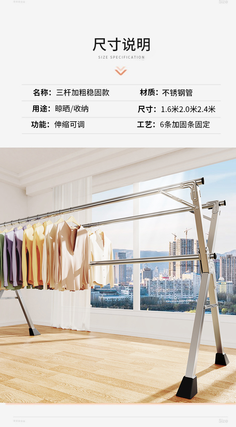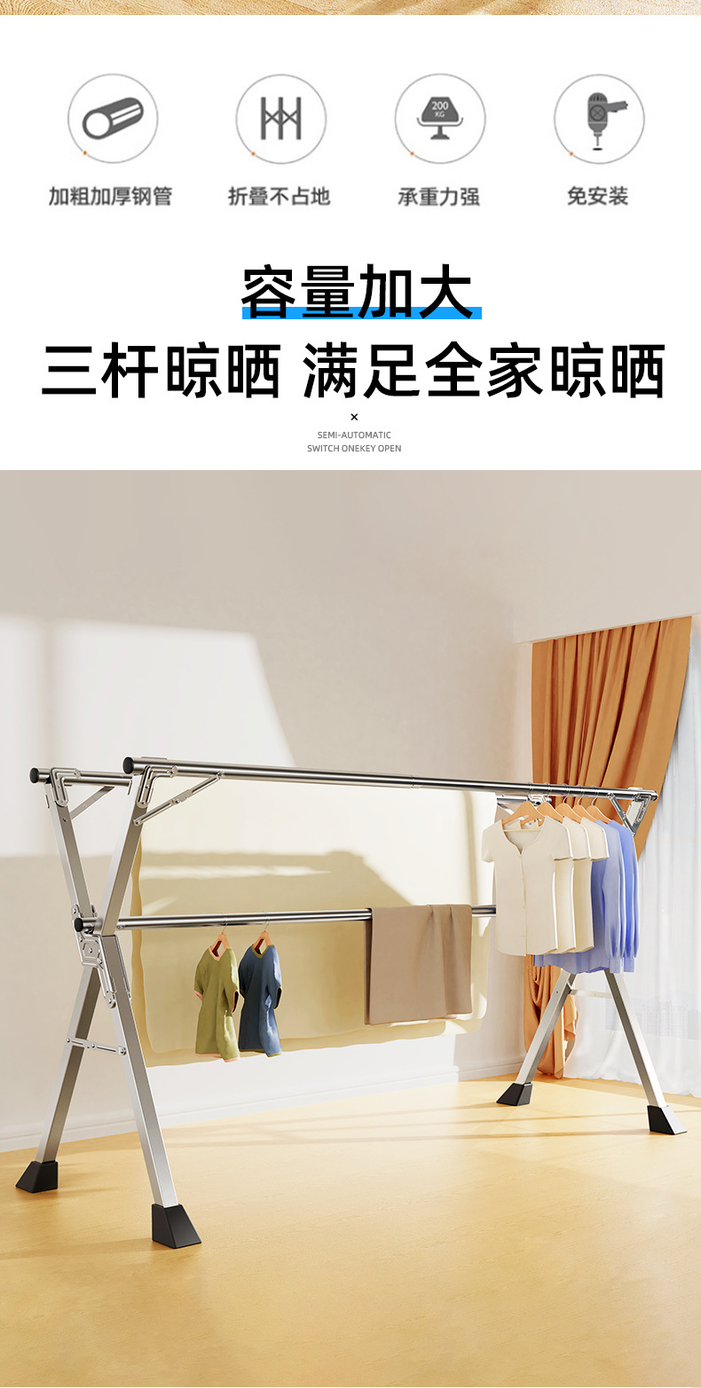 201不锈钢x型伸缩折叠衣架室内晾衣架加粗款落地家用阳台晾被衣架
