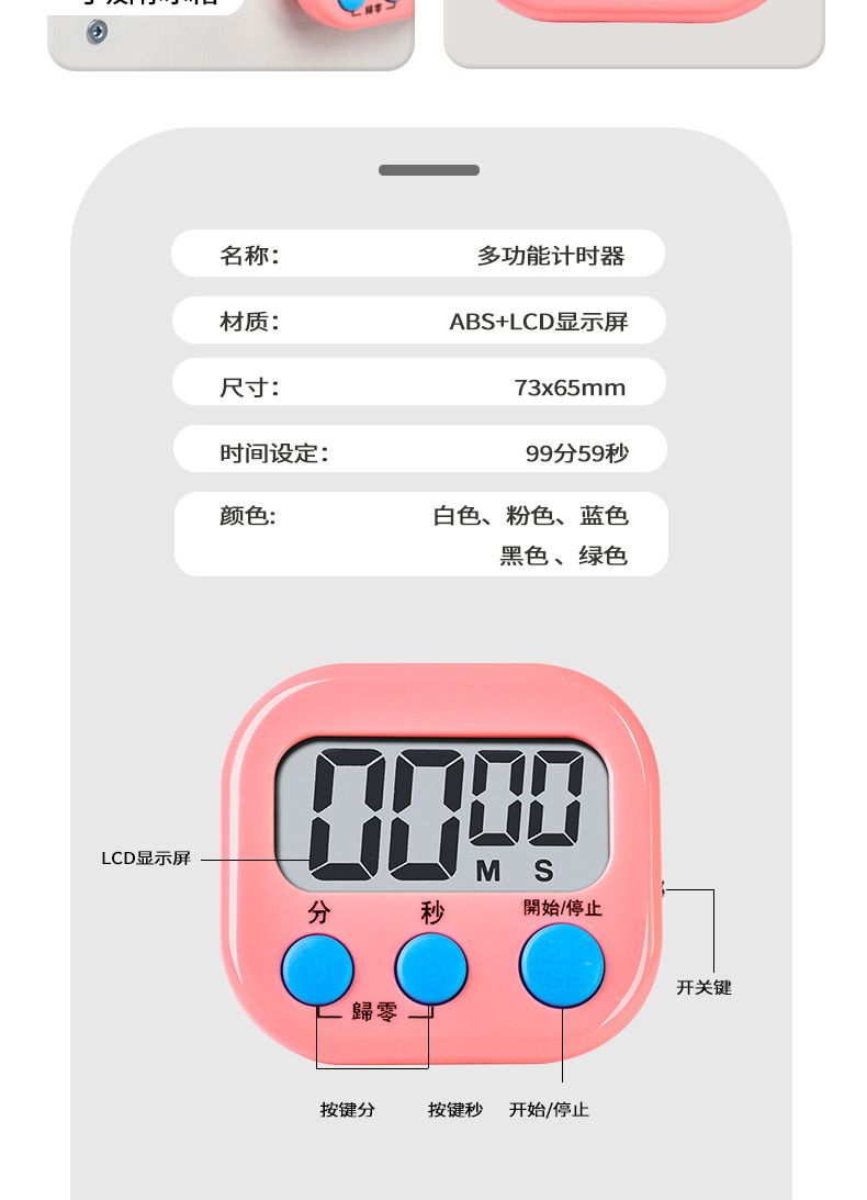 计时器厨房定时器正倒计时大号显示屏电子闹钟学生时间管理器批发