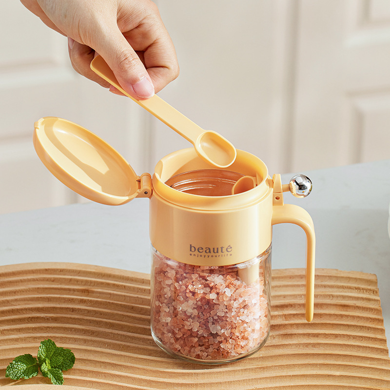 厨房调味盒密封防潮防尘收纳带勺子大容量调料罐盐味精佐料调料盒