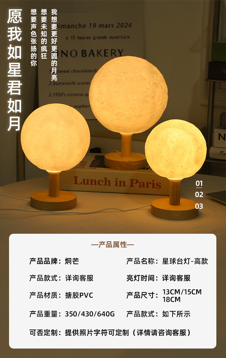 创意星球小夜灯3D卧室氛围灯儿童礼品带底座床头桌面星球灯摆件