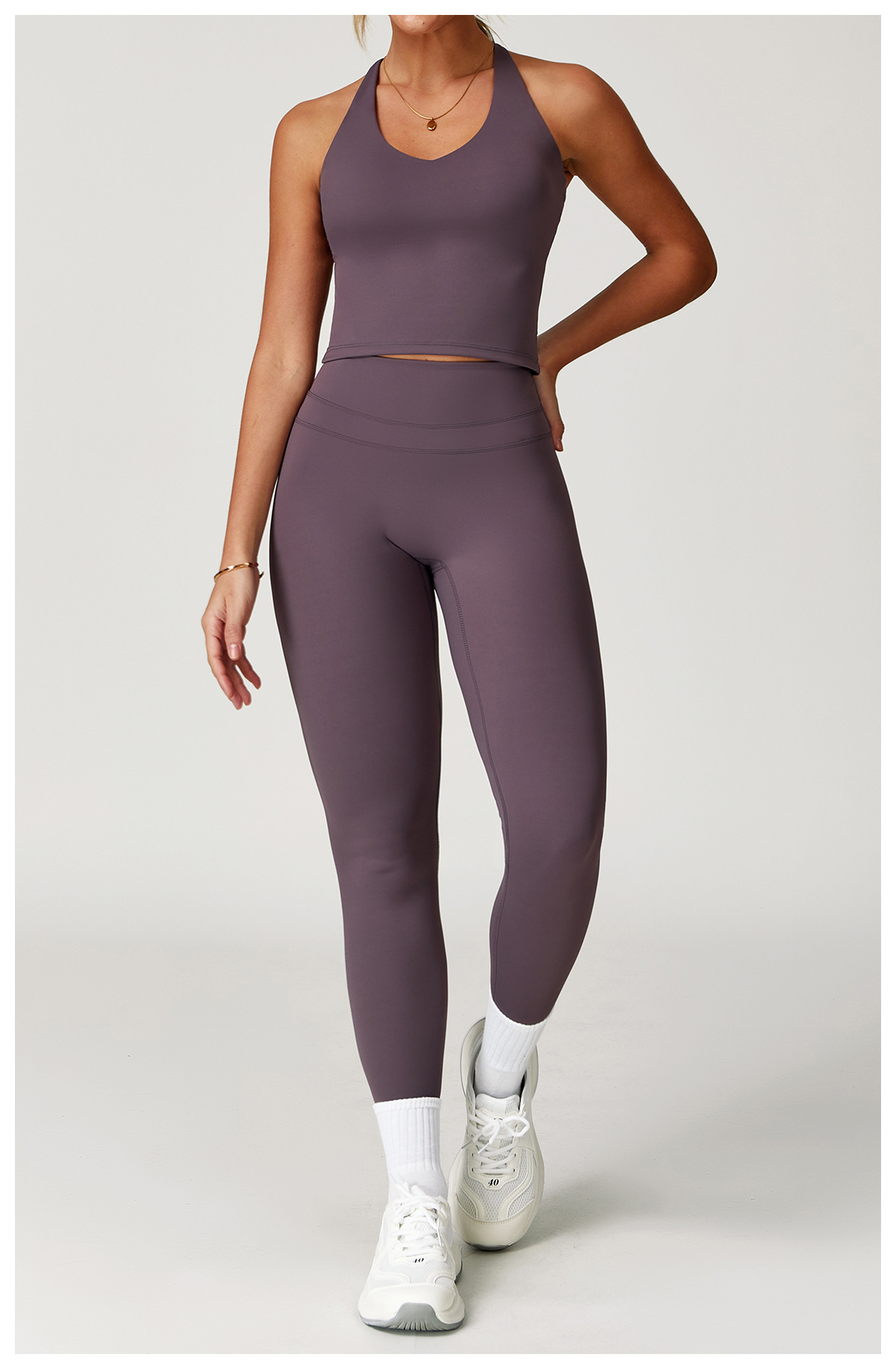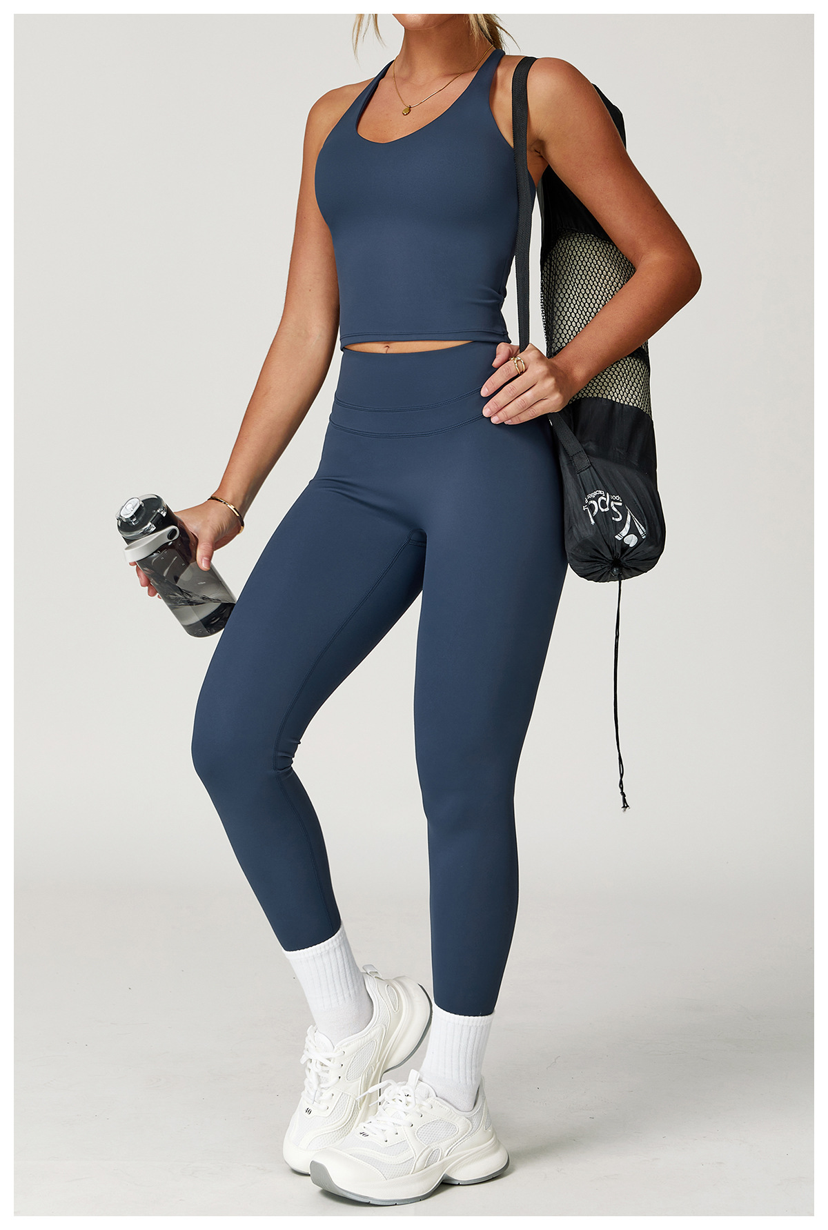 磨毛紧身美背瑜伽套装弹力高腰健身服女跑步健身运动套装