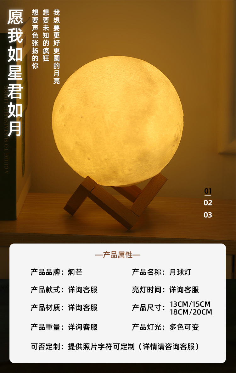 3D月球灯卧室床头LDE氛围灯usb充电送闺蜜同学礼品拍拍小夜灯