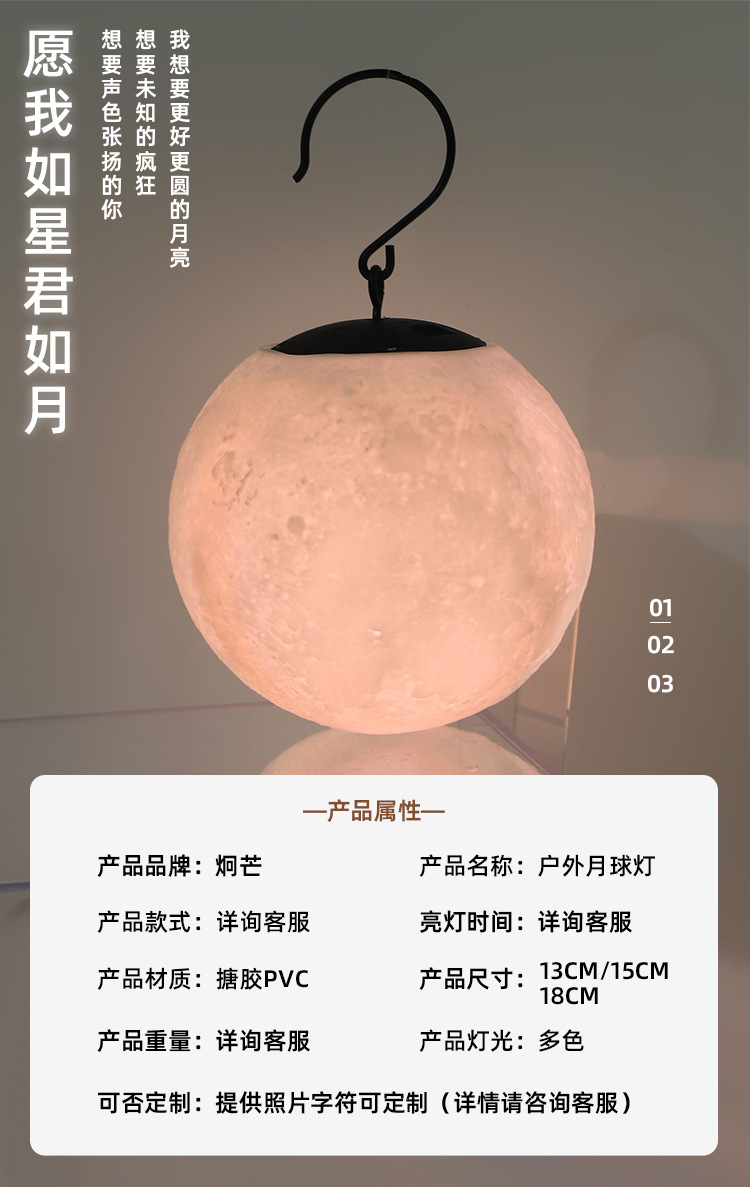 户外露营悬挂照明灯小台灯高颜值学生宿舍月亮灯氛围感装饰小夜灯
