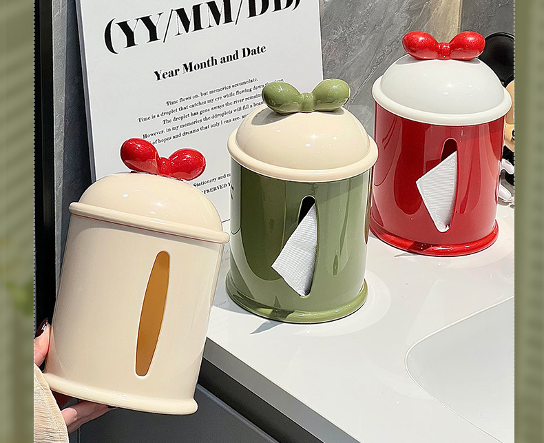 2025高级感蝴蝶结抽纸桶客厅宿舍高颜值纸巾收纳盒桌面创意卷纸桶