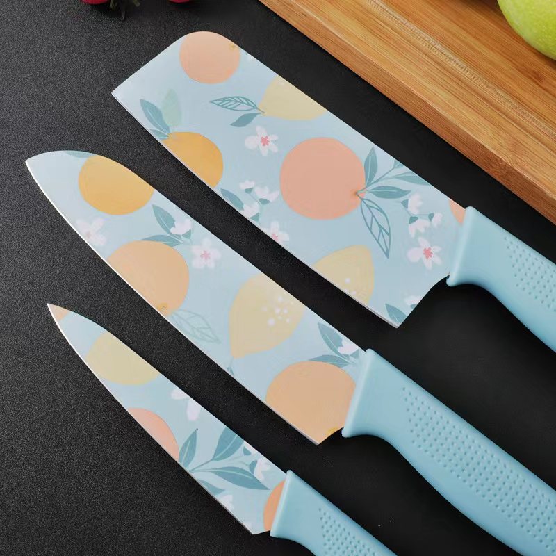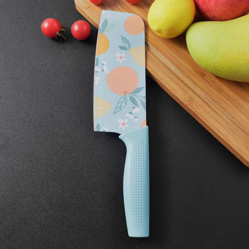 菜刀厨师刀 不锈钢女士刀具 厨师菜刀套刀 厨房家用菜刀 印花切菜