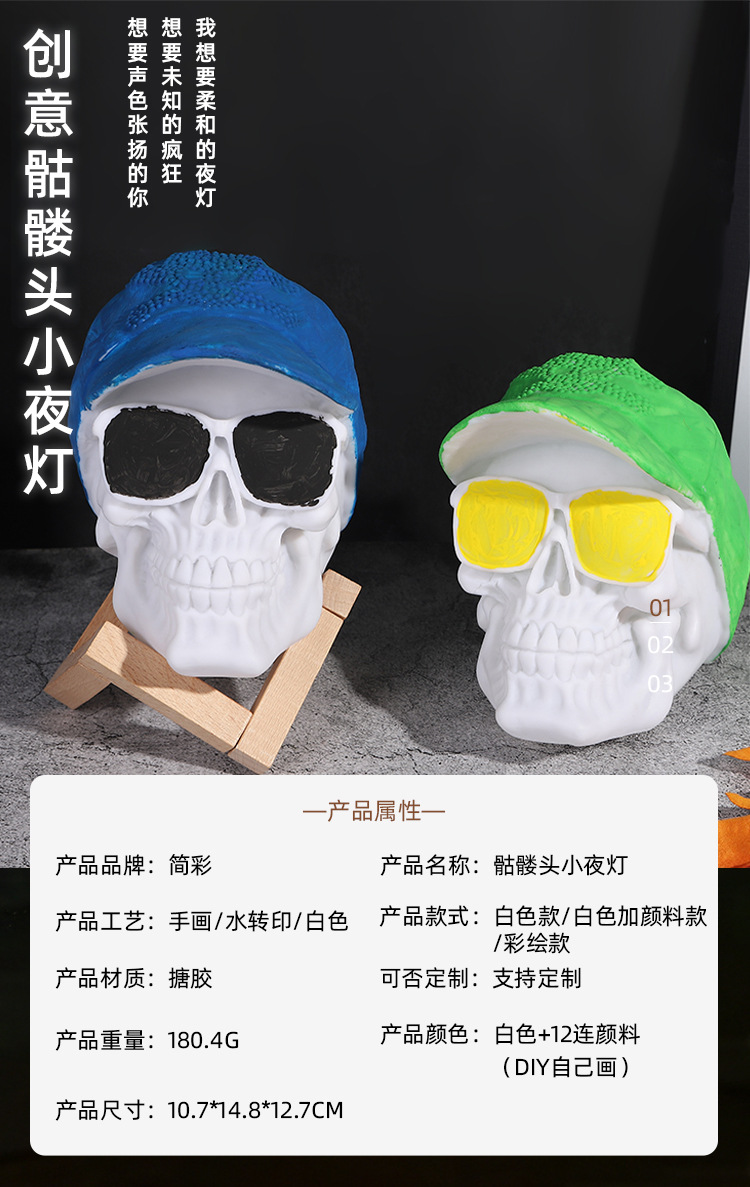 创意网红小夜灯小众设计骷髅头diy发光桌面摆件家居装饰氛围灯