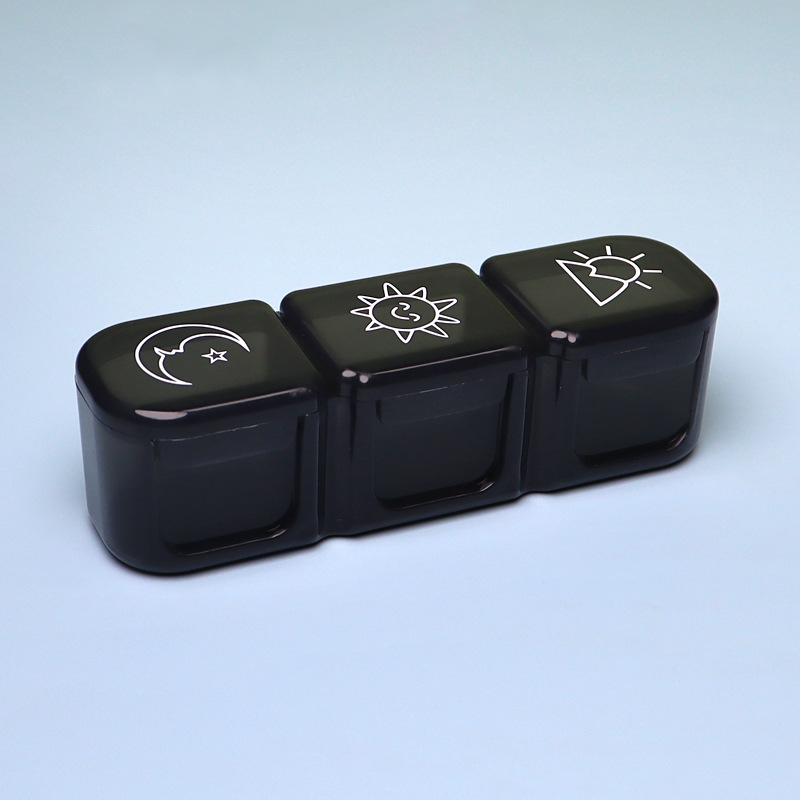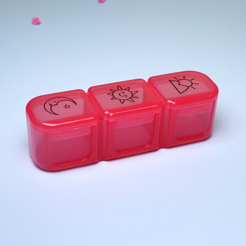 源头厂家新款早中晚三次三格药盒 多色可选便携式分装分隔药盒