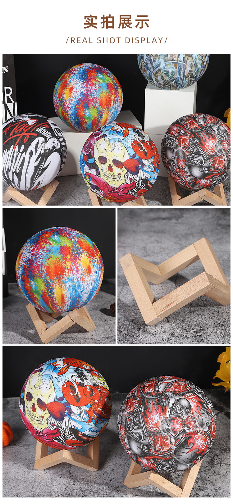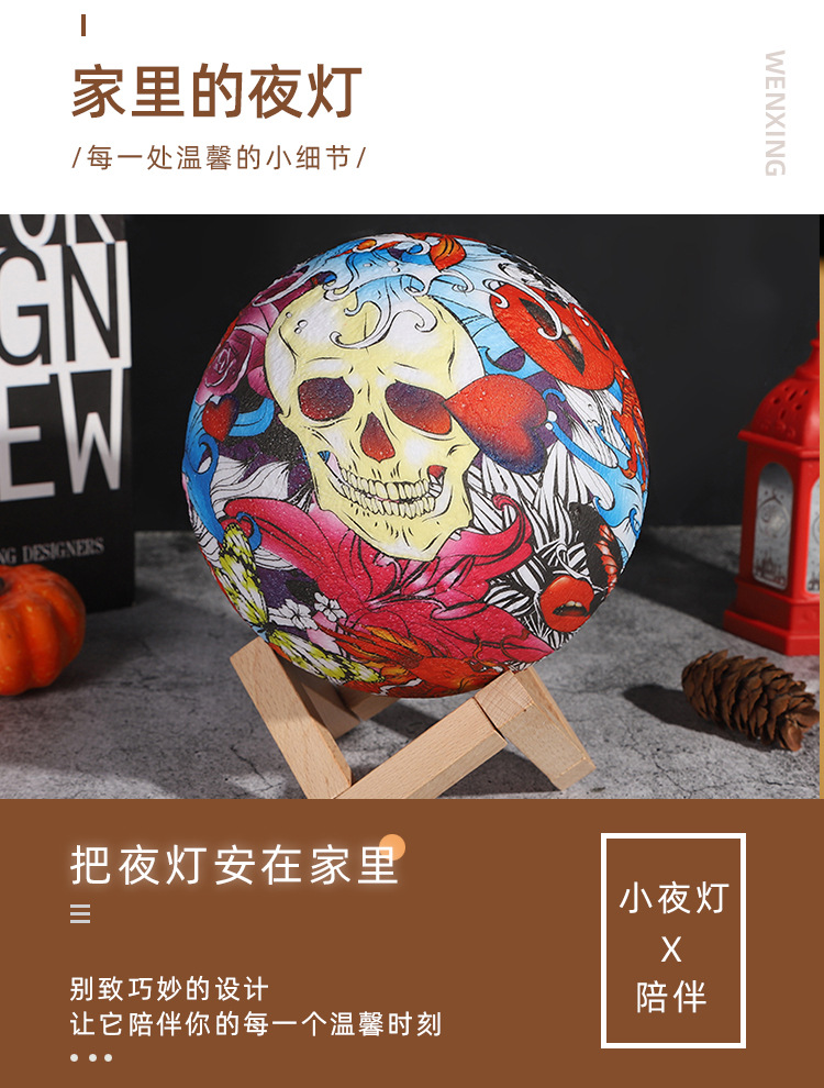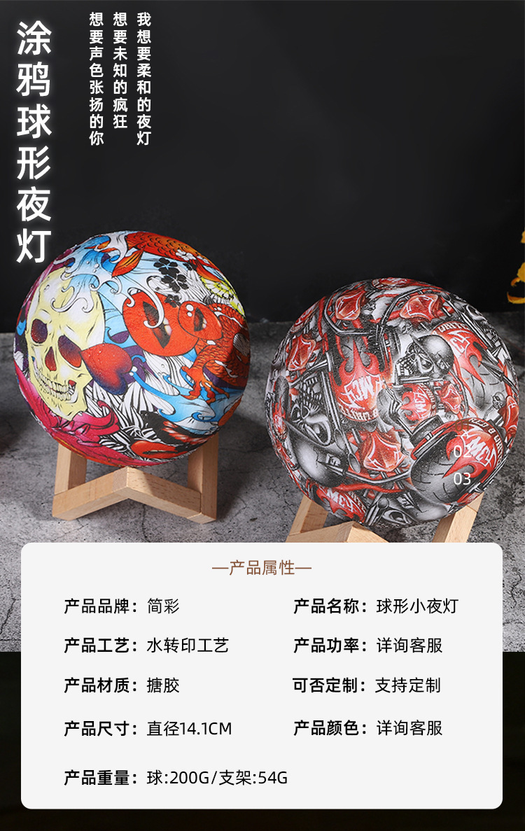 创意欧式水转印圆形小夜灯家居装饰氛围灯房间客厅艺术摆件小礼品