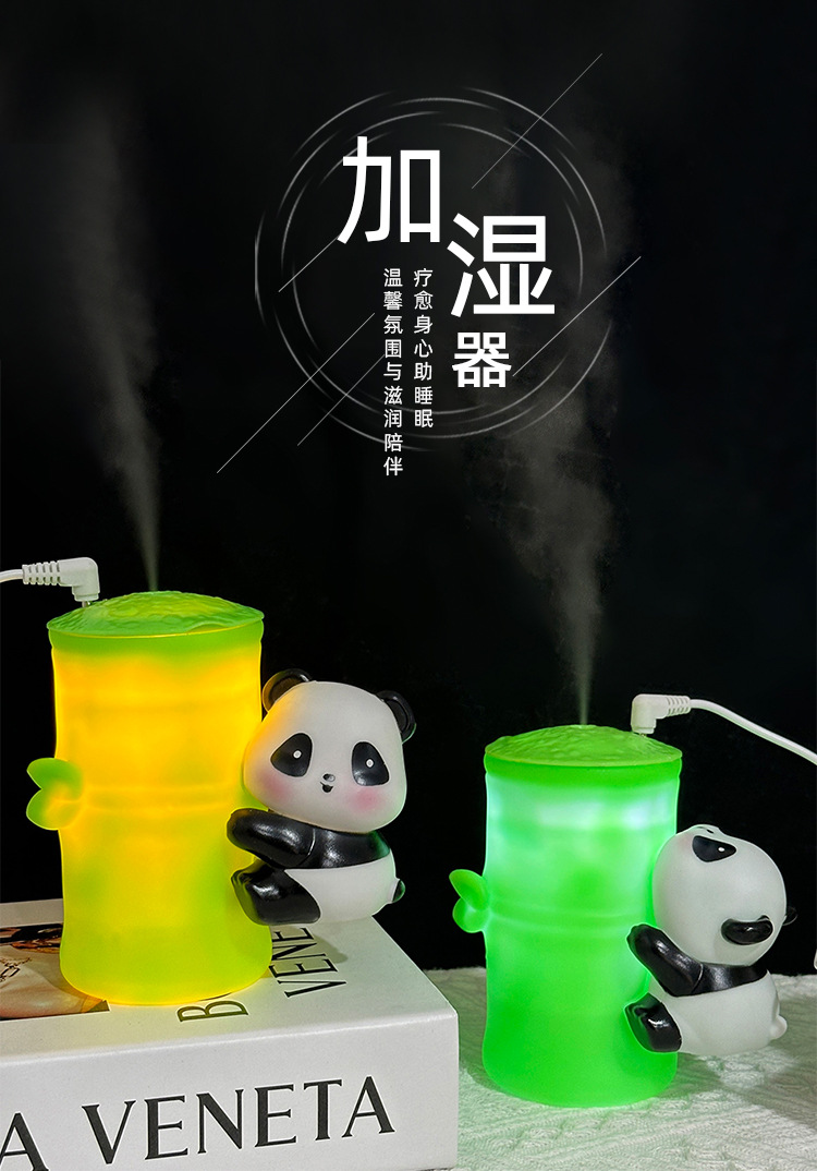 熊猫竹子加湿器 家用卡通柔光小夜灯 卧室床头 卧室桌面摆件现货