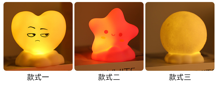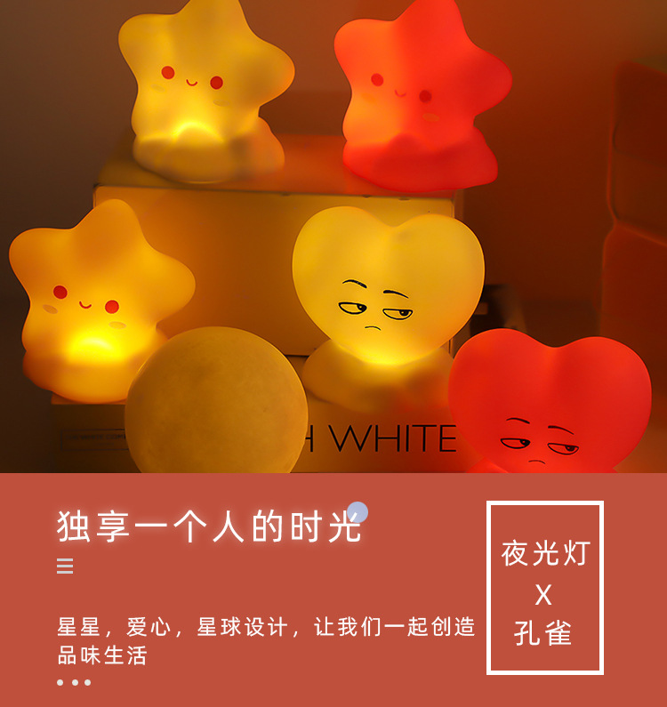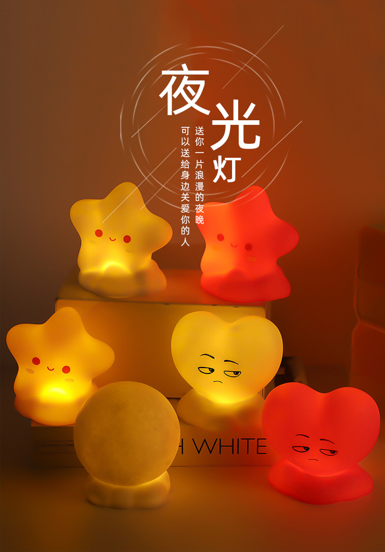 创意爱心五角星小夜灯个性搪胶小夜灯趣味diy家居装饰摆件夜光灯