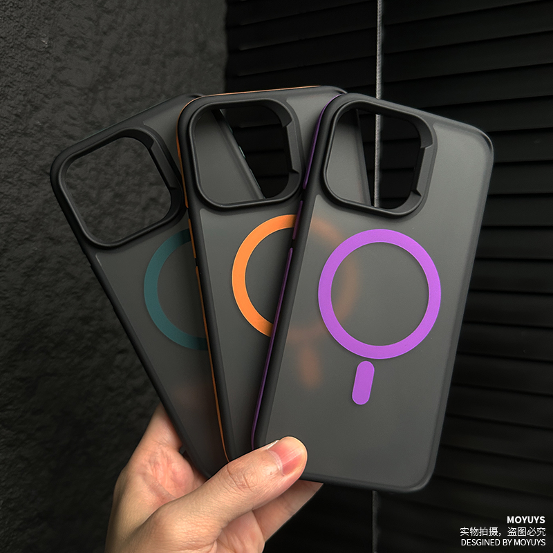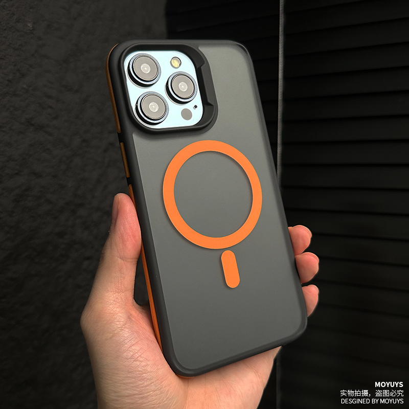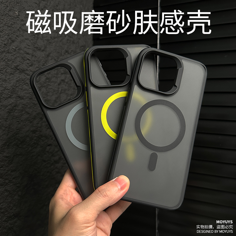 适用iPhone16手机壳磁吸气囊苹果15promax防滑全包肤感磨砂保护套