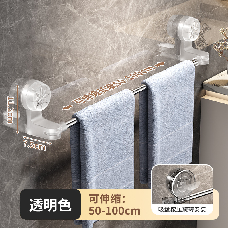 厂家供应吸盘毛巾架免打孔卫生间壁挂毛巾杆浴室伸缩置物架收纳架