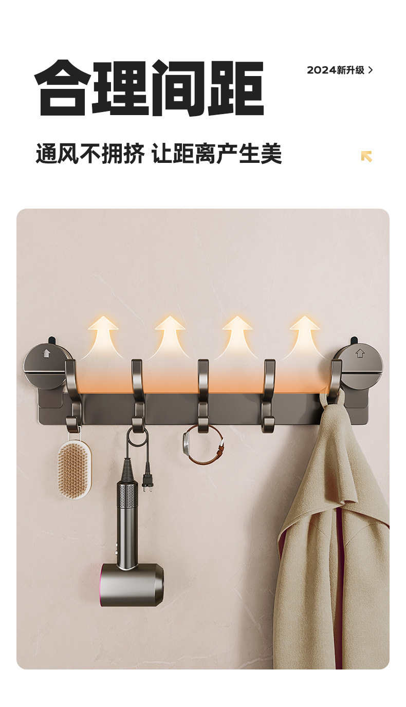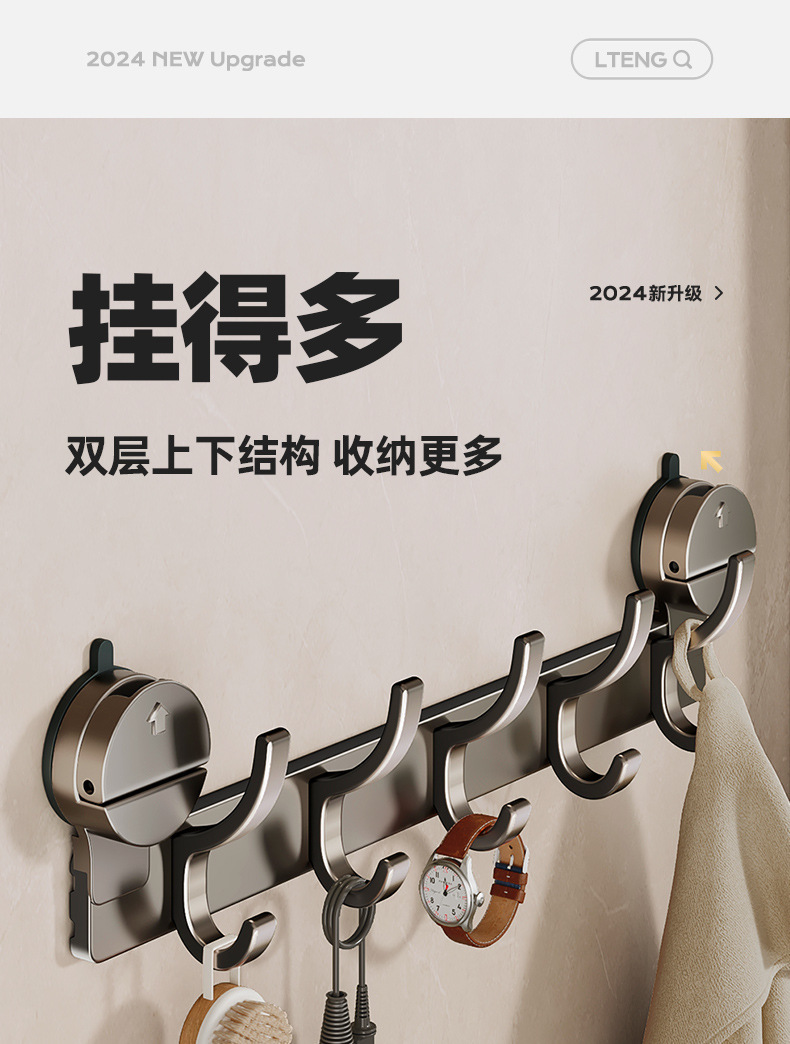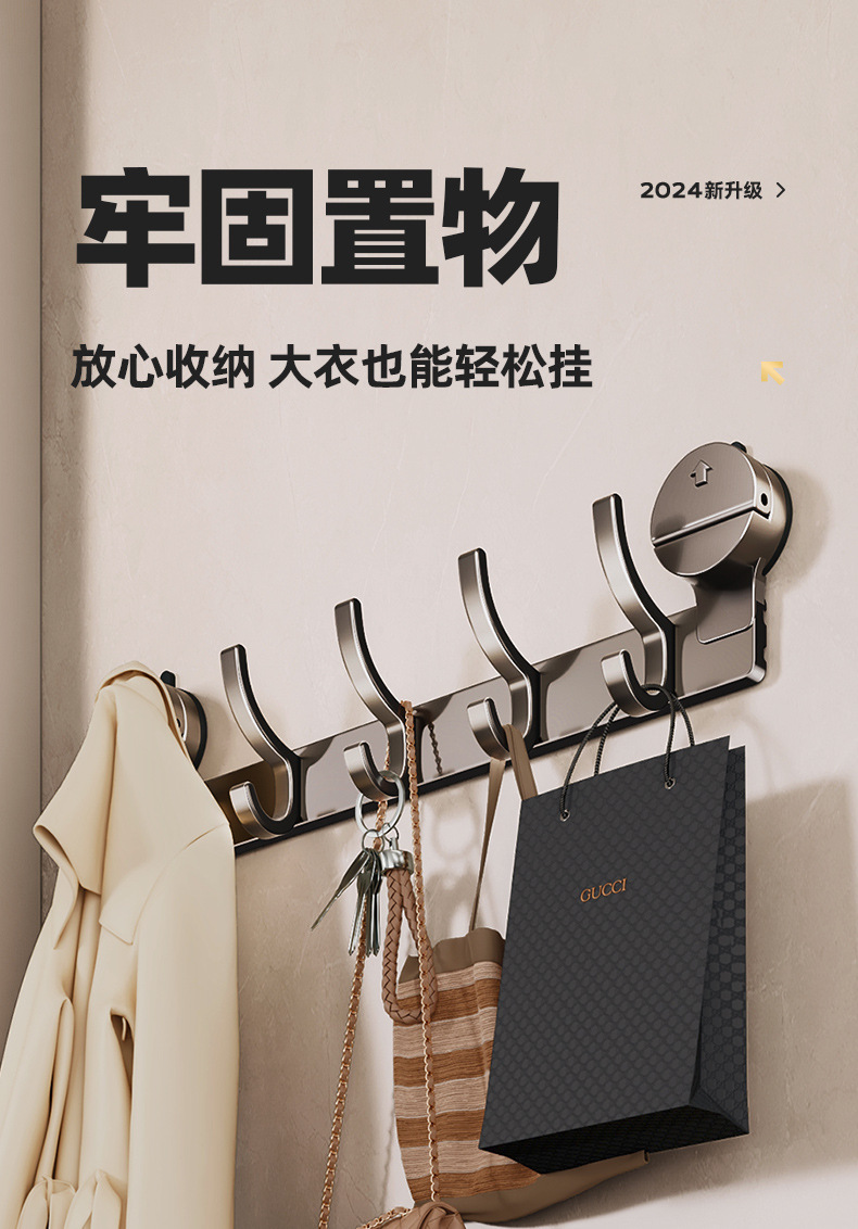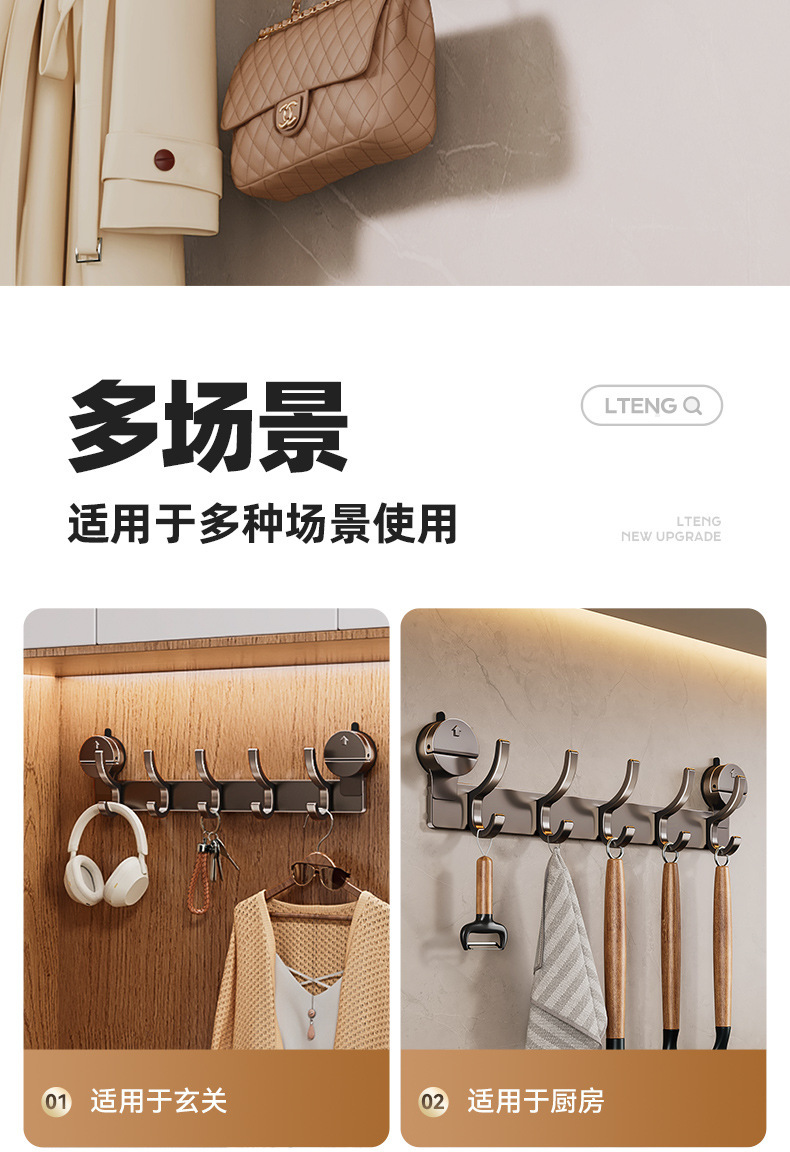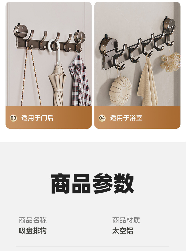 吸盘排钩免打孔挂钩强力粘胶卫生间浴室无痕壁挂粘钩门后挂衣钩子