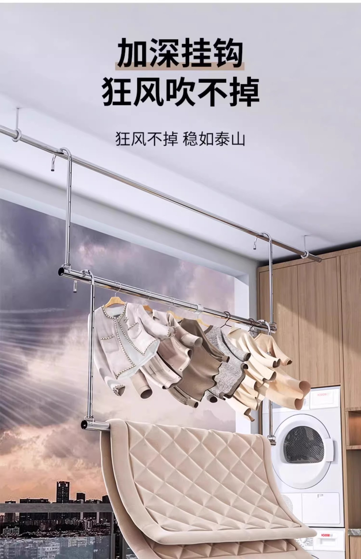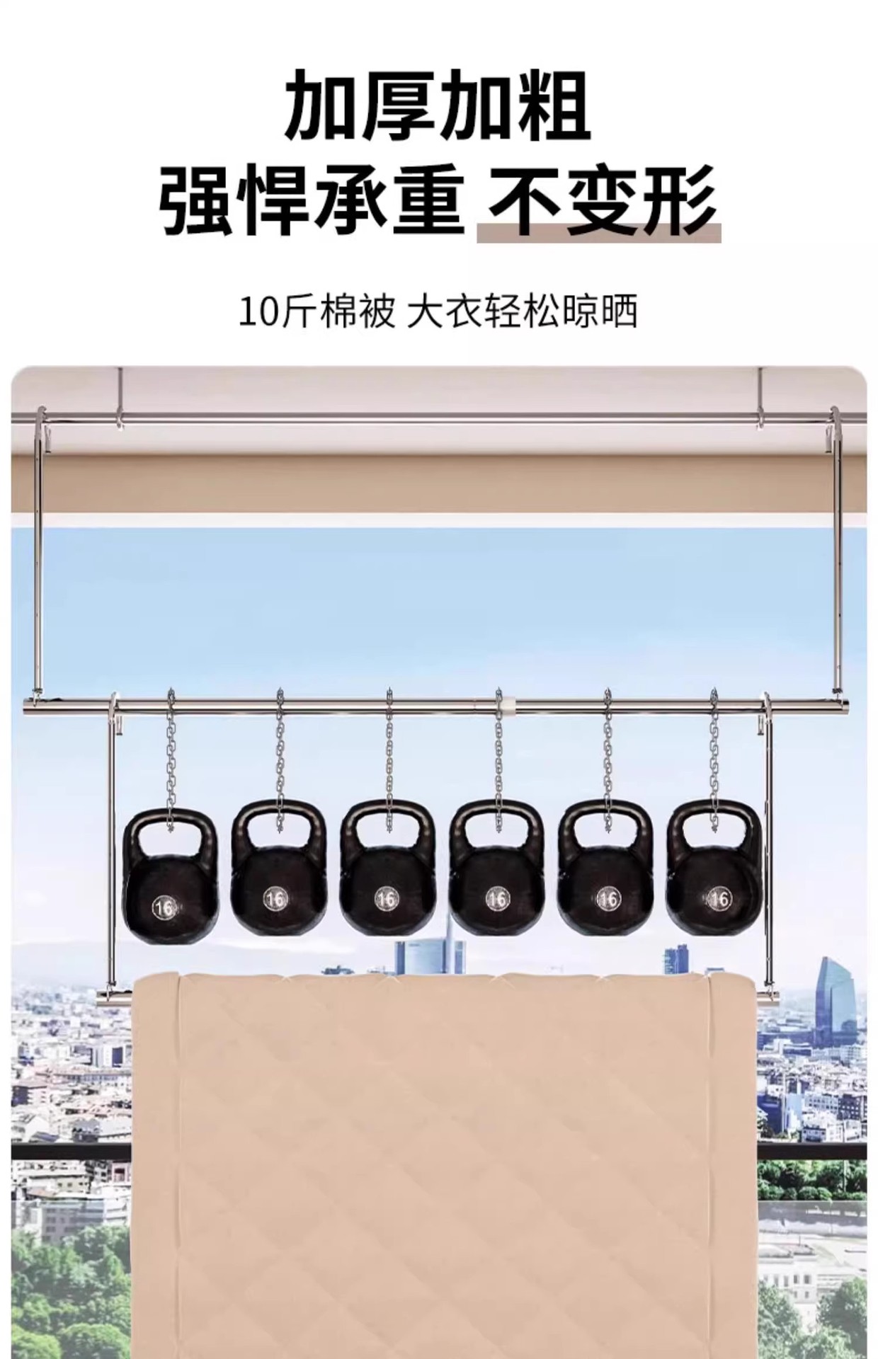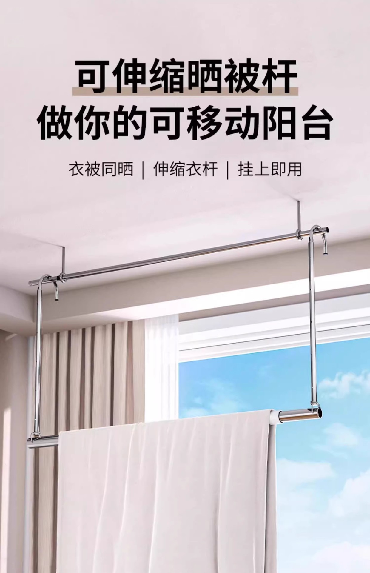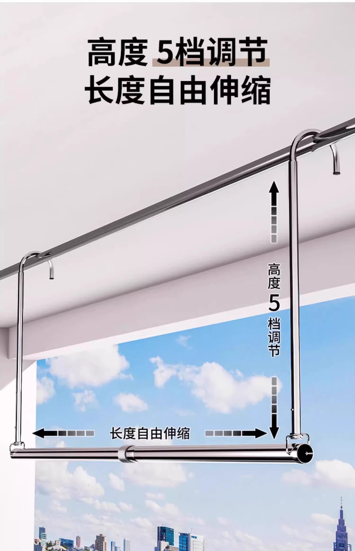 家用阳台伸缩不锈钢免打孔凉衣杆挂衣服晒被子神器捍吊升降晾衣杆