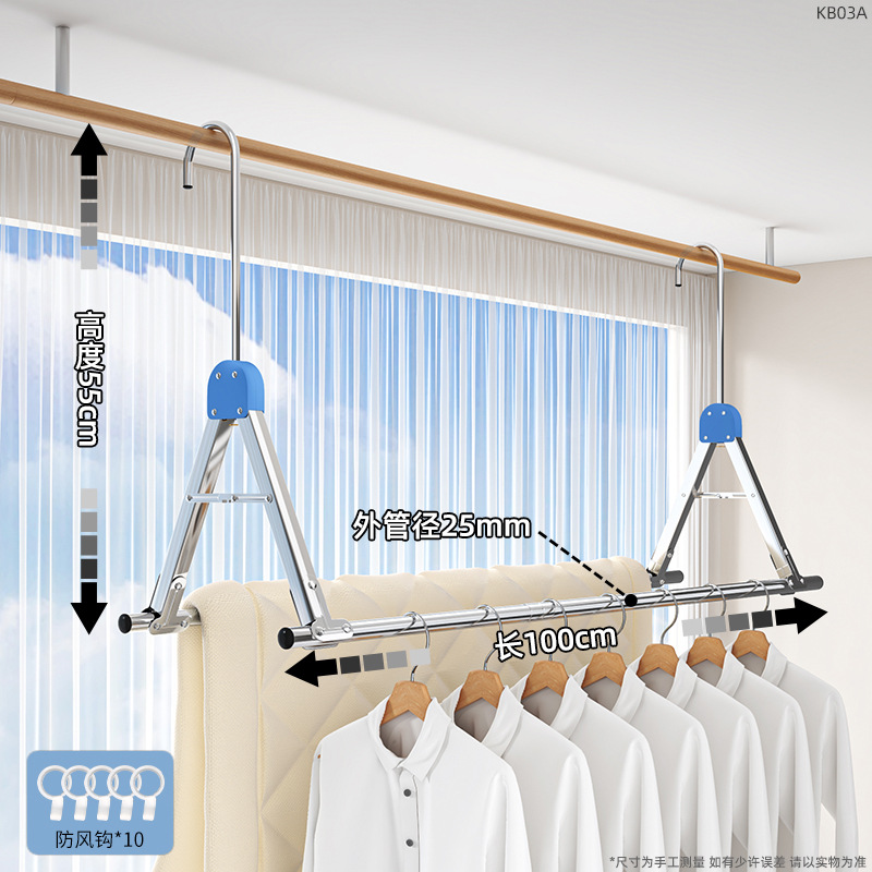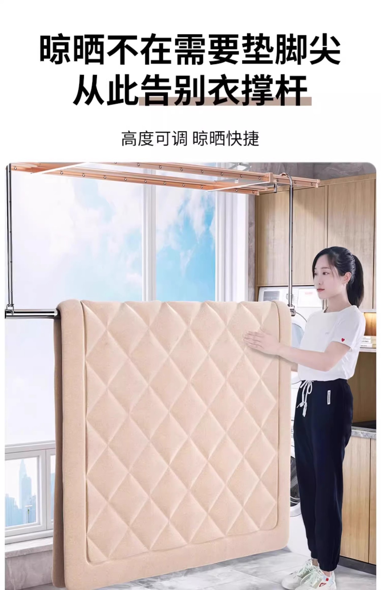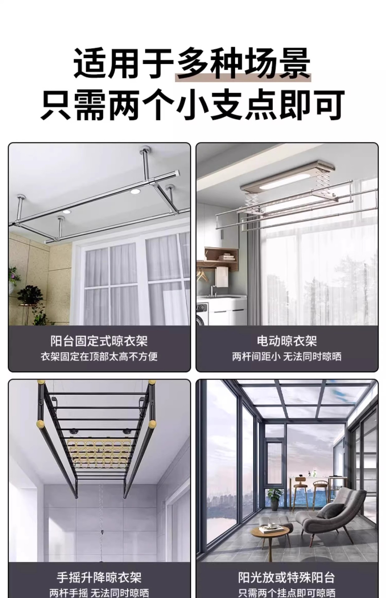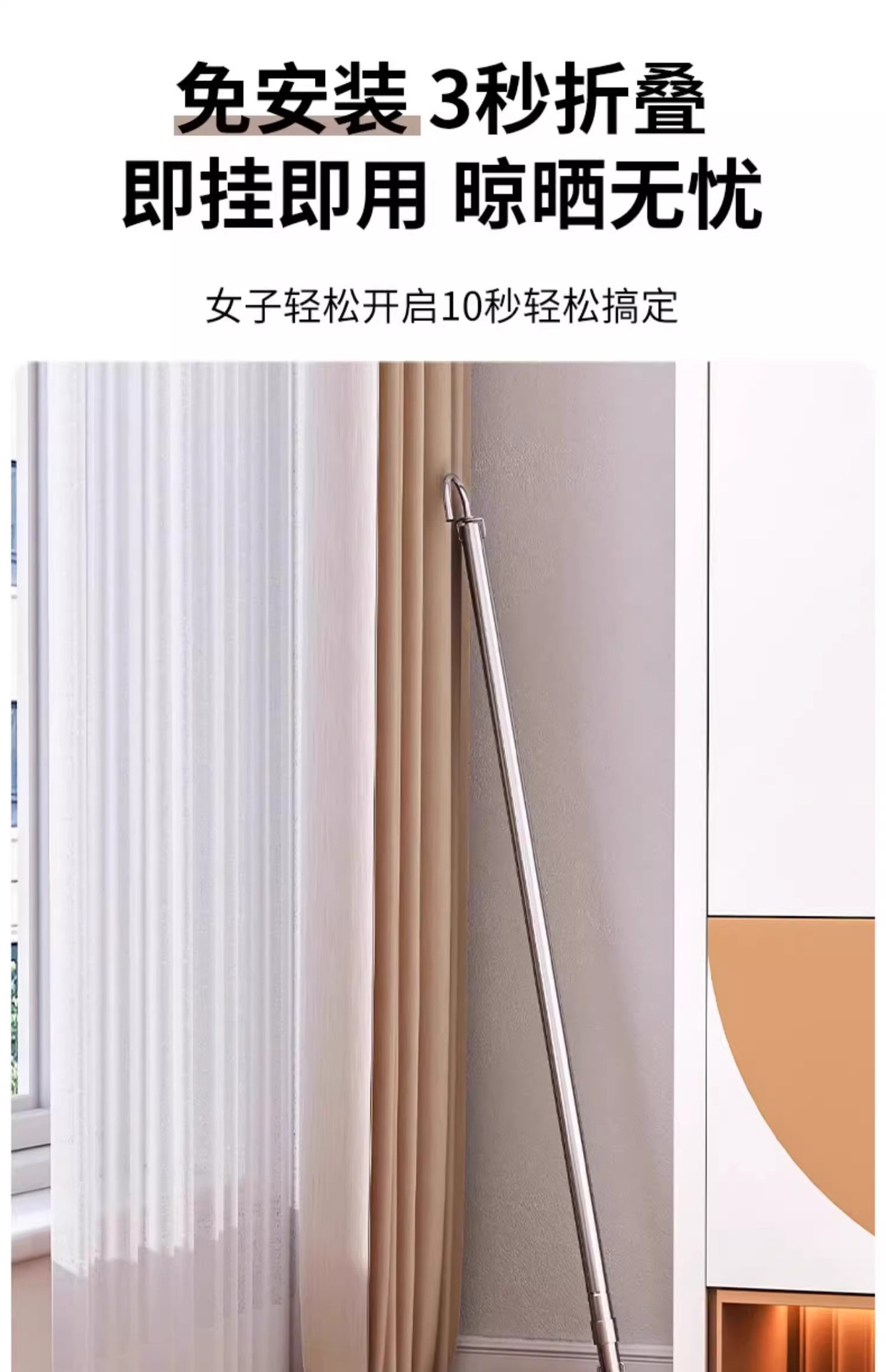 家用阳台伸缩不锈钢免打孔凉衣杆挂衣服晒被子神器捍吊升降晾衣杆