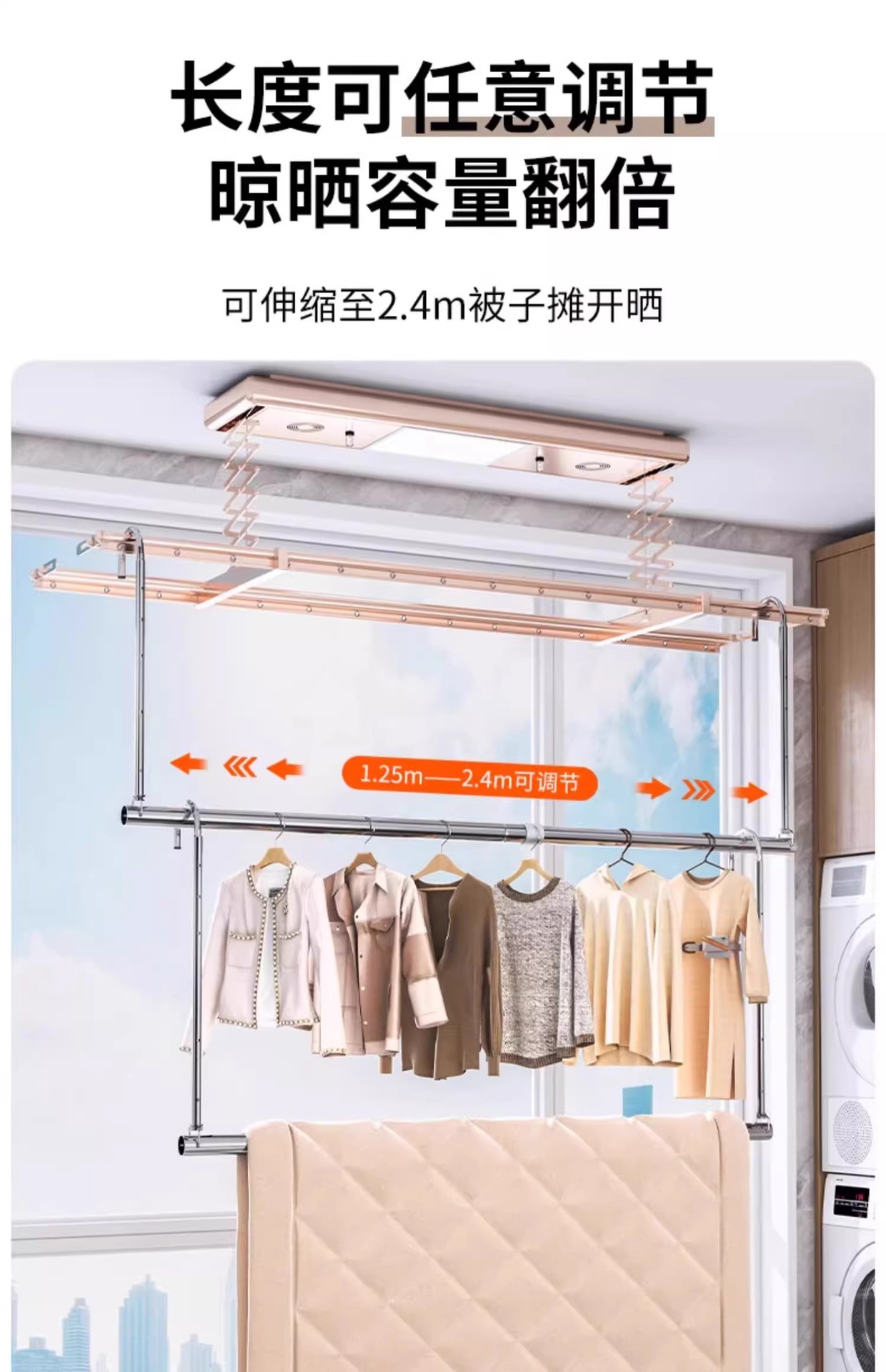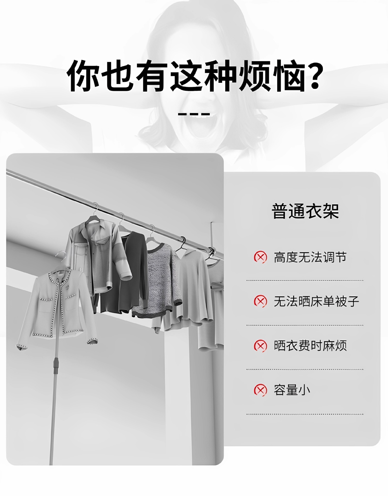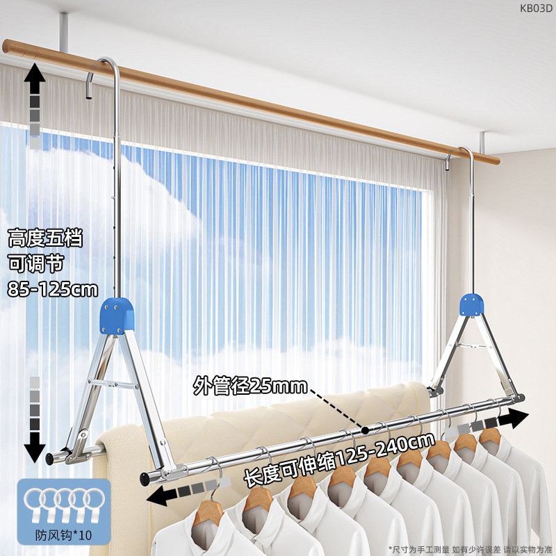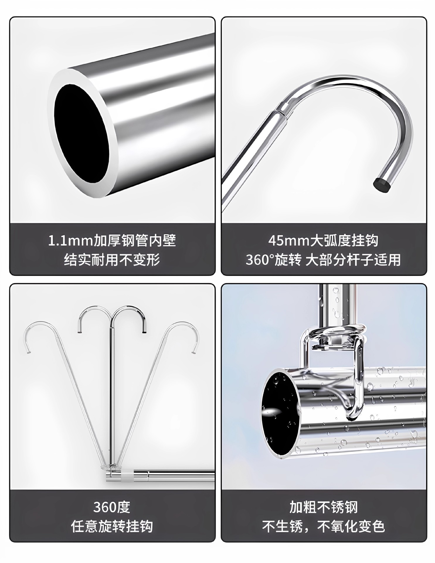 家用阳台伸缩不锈钢免打孔凉衣杆挂衣服晒被子神器捍吊升降晾衣杆