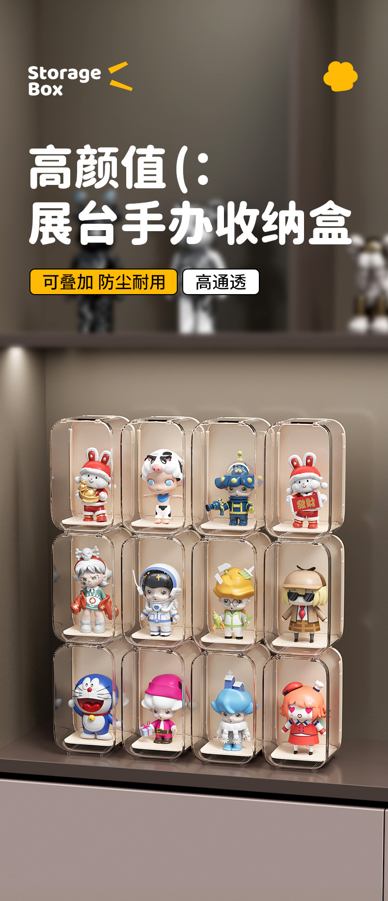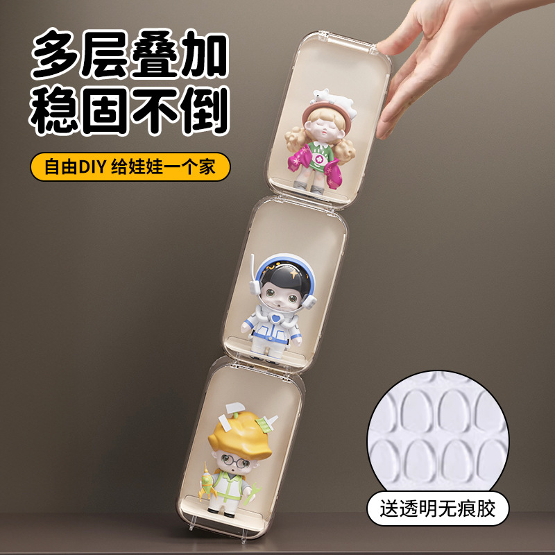 盲盒手办收纳展示架透明亚克力单个柜子公仔收纳盒乐高防尘展示盒