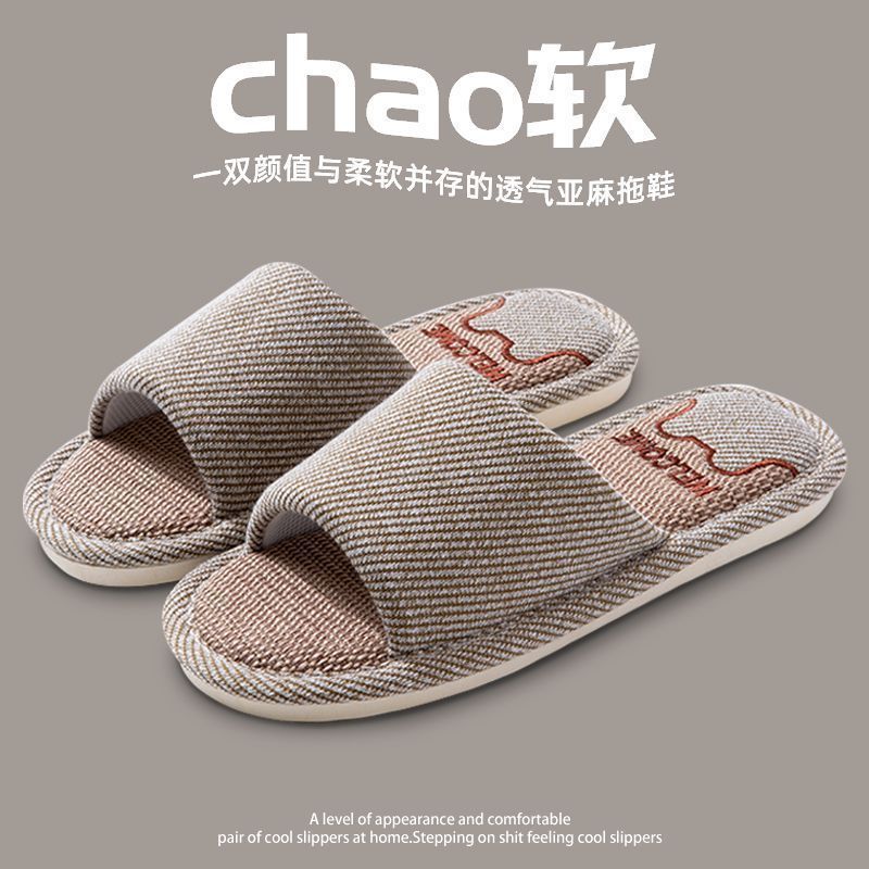 亚麻拖鞋女居家居室内春秋家用情侣四季开口拖静音防滑棉麻拖鞋男