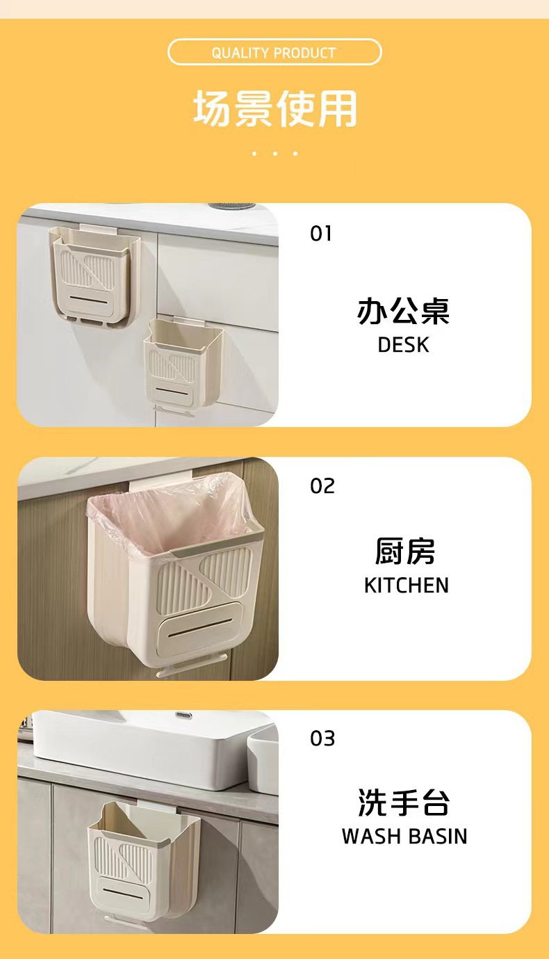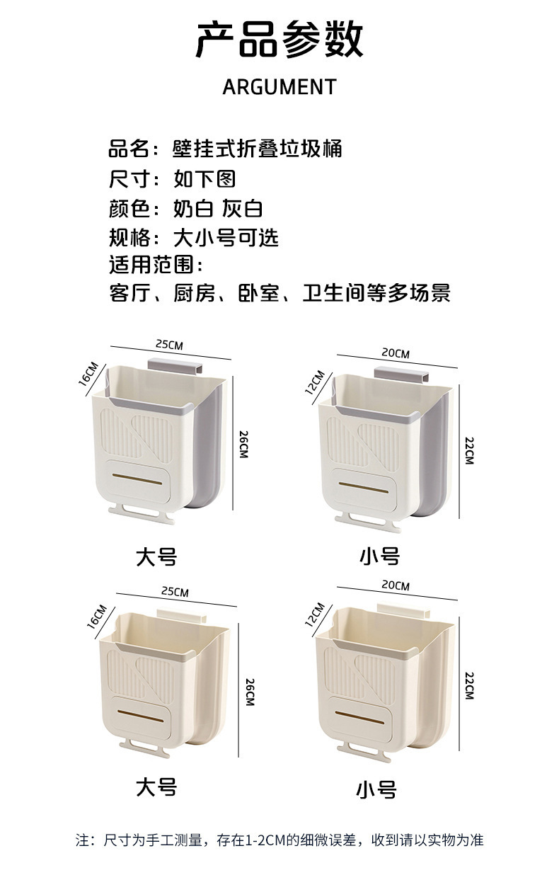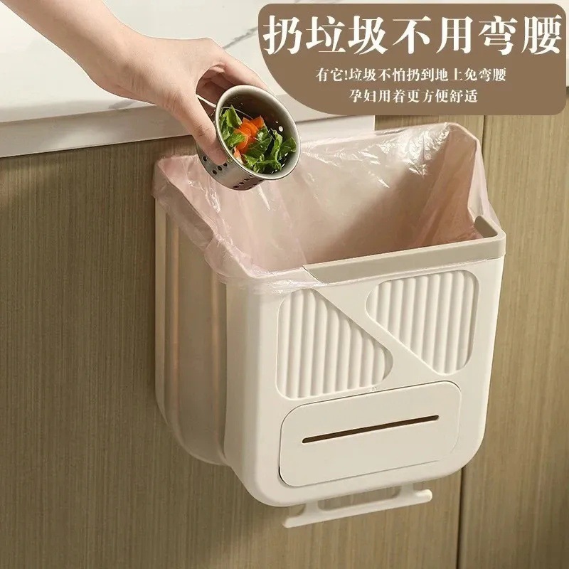 厨房免打孔垃圾桶橱柜门壁挂式悬挂家用大可折叠卫生间厕所收纳桶
