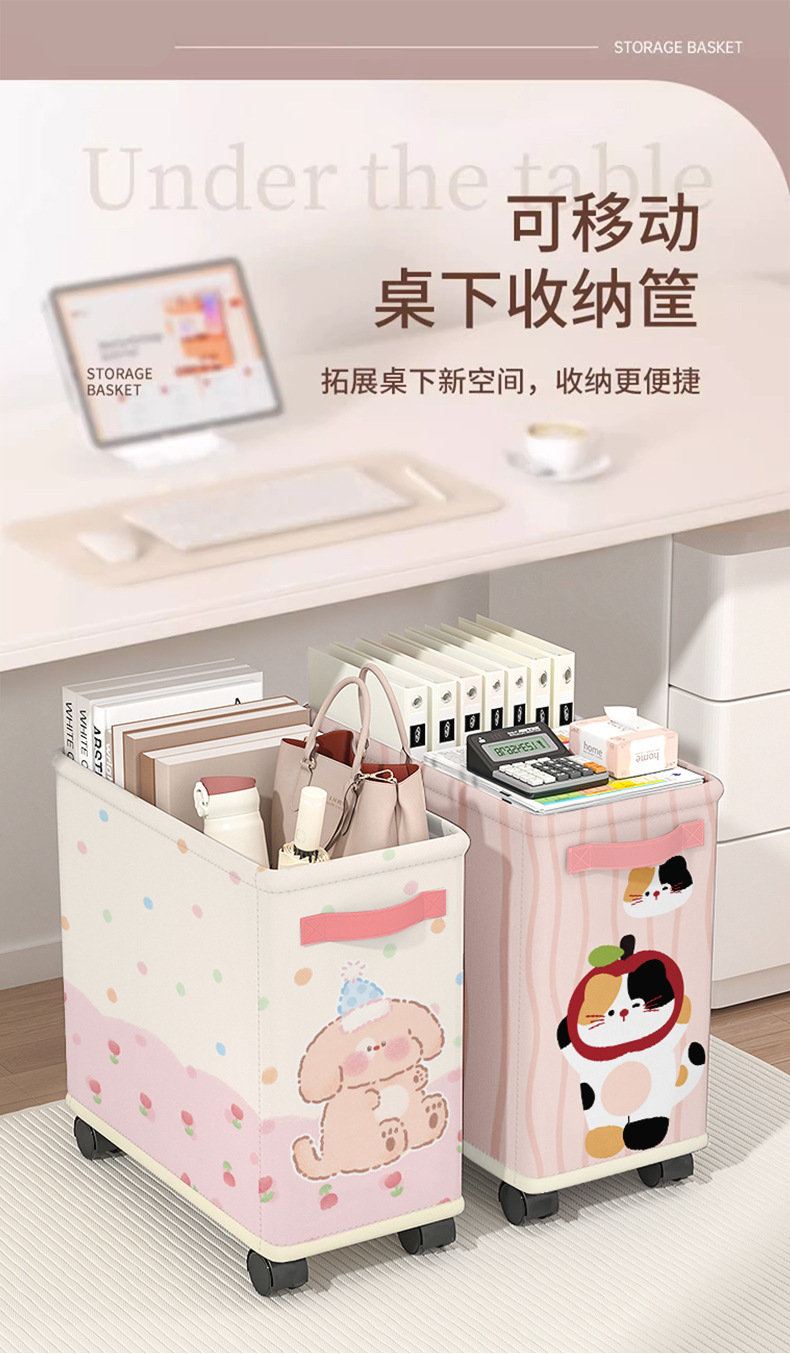 办公室滑轮小收纳筐抽屉式可折叠可移动学生宿舍置物筐特大号耐用