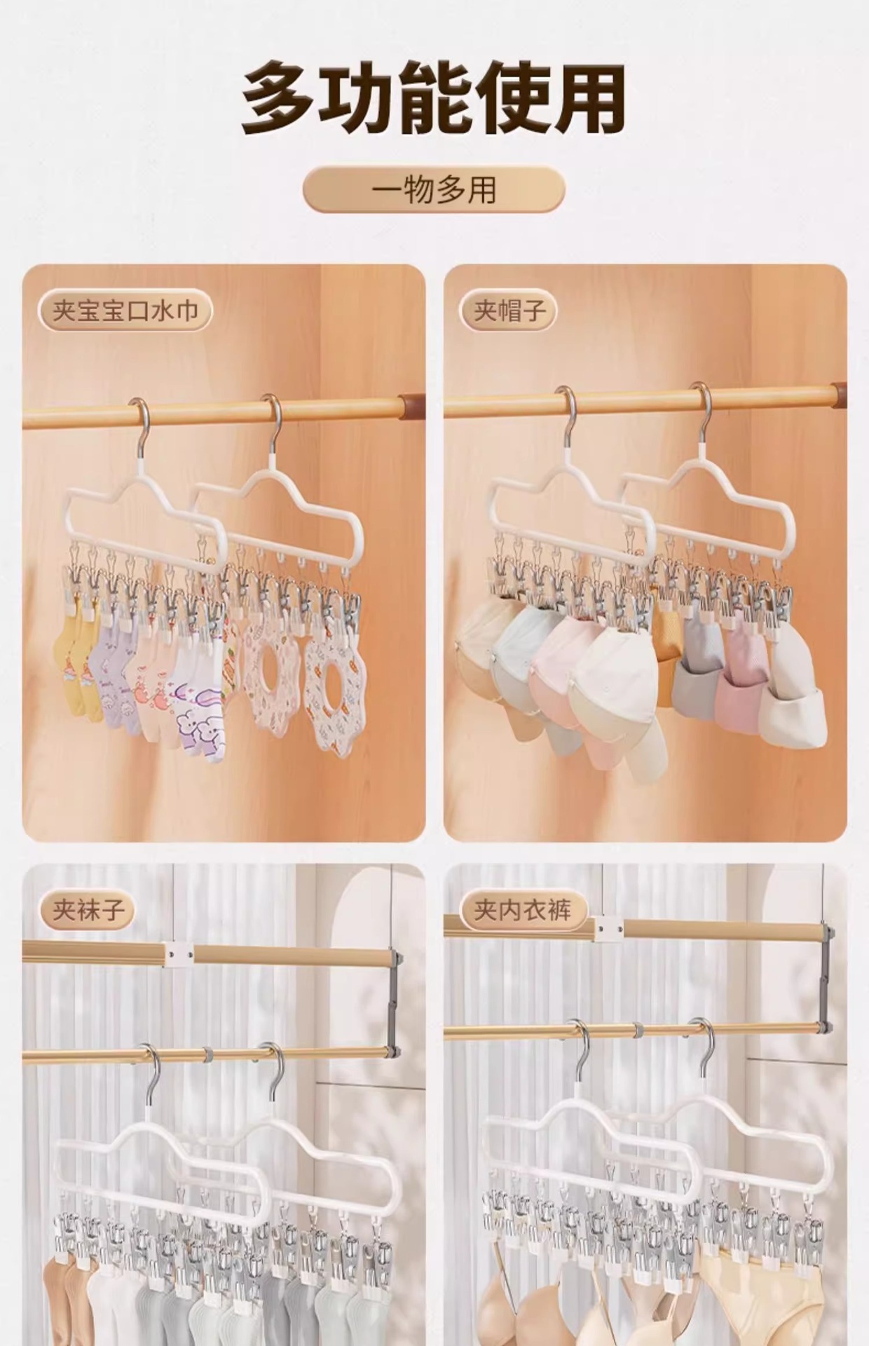袜子晾晒架衣架带夹子晾衣夹多夹子挂内衣凉内裤多功能晒袜子神器