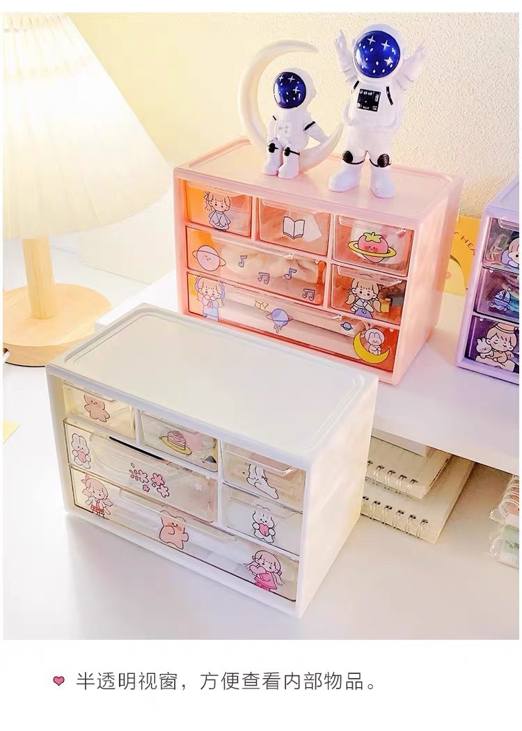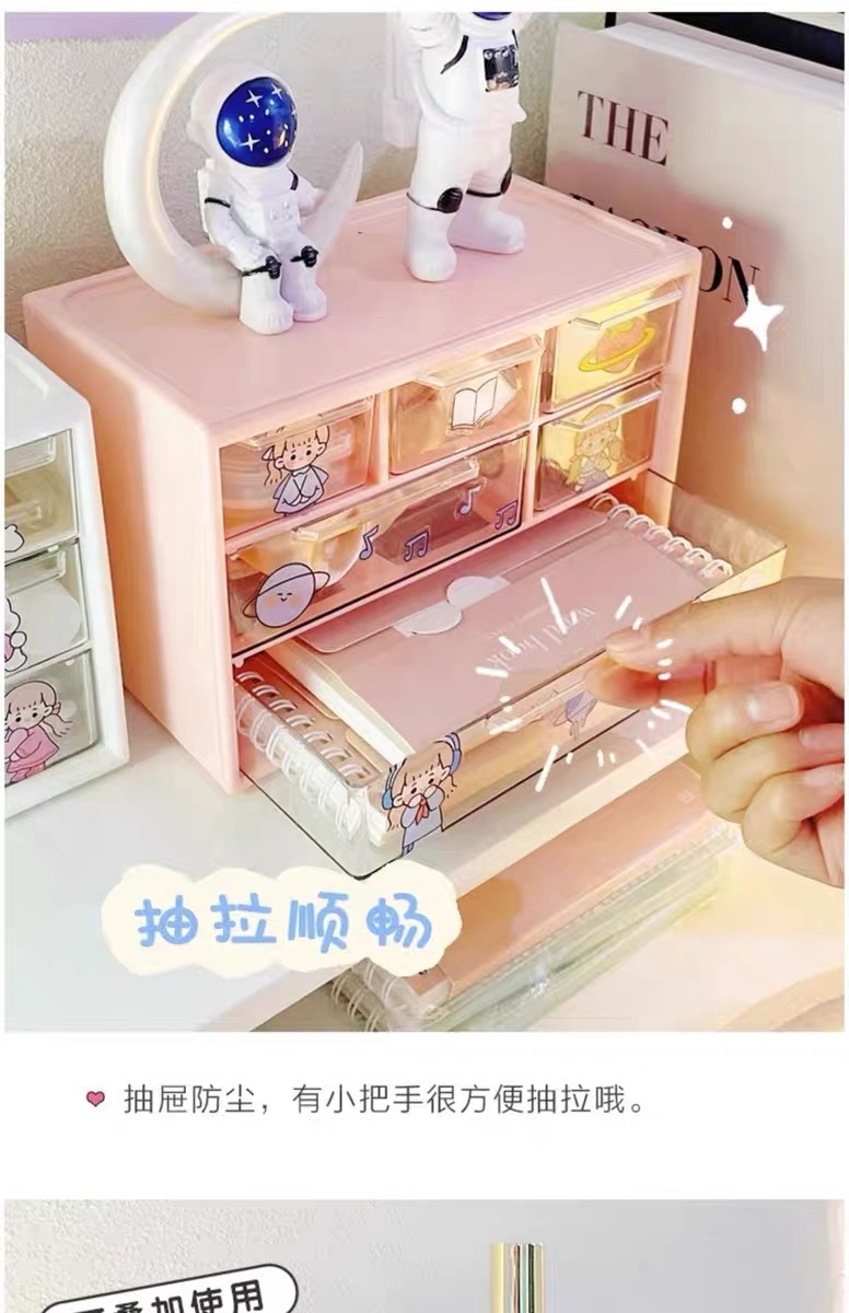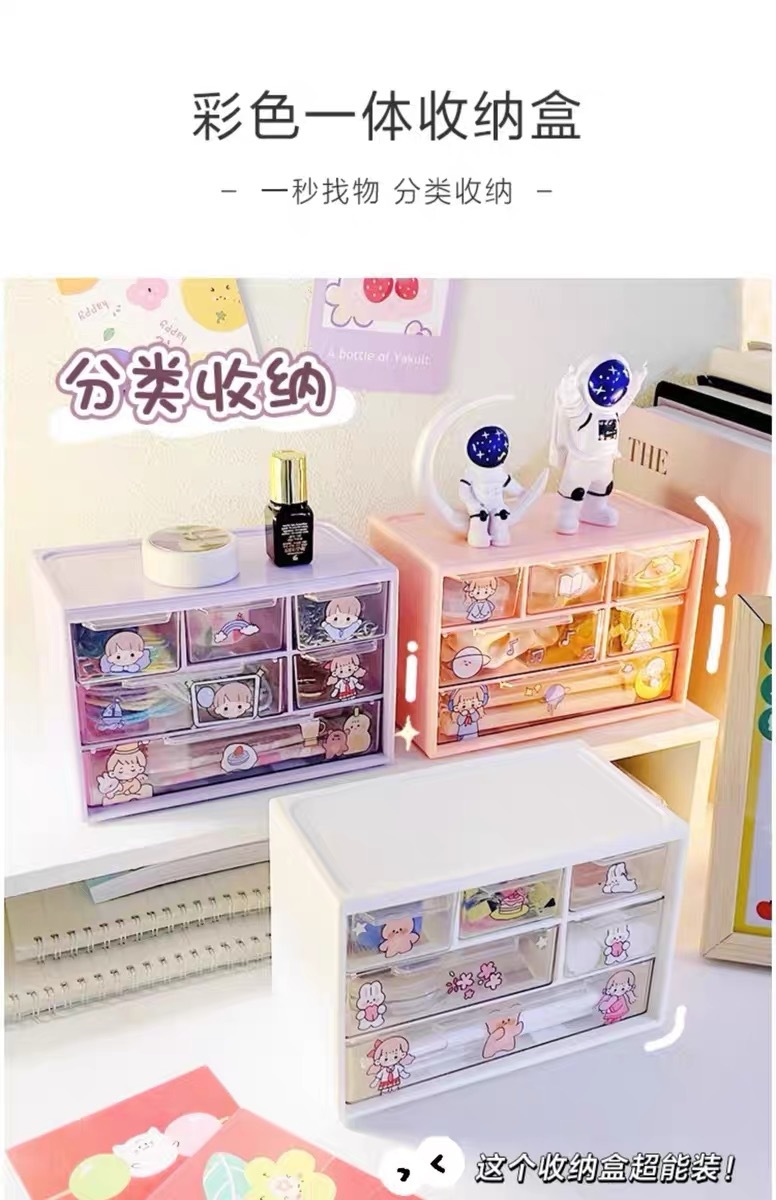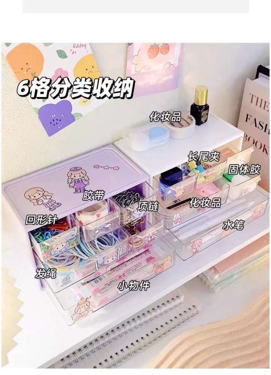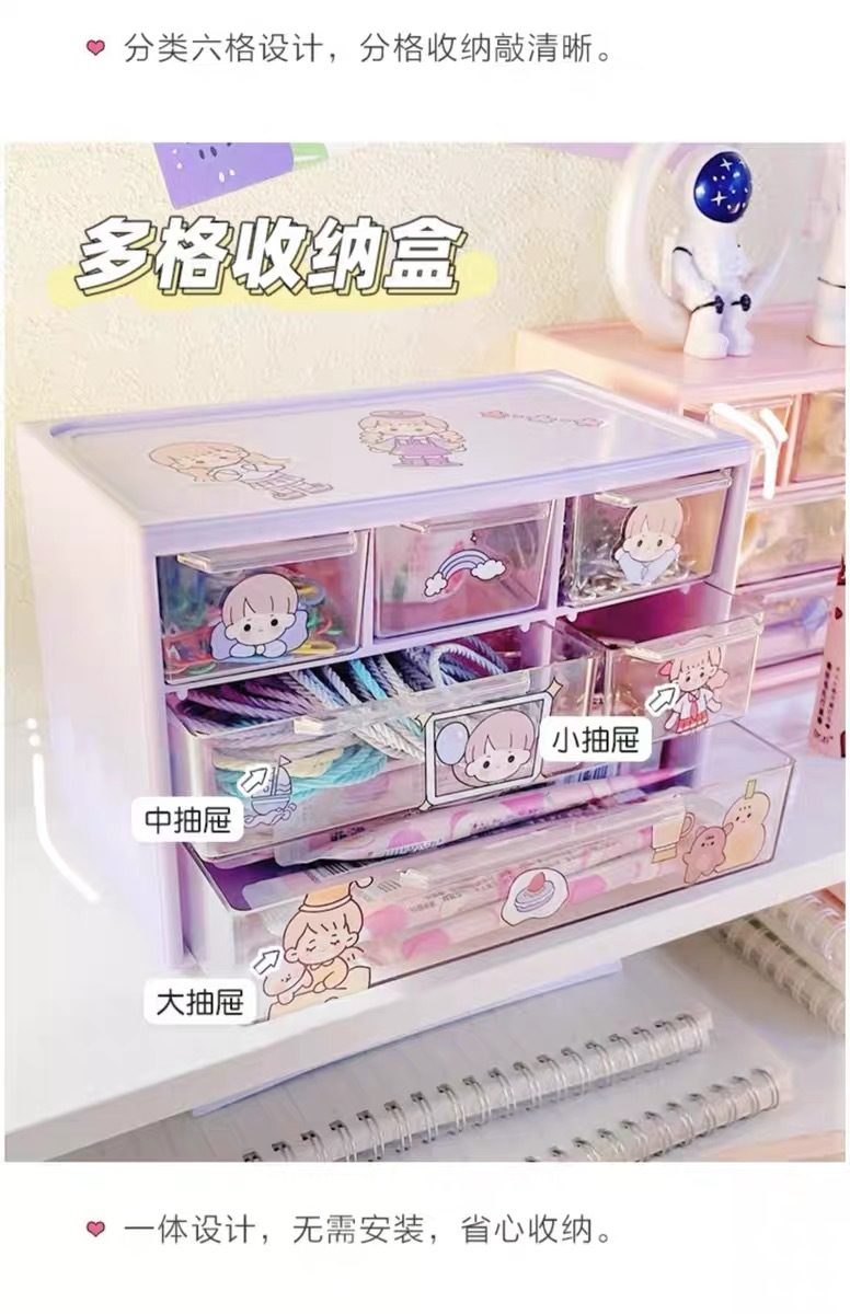 新款六宫格桌面大容量抽屉式分格收纳盒学生证件文具化妆品收纳