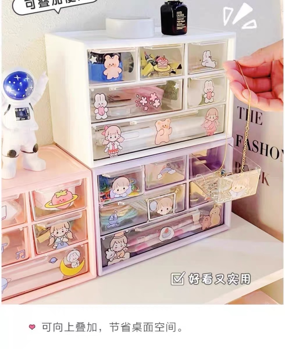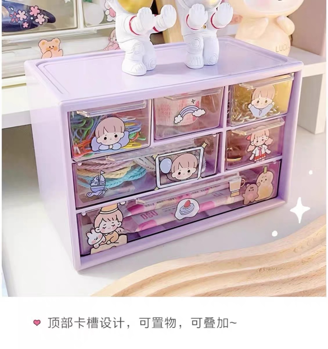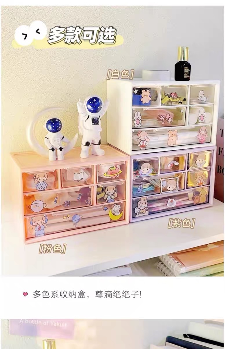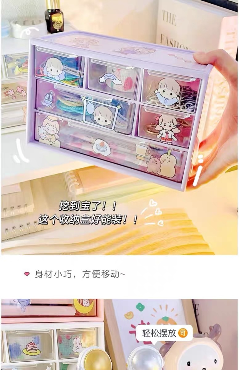 新款六宫格桌面大容量抽屉式分格收纳盒学生证件文具化妆品收纳
