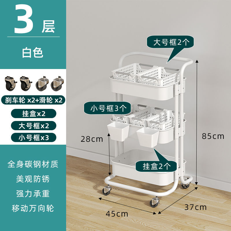可移动置物架厨房储物架客厅零食小推车多功能卫生间浴室床头架