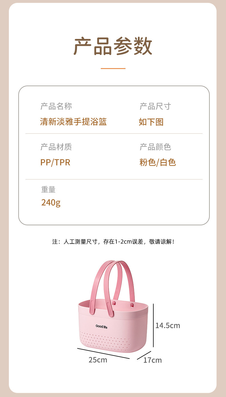 【加厚手提沐浴篮】简约学生衣物沐浴筐宿舍收纳篮浴室洗漱收纳框