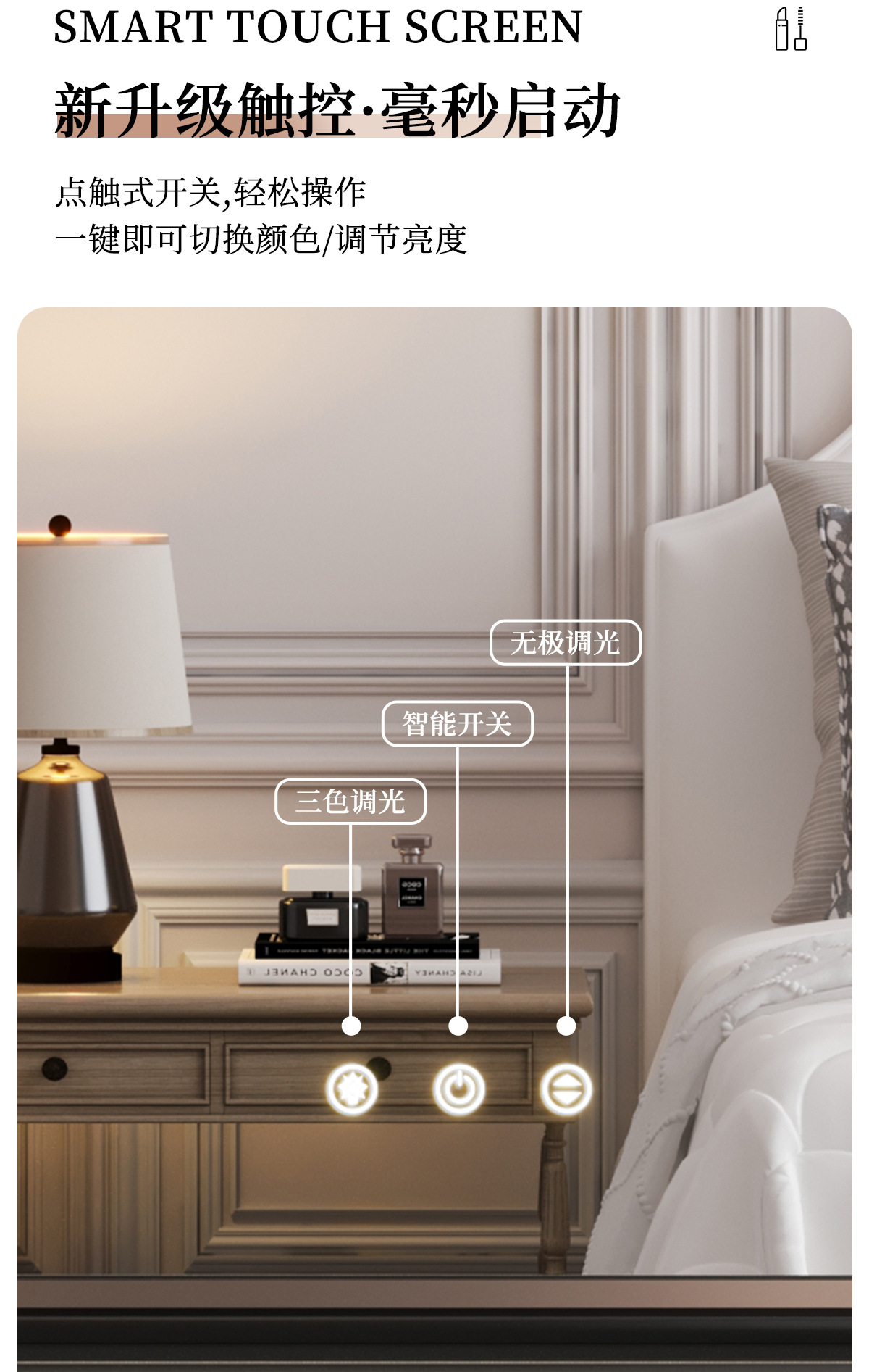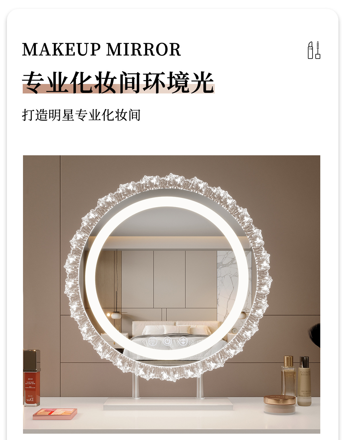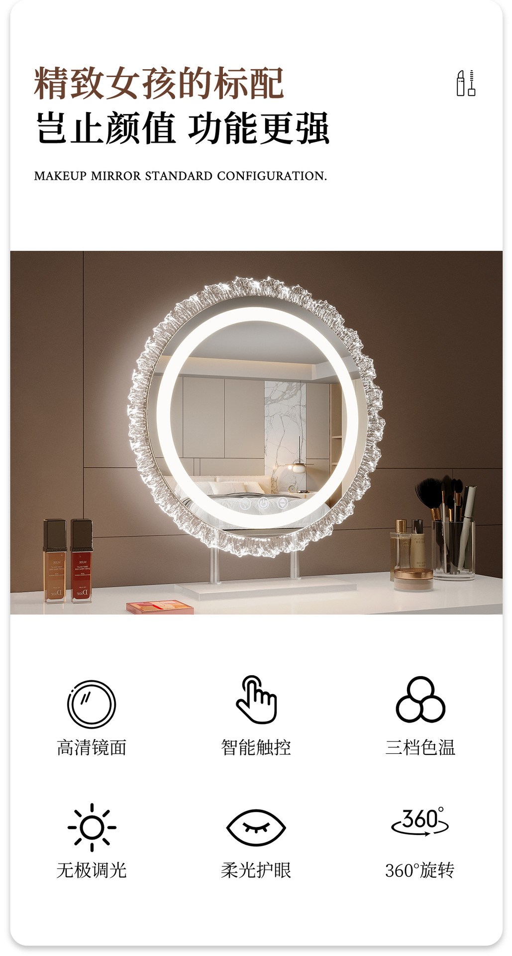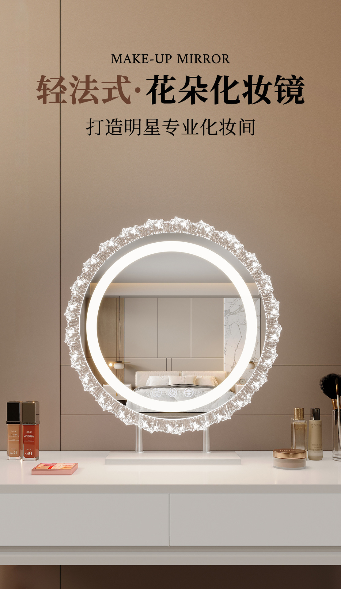 化妆镜带灯led异形台式桌面补光镜子可旋转梳妆镜智能触控美妆镜