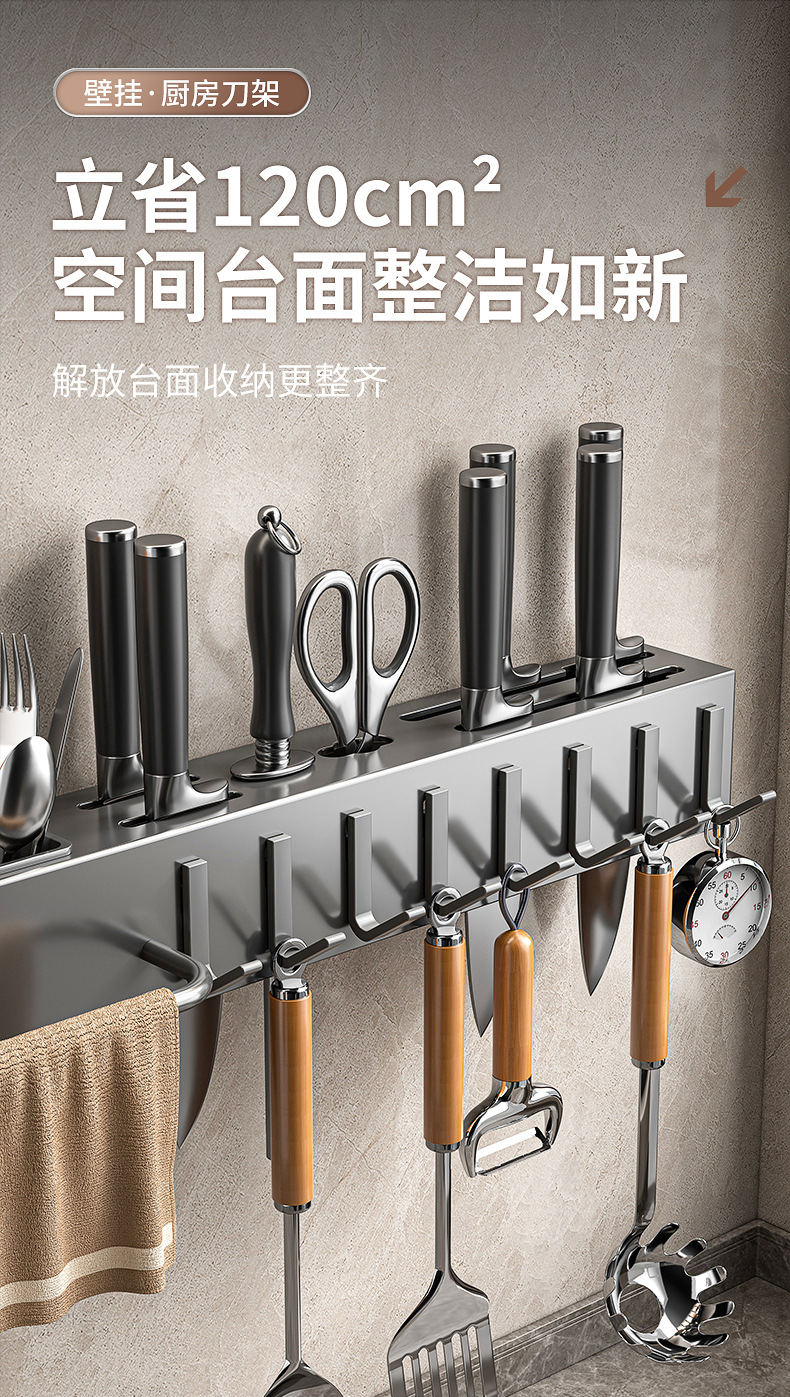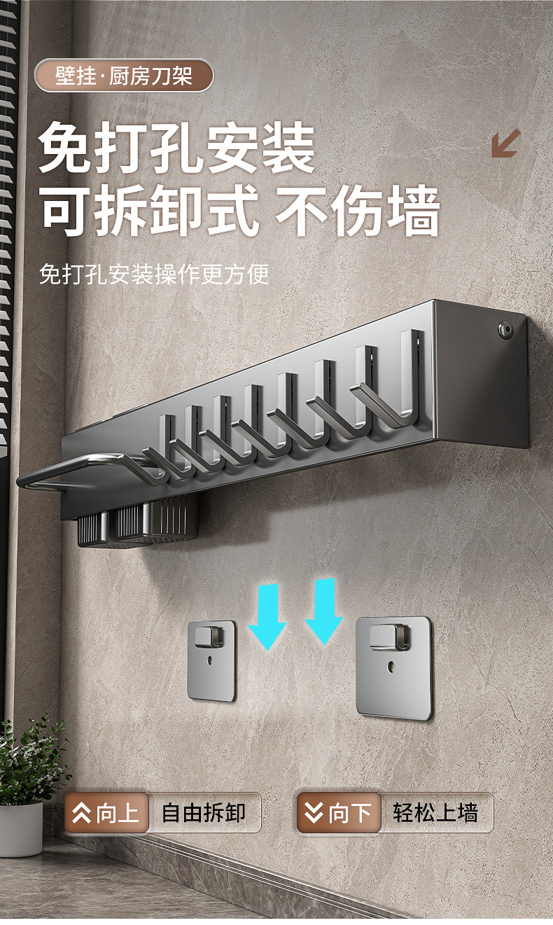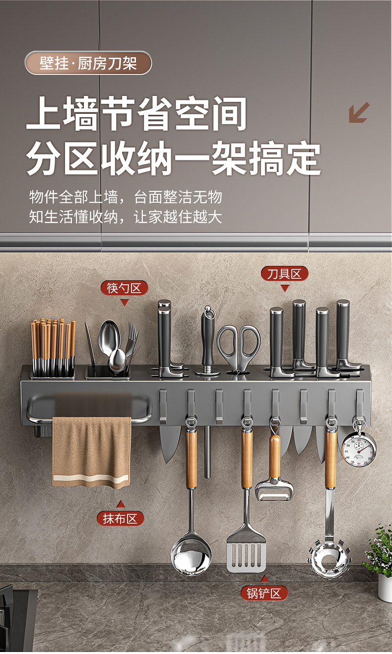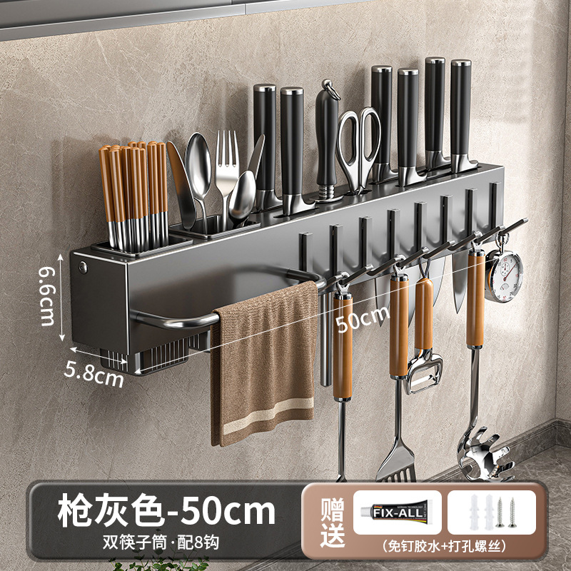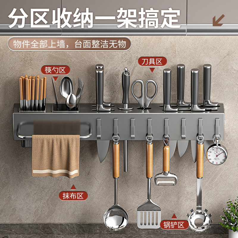 加厚刀架免打孔厨房置物架厨房用品多功能壁挂式筷子筒菜刀具收纳