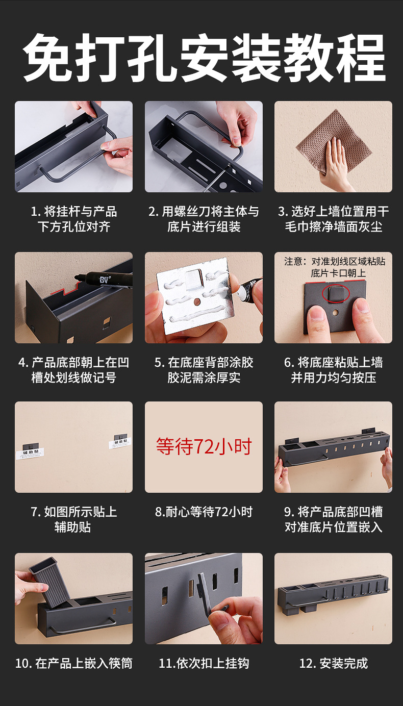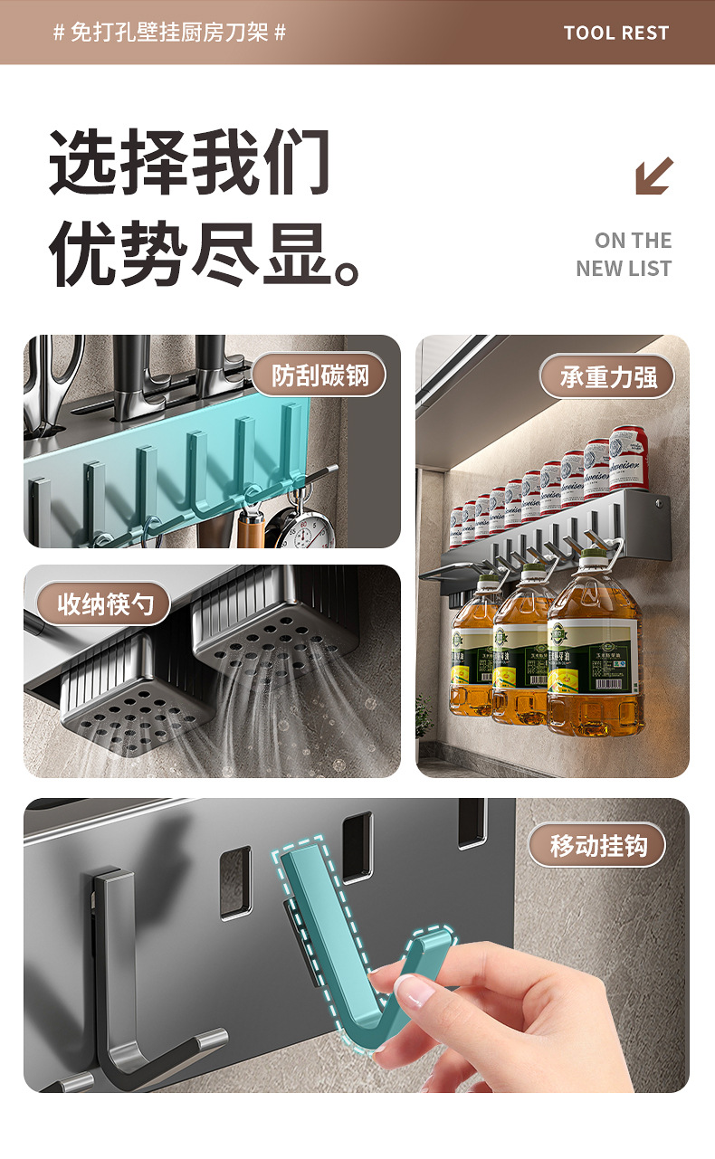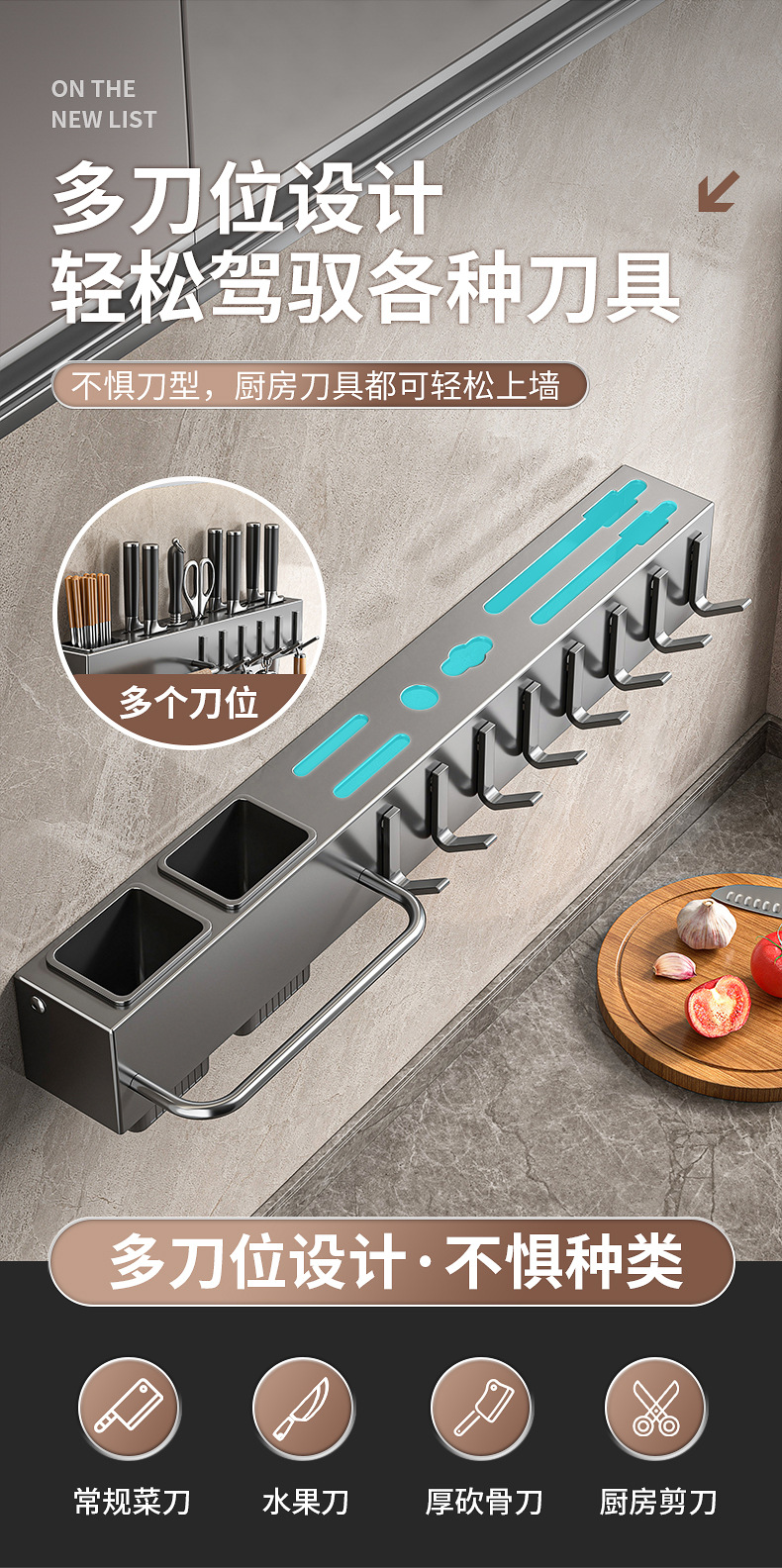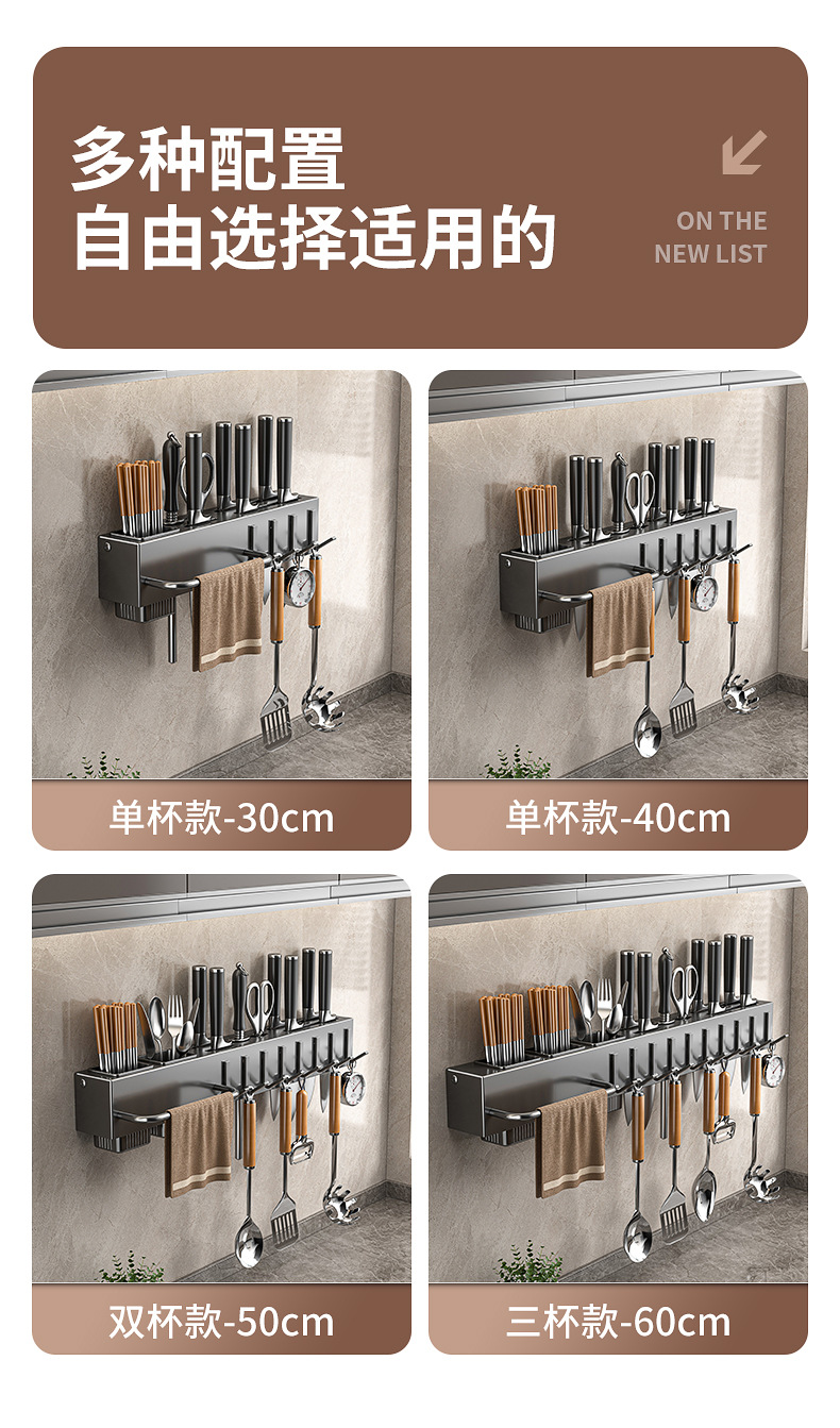 加厚刀架免打孔厨房置物架厨房用品多功能壁挂式筷子筒菜刀具收纳