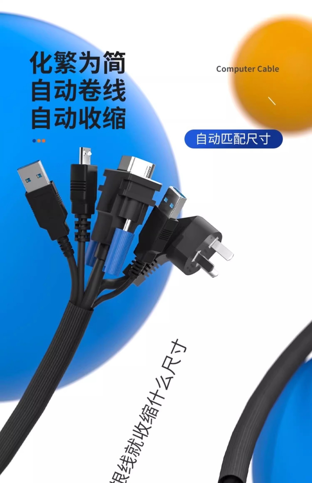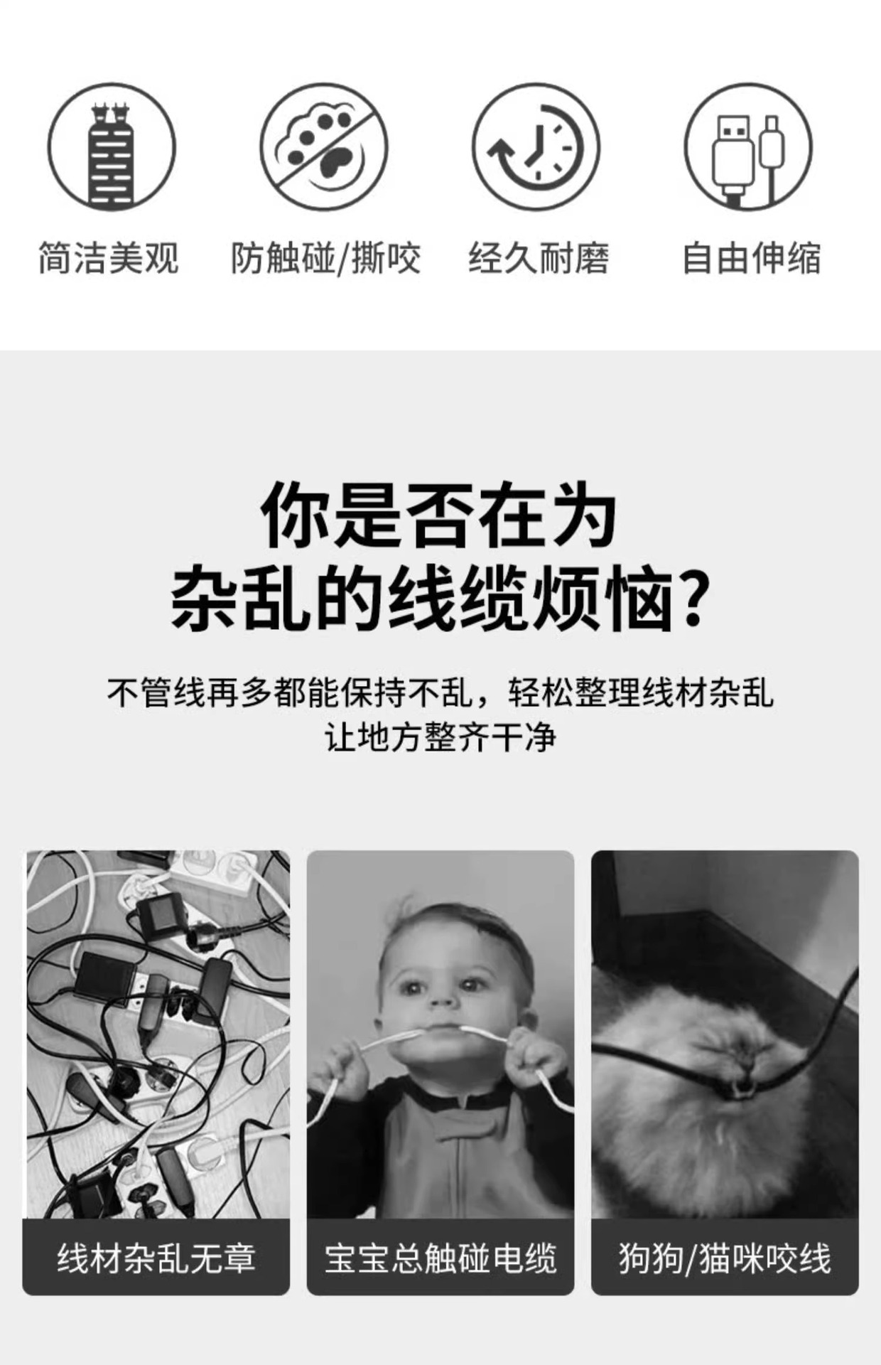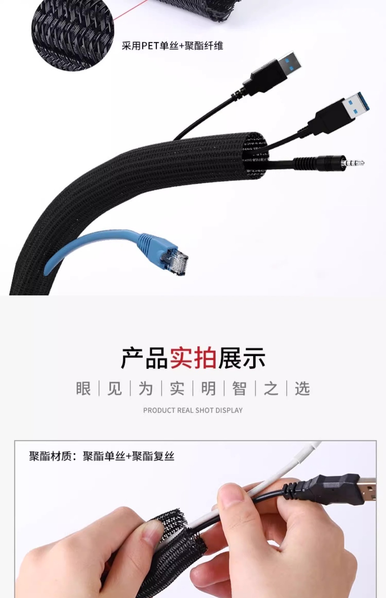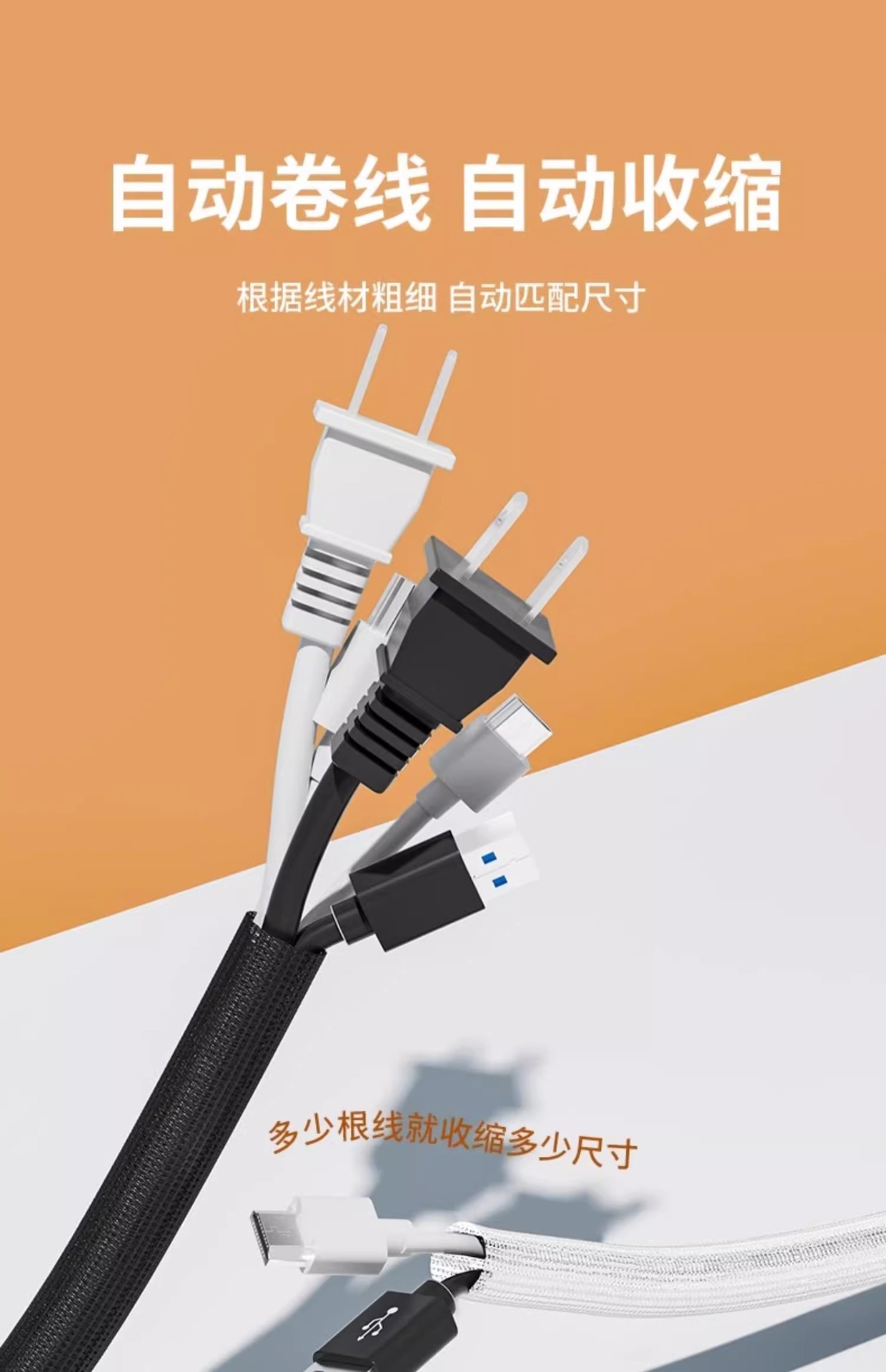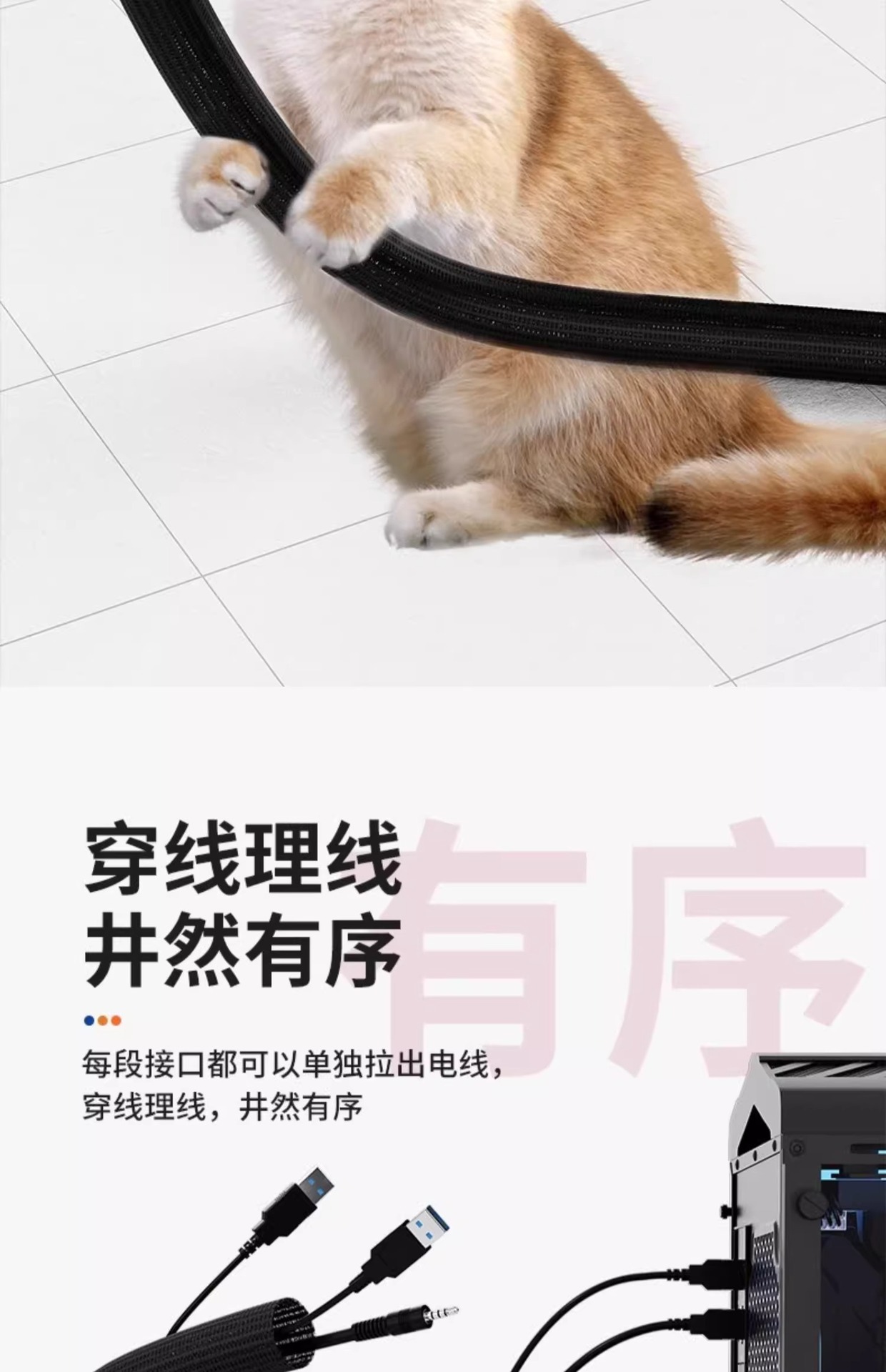 电脑线固定集线器整理线管套防猫咬保护电线收纳束线理线管