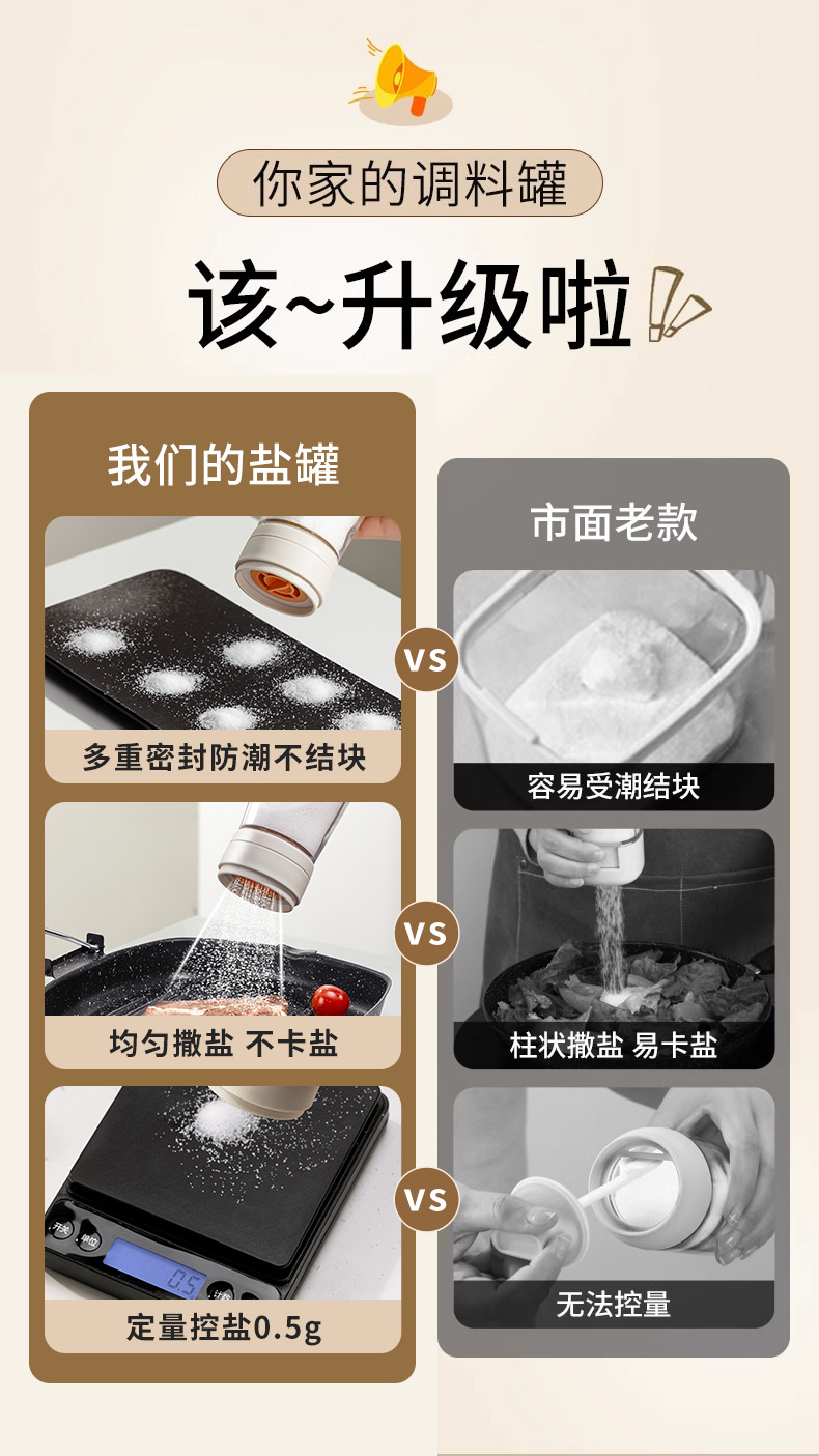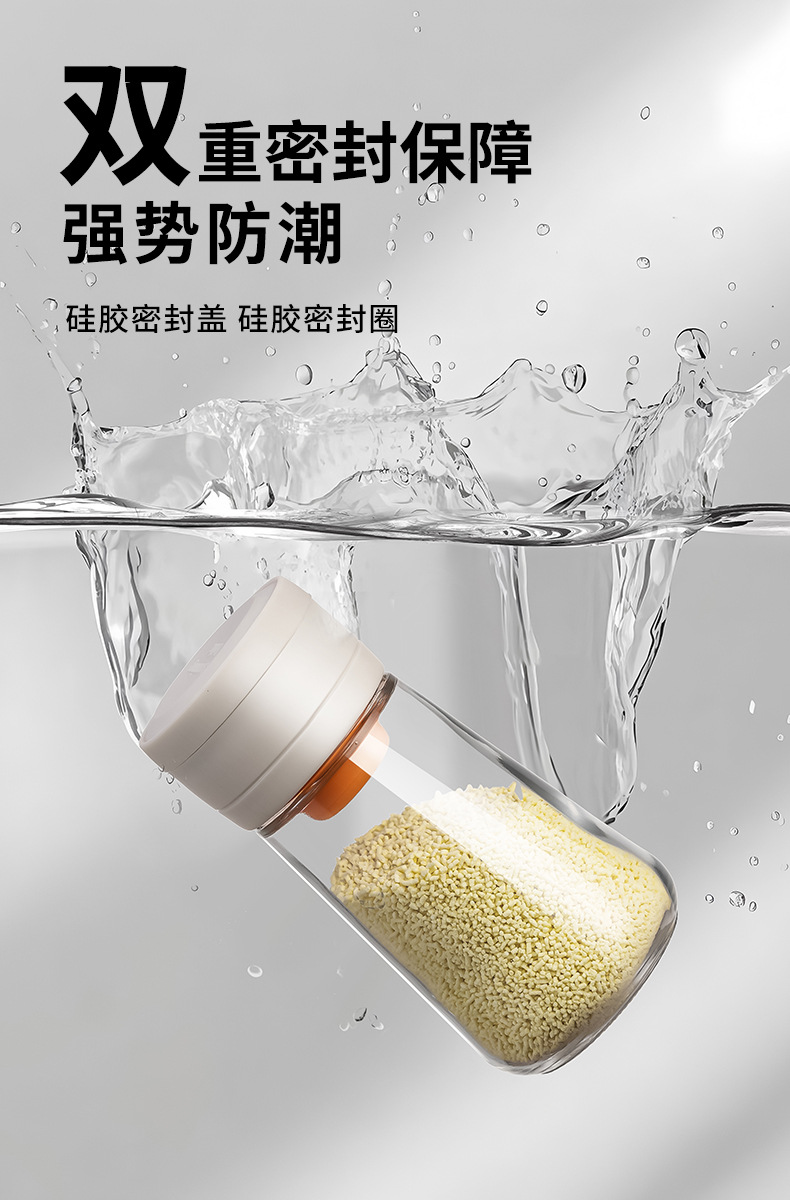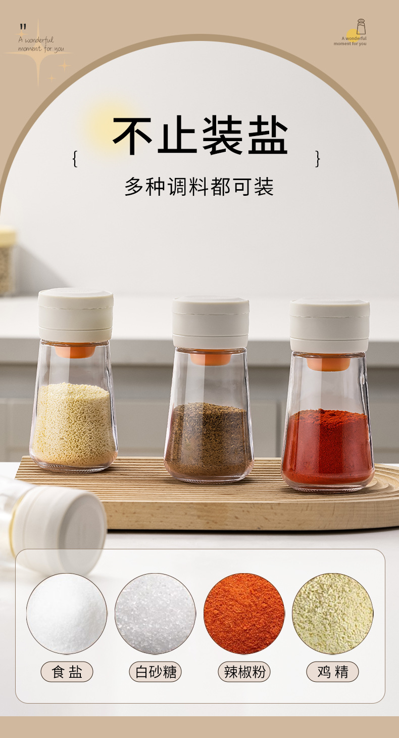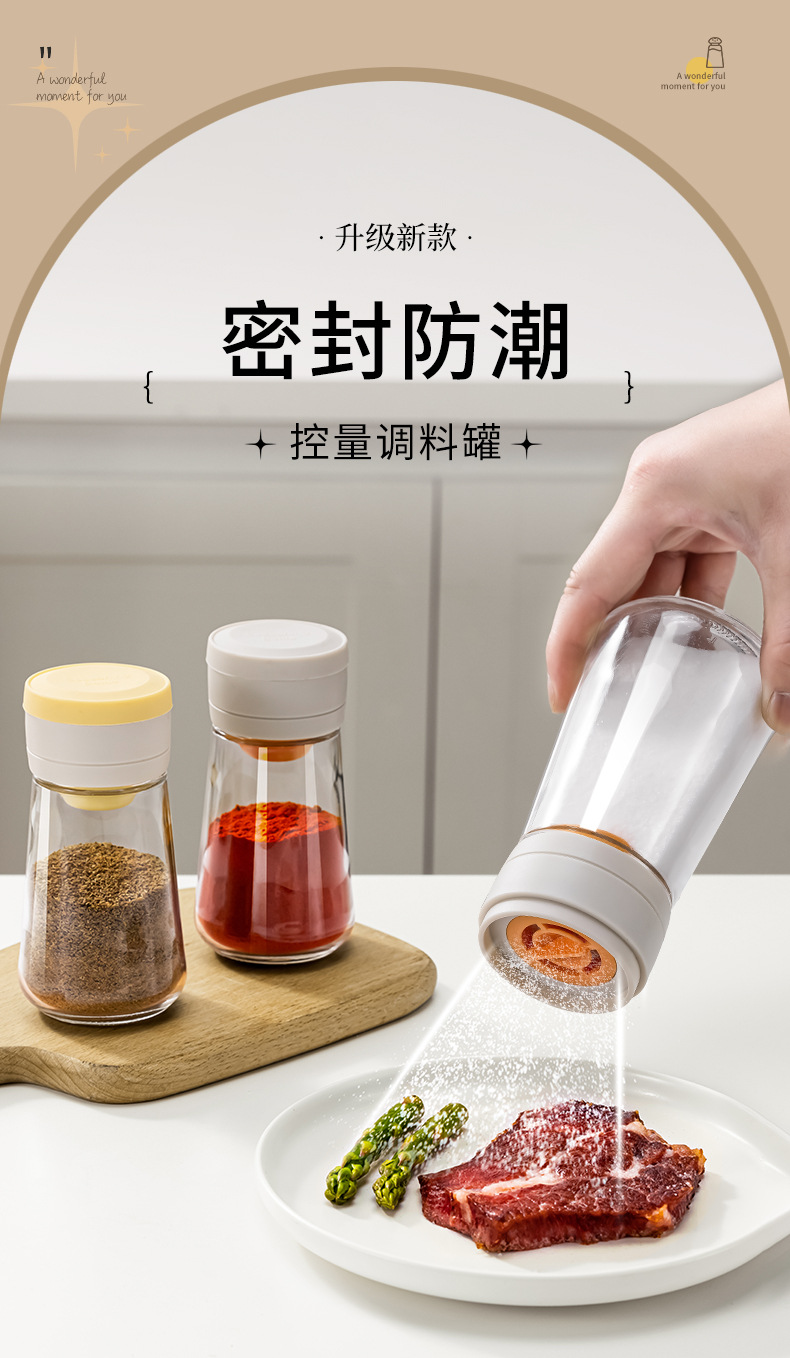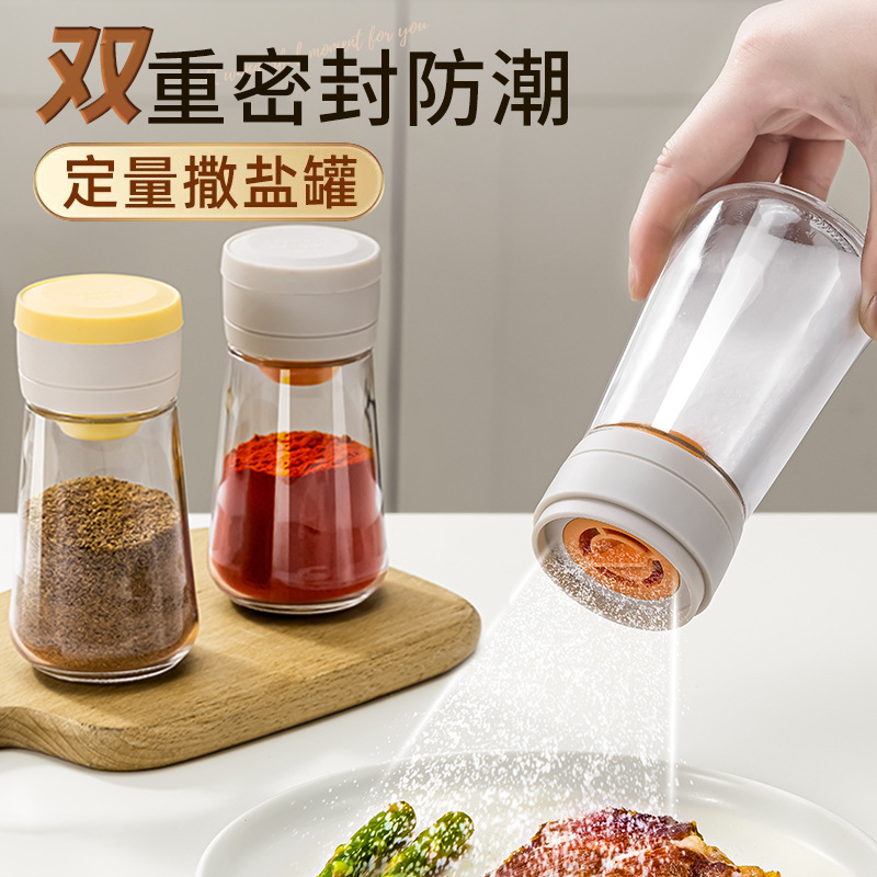 两用定量盐罐调料盒厨房玻璃调料罐防潮密封盐罐调味罐分装瓶盐瓶
