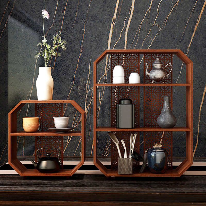 实木博古架挂墙木质多宝格茶桌置物架茶壶茶具杯子摆件收纳格子架
