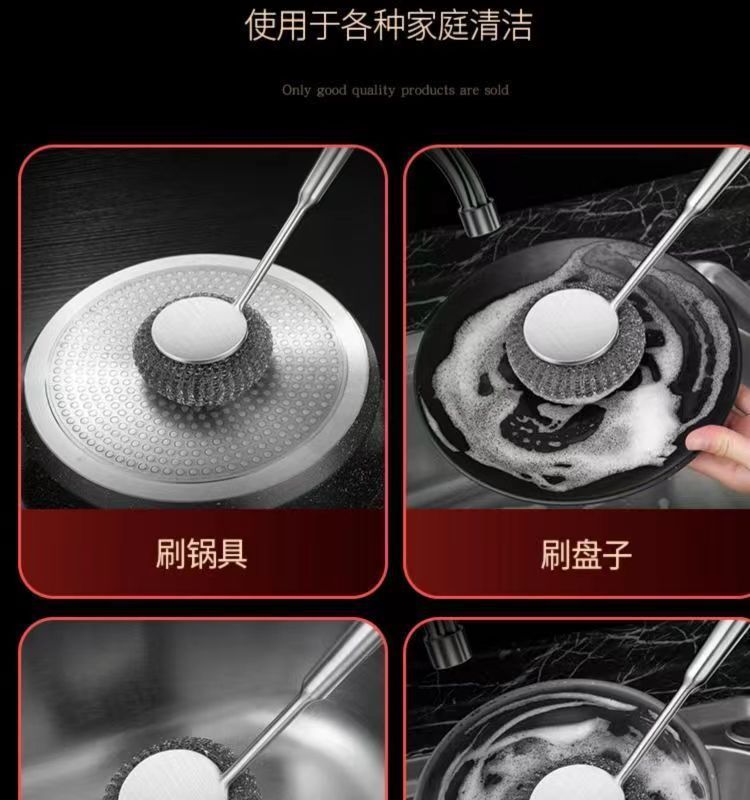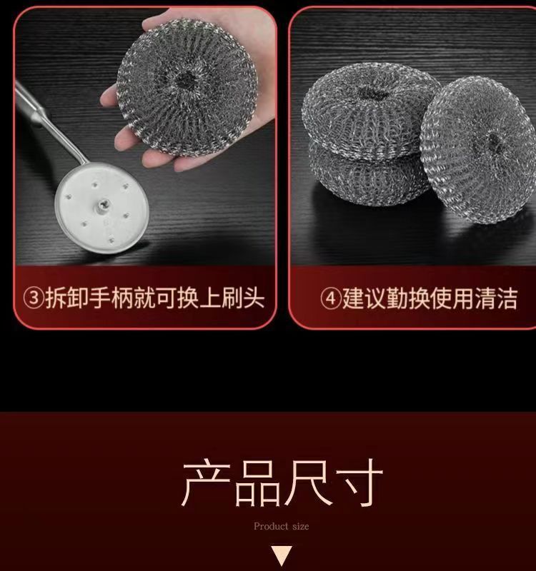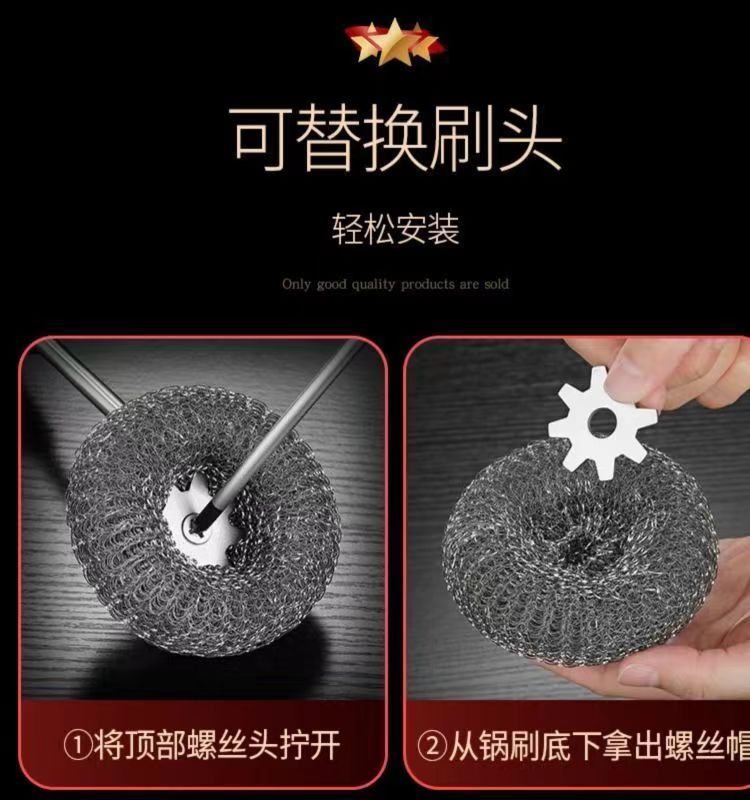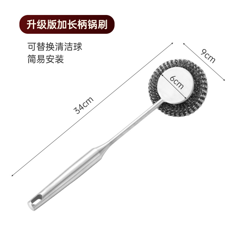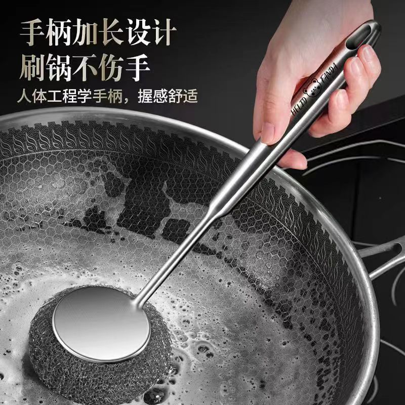 304不锈钢刷子锅刷厨房专用清洁家用钢丝不粘锅长柄刷锅神器