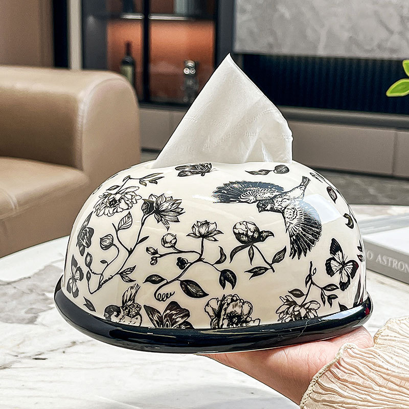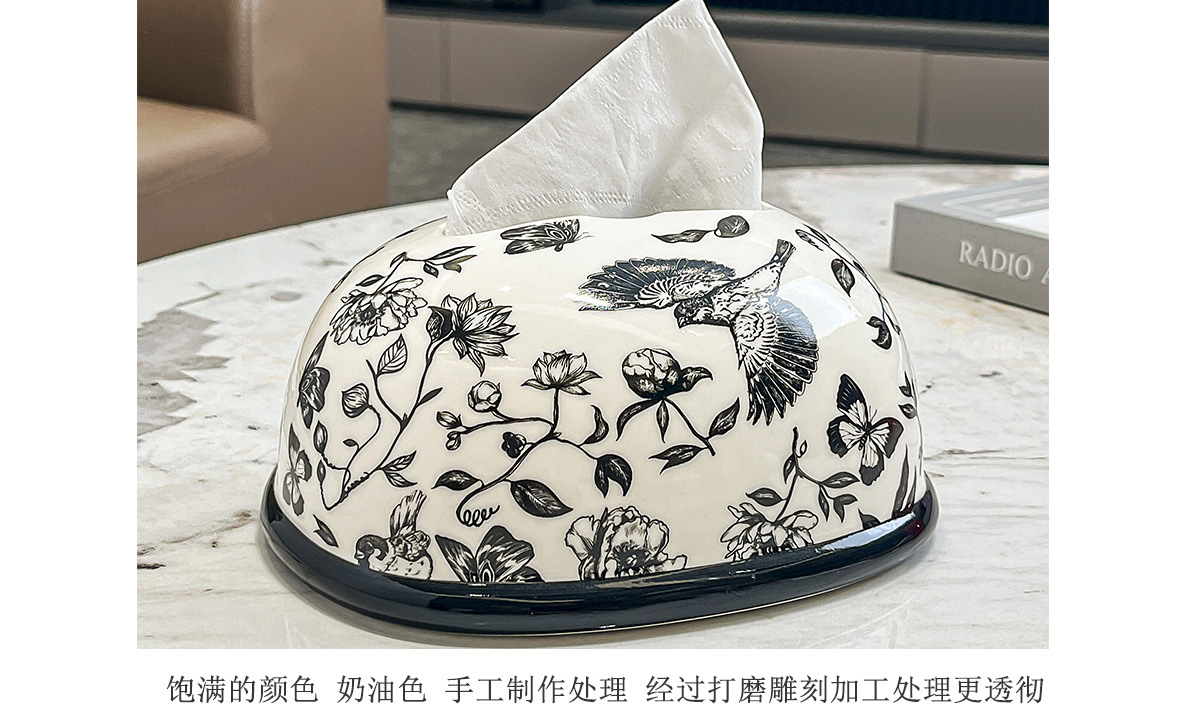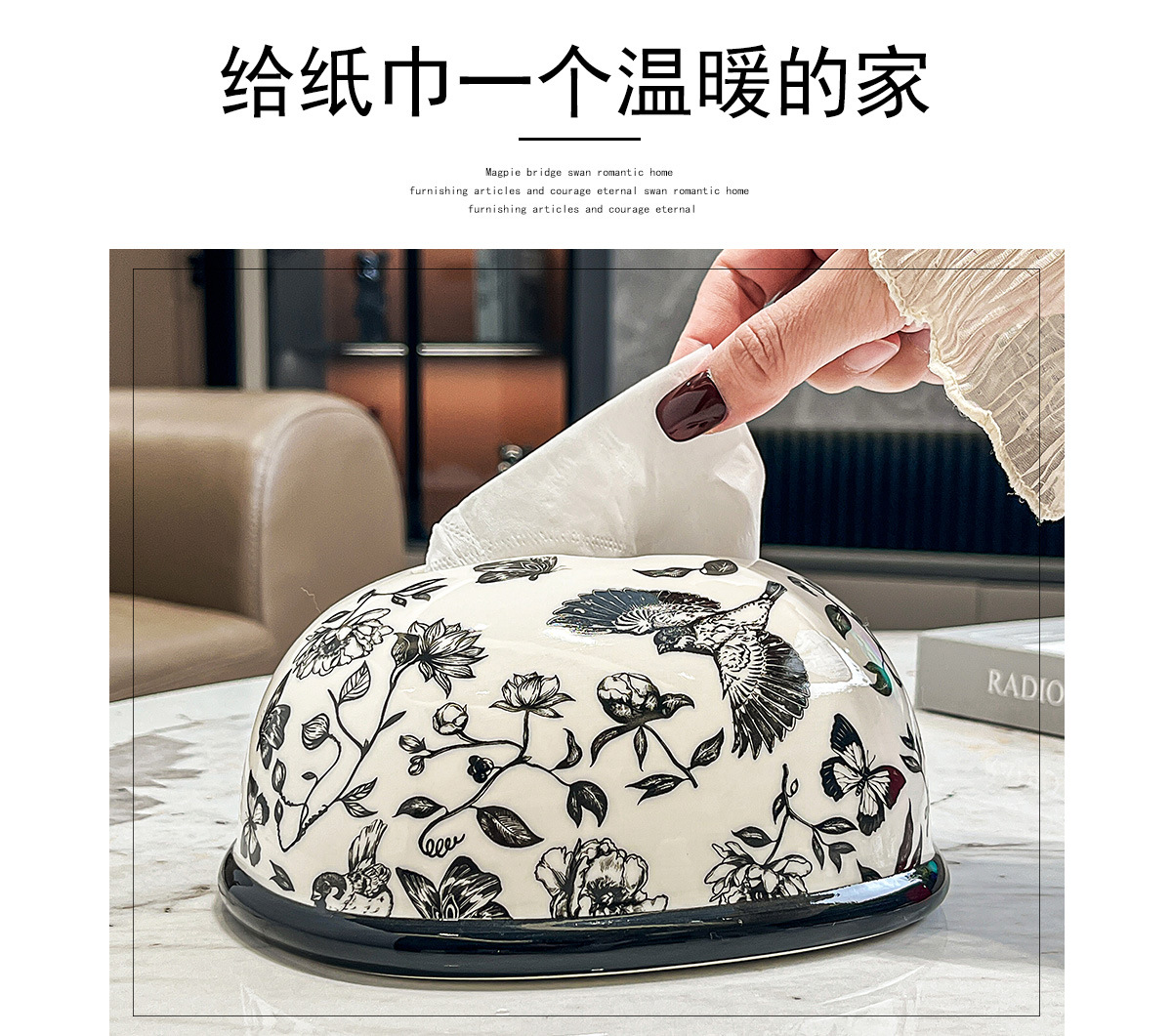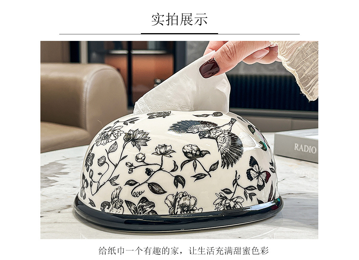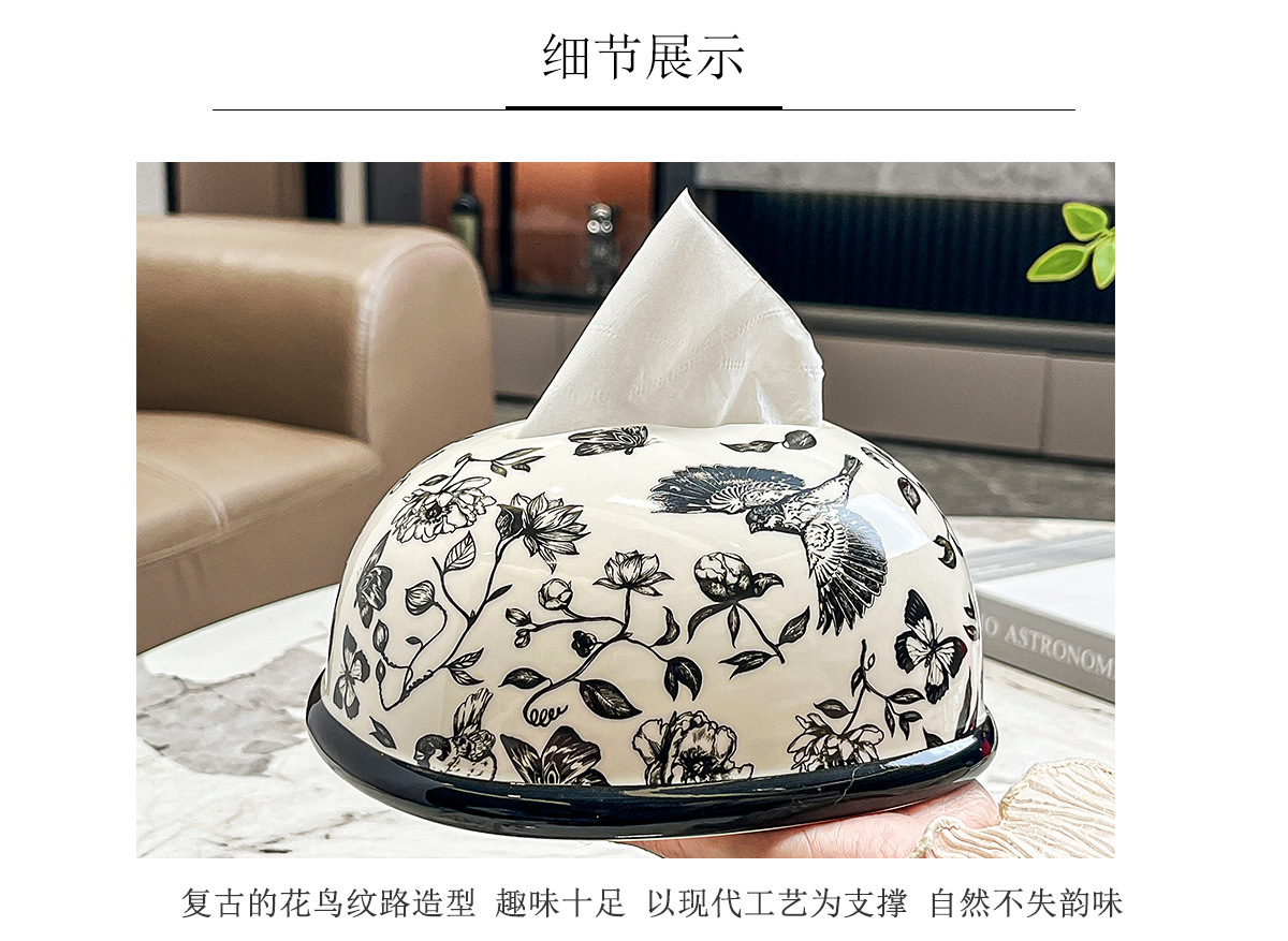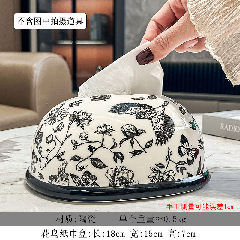 法式花鸟纸巾盒小众家用客厅茶几陶瓷抽纸盒弹簧纸抽盒餐巾盒批发