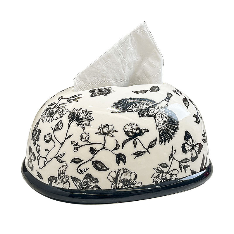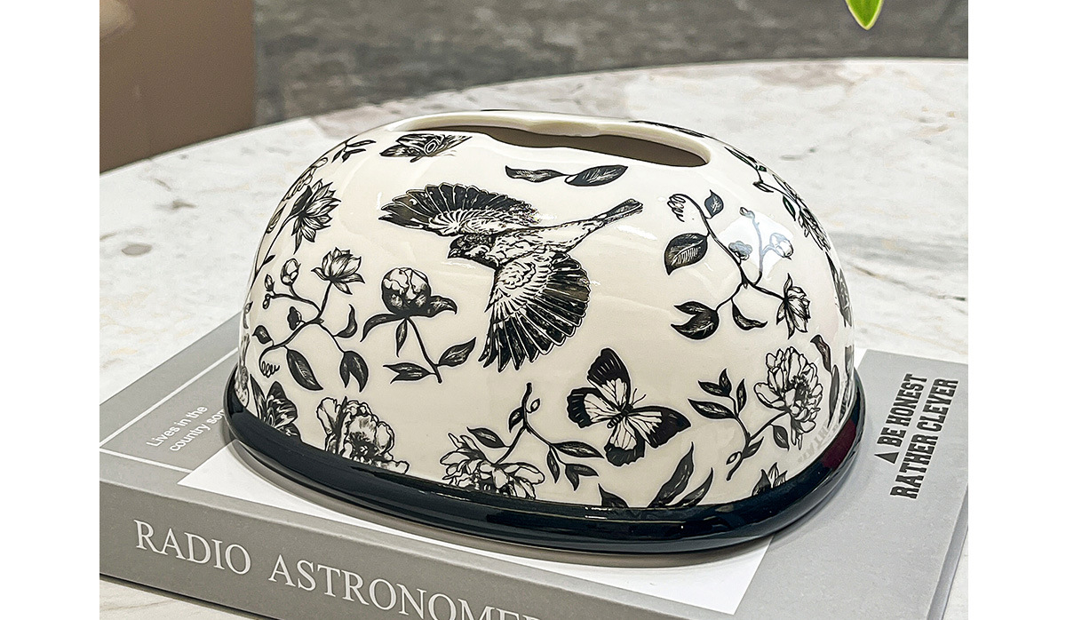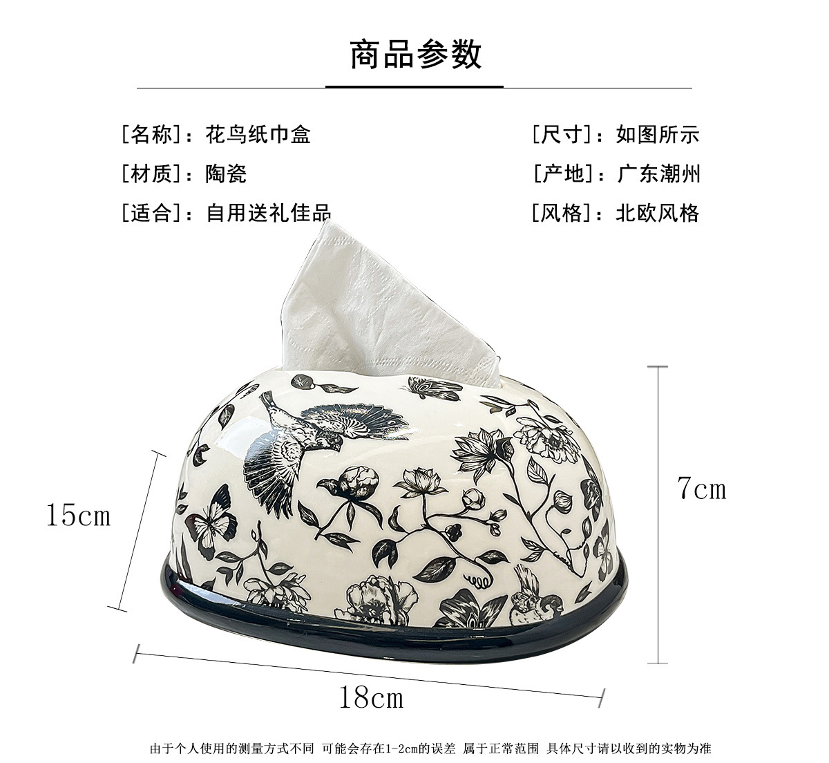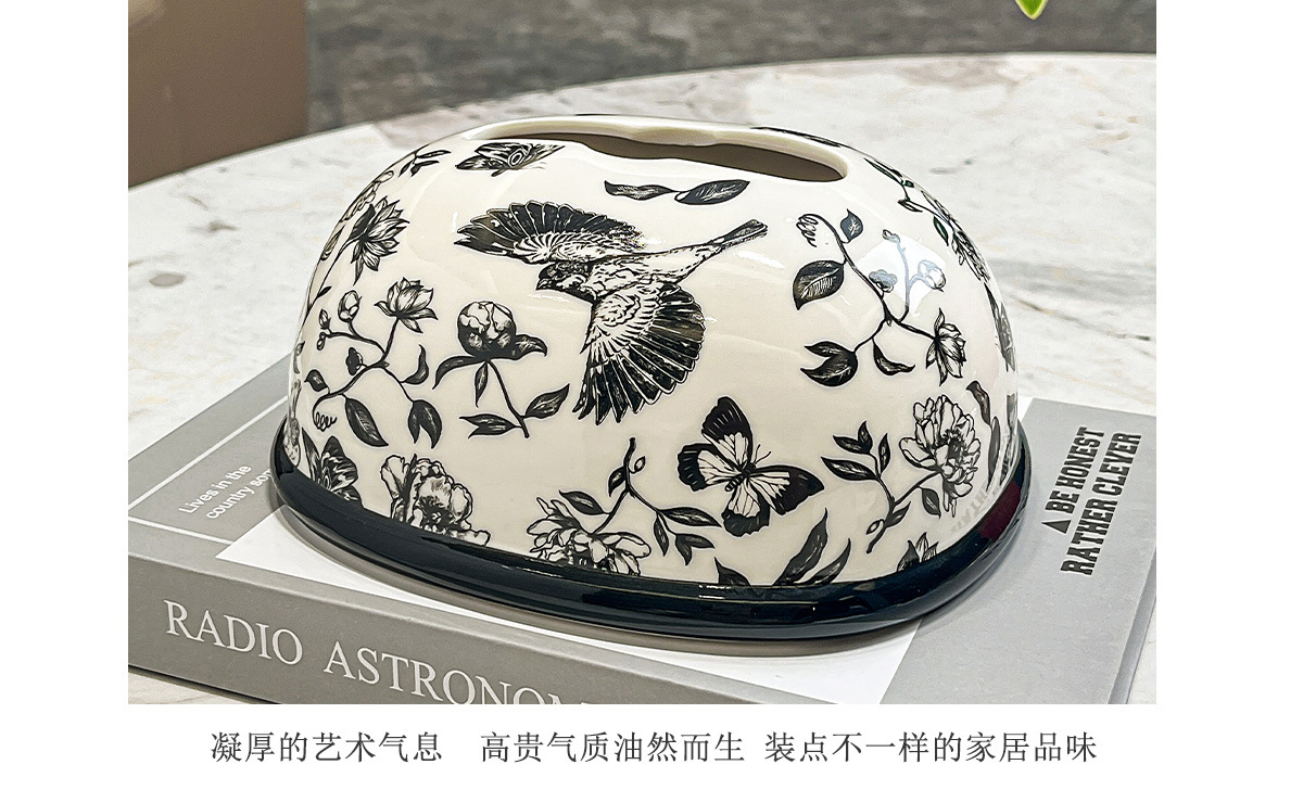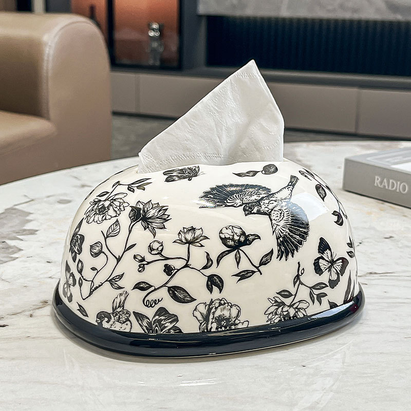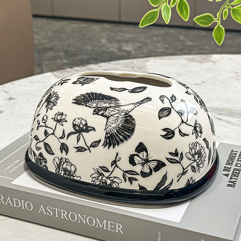 法式花鸟纸巾盒小众家用客厅茶几陶瓷抽纸盒弹簧纸抽盒餐巾盒批发