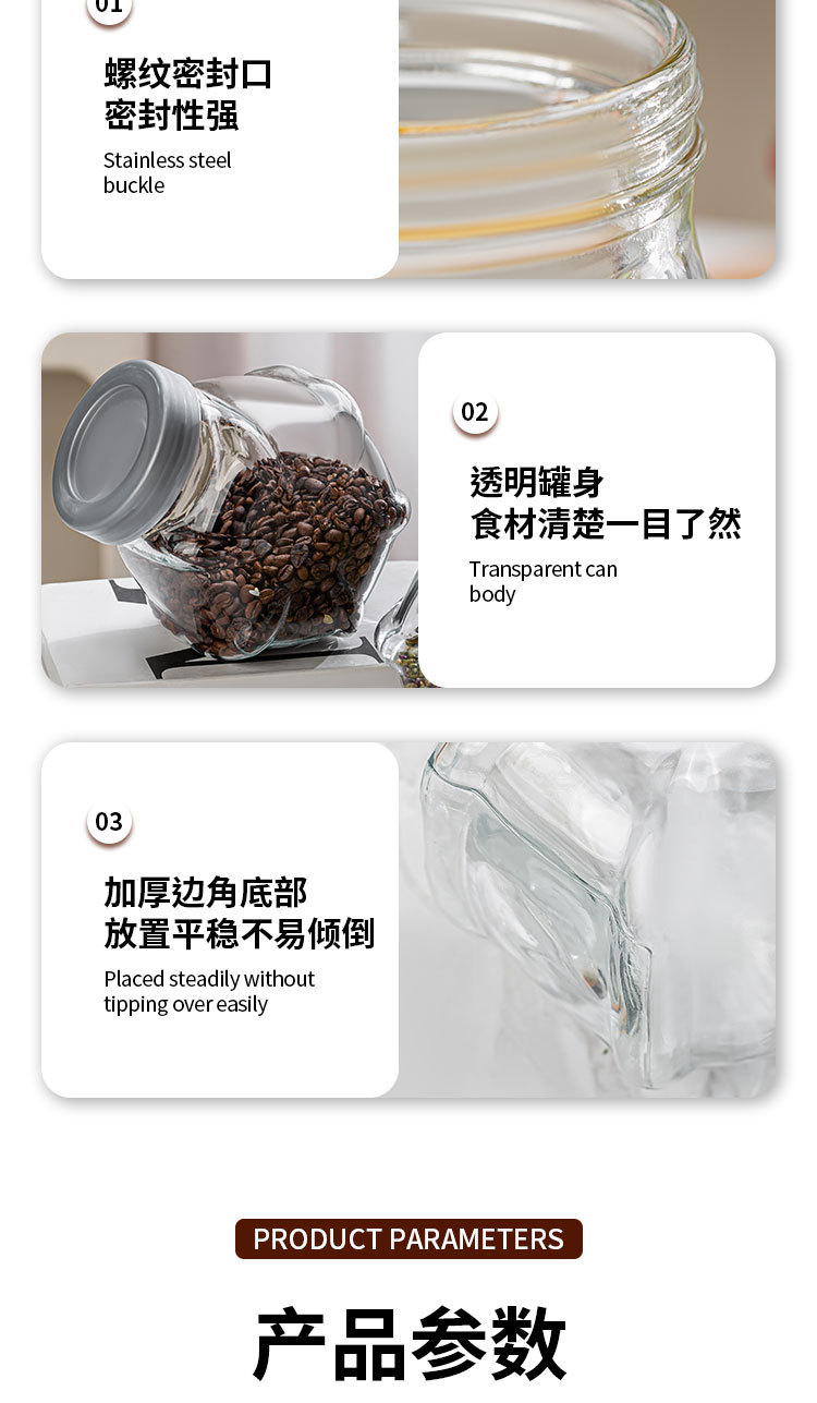 加厚透明玻璃密封储物罐食品级储物罐杂粮坚果干果零食储藏