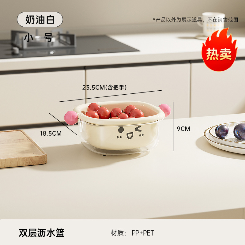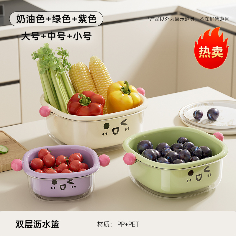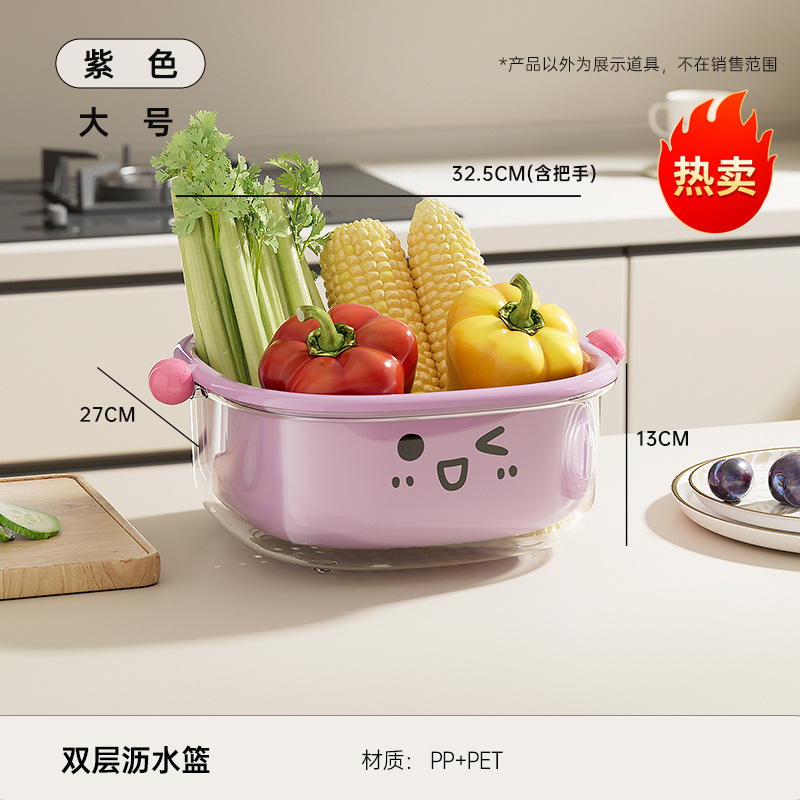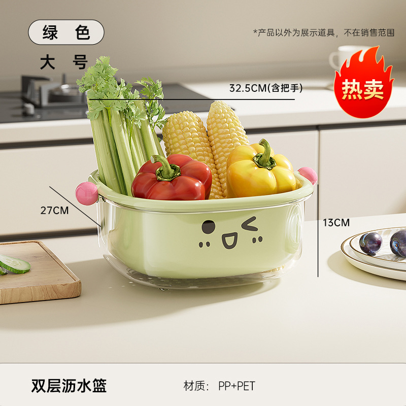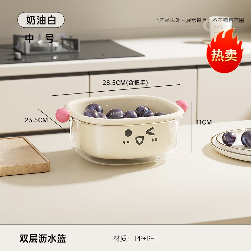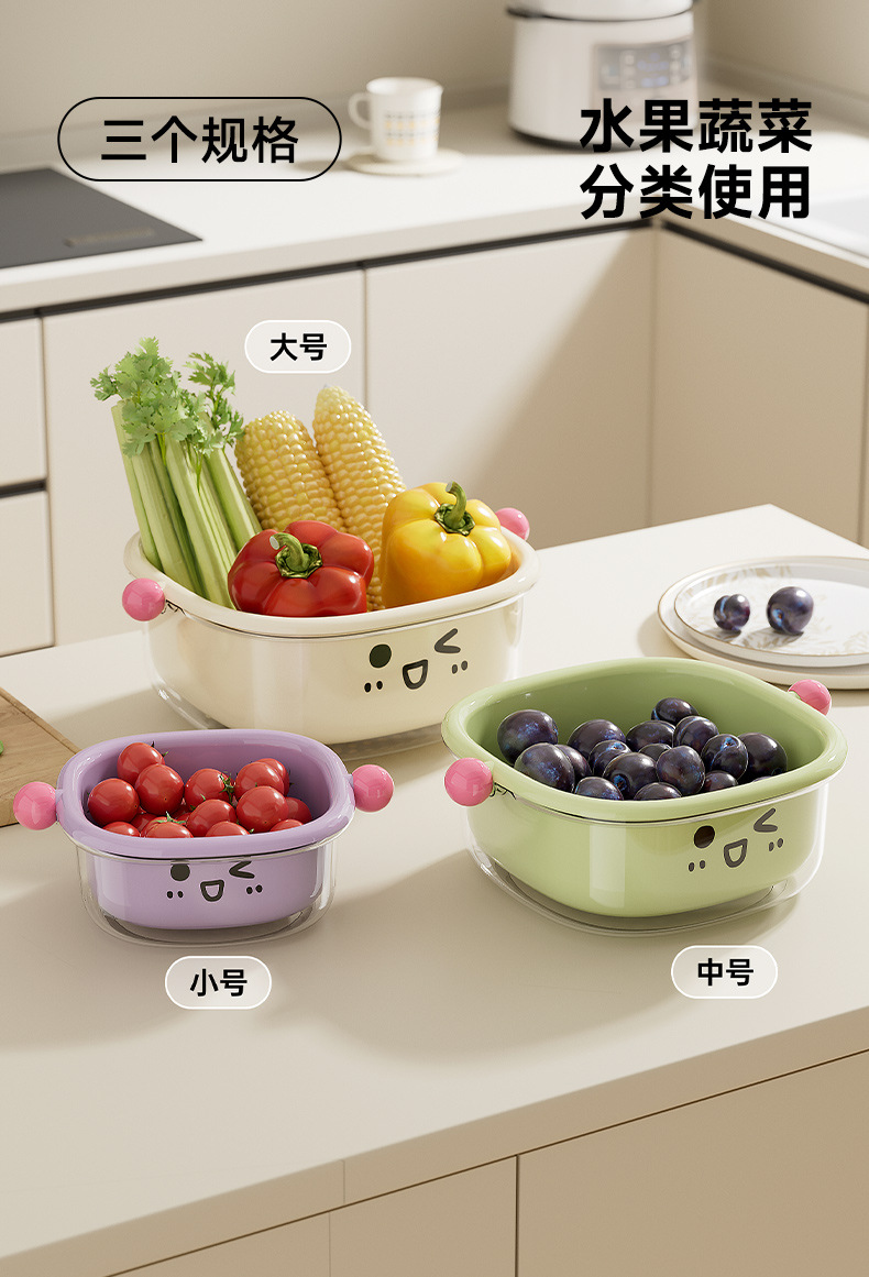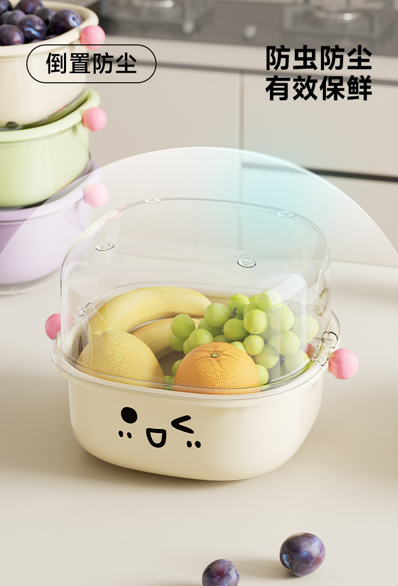 厨房沥水篮家用客厅大容量带盖防尘水果篮多功能双层可滤水洗菜篮