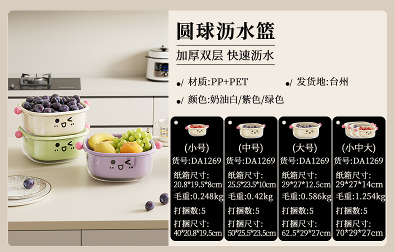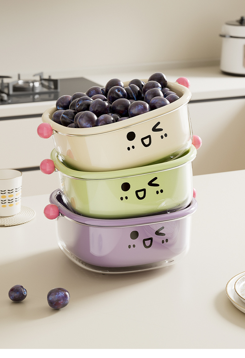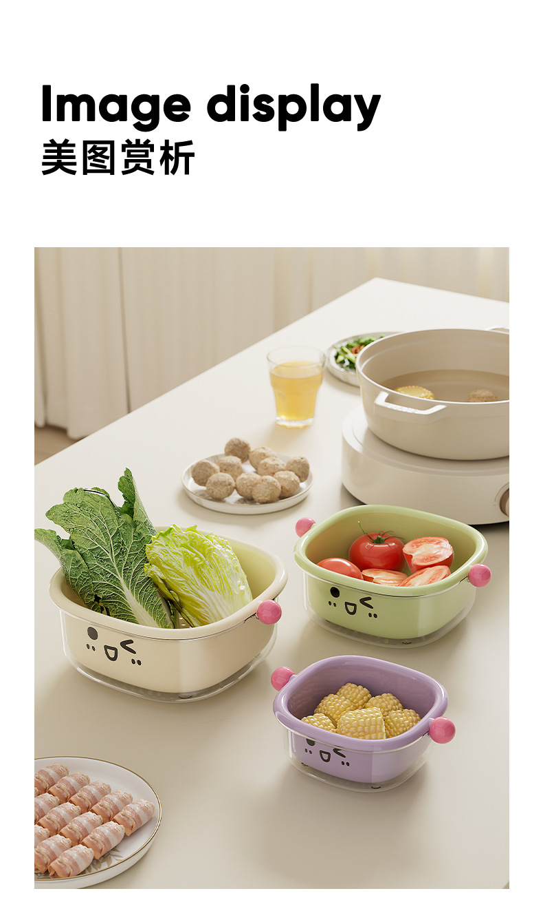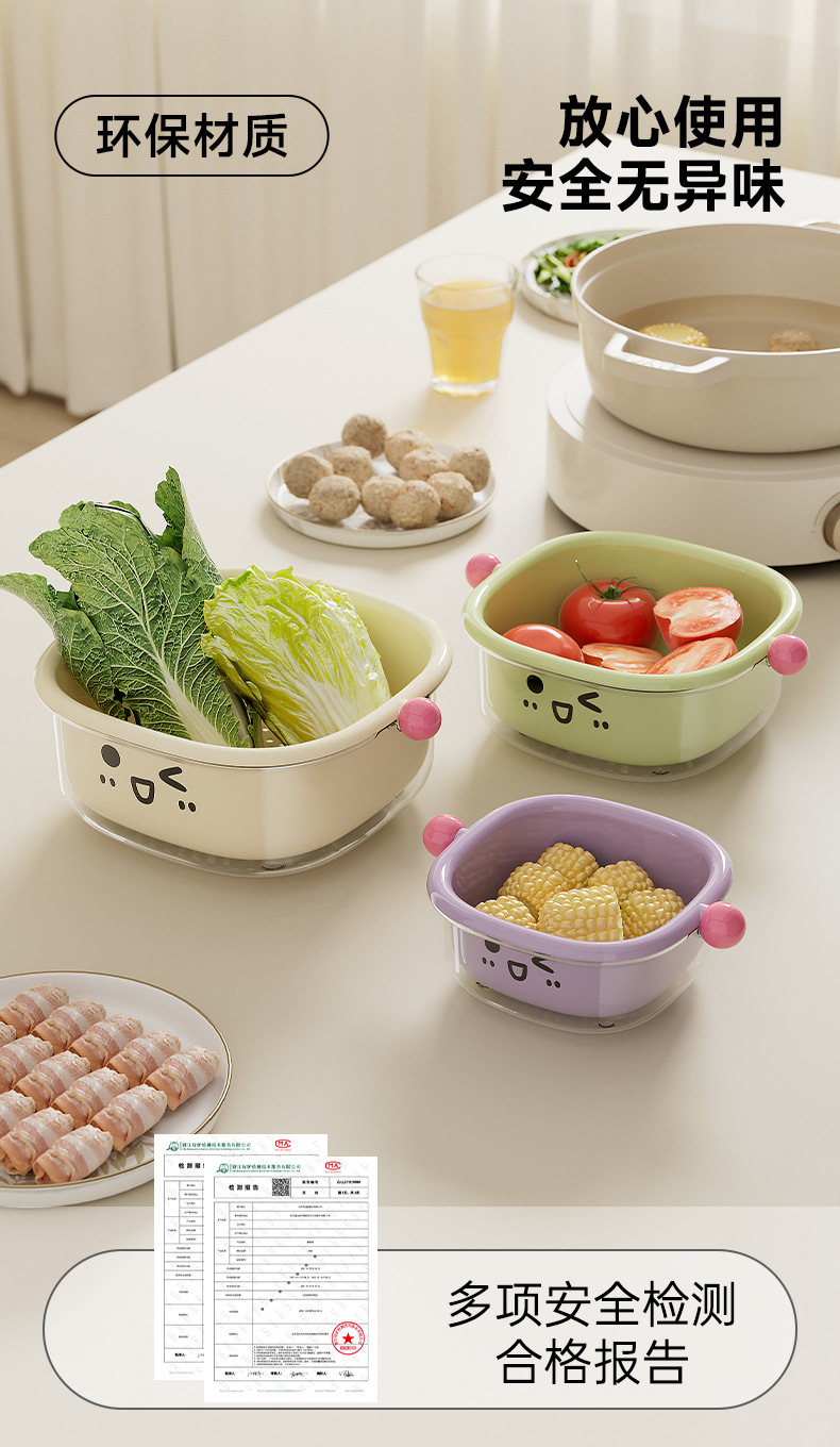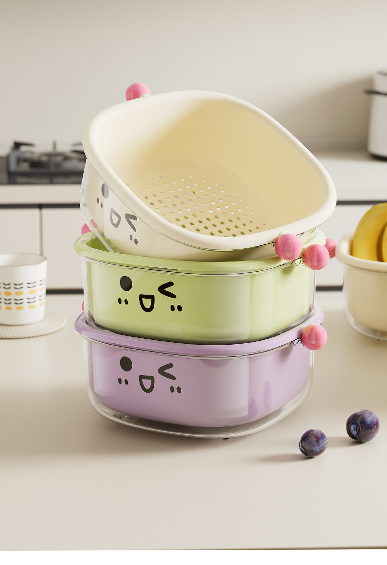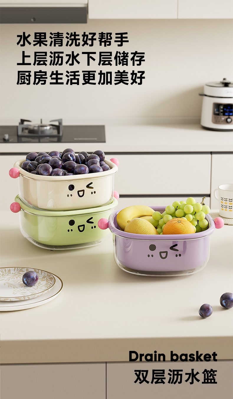 厨房沥水篮家用客厅大容量带盖防尘水果篮多功能双层可滤水洗菜篮