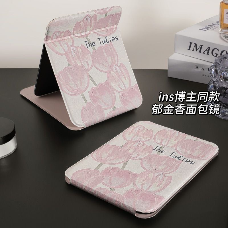 郁金香化妆镜折叠旅游小镜子随身携带学生宿舍办公室桌面镜梳妆镜